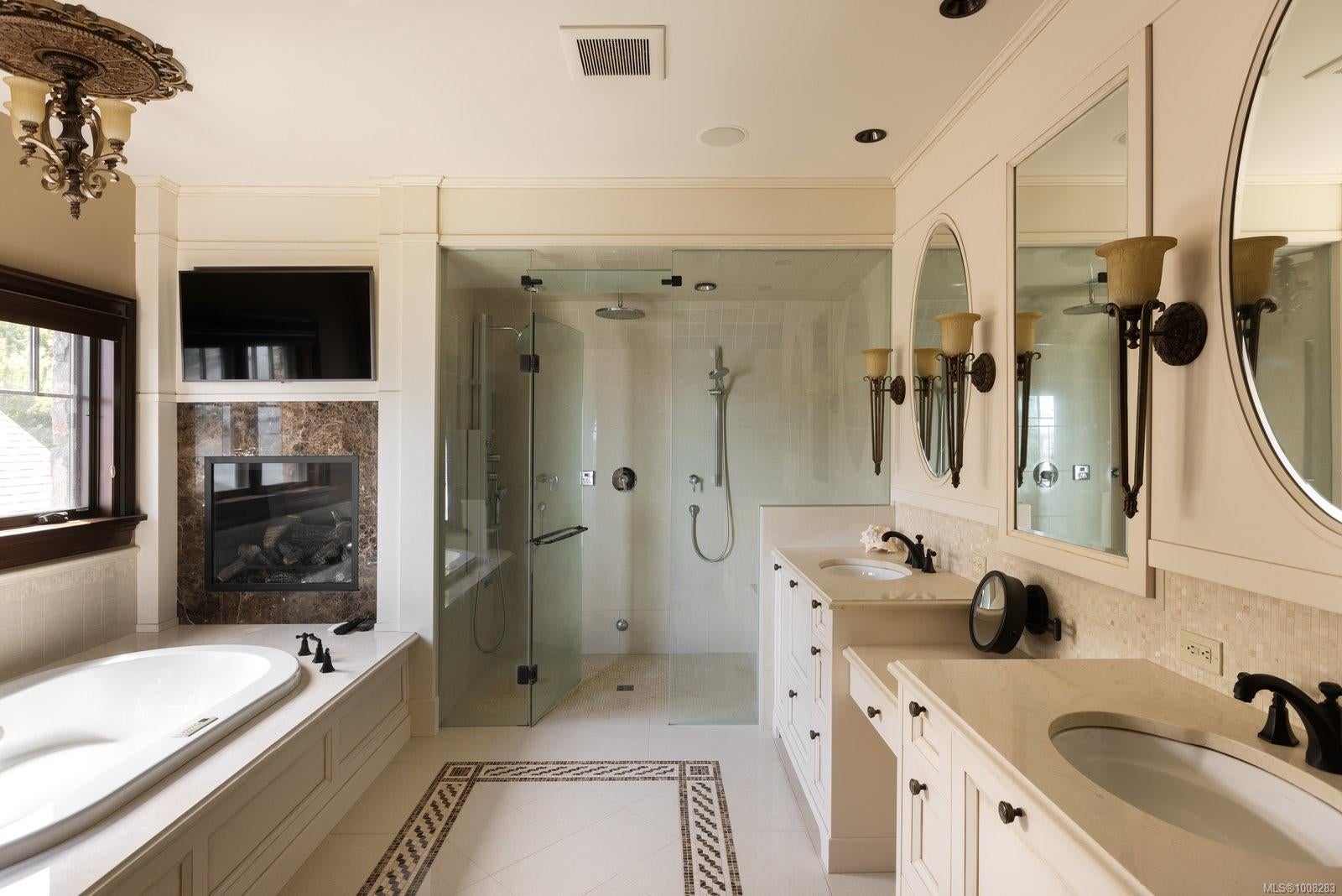 We proudly present this sophisticated West Coast waterfront retreat, showcasing breathtaking southerly panoramic ocean views of the Gulf Islands and Mount Baker. With its soaring ceilings and expansive windows, this solid stone residence creates a sensation of floating on water, offering an unparalleled living experience. Prepare to be mesmerized by the meticulous attention to detail and this home's high-quality construction and finishes, including walnut flooring imported from France, seven indoor fireplaces and custom millwork throughout. With a ground-level entry, guest quarters on the main floor and an elevator to the second level, the home offers enhanced accessibility. The main level boasts an exquisite circular kitchen with high-end appliances and a butler's pantry. The formal dining room is perfect for hosting elegant dinners, while the great room, featuring 21-foot ceilings, creates a grand yet inviting atmosphere. A charming study with built-in shelves and a coffered ceiling provides an ideal home office. Ascending the spiral staircase, you'll find a luxurious primary suite with a circular balcony offering ocean vistas, a serene reading nook, and a relaxing sauna, providing a private sanctuary for rest and rejuvenation. Enjoy your private enclosed sunroom, conveniently accessible from the primary bedroom's walk-in closet. The deluxe media room is ideal for movie nights, while the family room, with its convenient kitchenette and games room, offers additional space for activities. The exterior features are equally impressive, with expansive terraces perfect for outdoor dining, lounging and taking in the views. The low-maintenance, manicured grounds make upkeep easy, while a private hot tub patio offers a serene, relaxing space. Enjoy direct access to a sandy beach with a low-bank waterfront. Fully fenced and gated, this prime location is just minutes from all amenities, with convenient access to the Airport, BC Ferries and world-class marinas.
