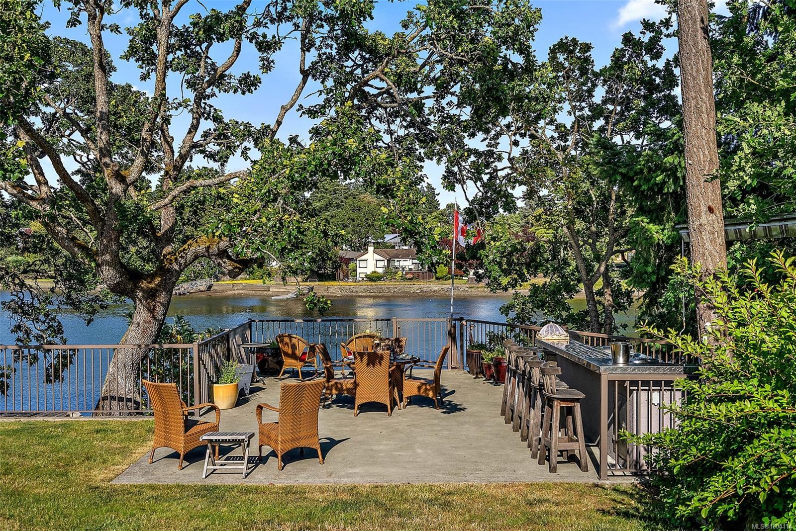 Welcome to 2751 Shoreline Drive, a RARE OPPORTUNITY to own a private, custom built waterfront retreat just minutes from downtown Victoria. Perfectly positioned on a large professionally landscaped lot backing onto the Portage Inlet, this thoughtfully designed 3 bedroom, 4 bathroom home offers a seamless blend of MODERN WEST COAST LUXURY & LIFESTYLE. The spacious interior features a flexible floorplan w/ potential for a 2 bedroom suite, ideal for multi-generational living or mortgage helper. Crafted with an engineers creativity & precision, the home boasts standout features such as a radiant heated kitchen island, primary bedroom wall & wood floors throughout the home, clever storage ideas & 8 unique fireplaces! 3+ car garage is ideal for any hobbyists or car enthusiasts! Enjoy year round outdoor living w/ a spacious covered patio w/skylight, hot tub & fully equipped outdoor kitchen & bar. A special offering for those who appreciate PRIVACY, SMART DESIGN & EXCEPTIONAL WATERFRONT LIVING