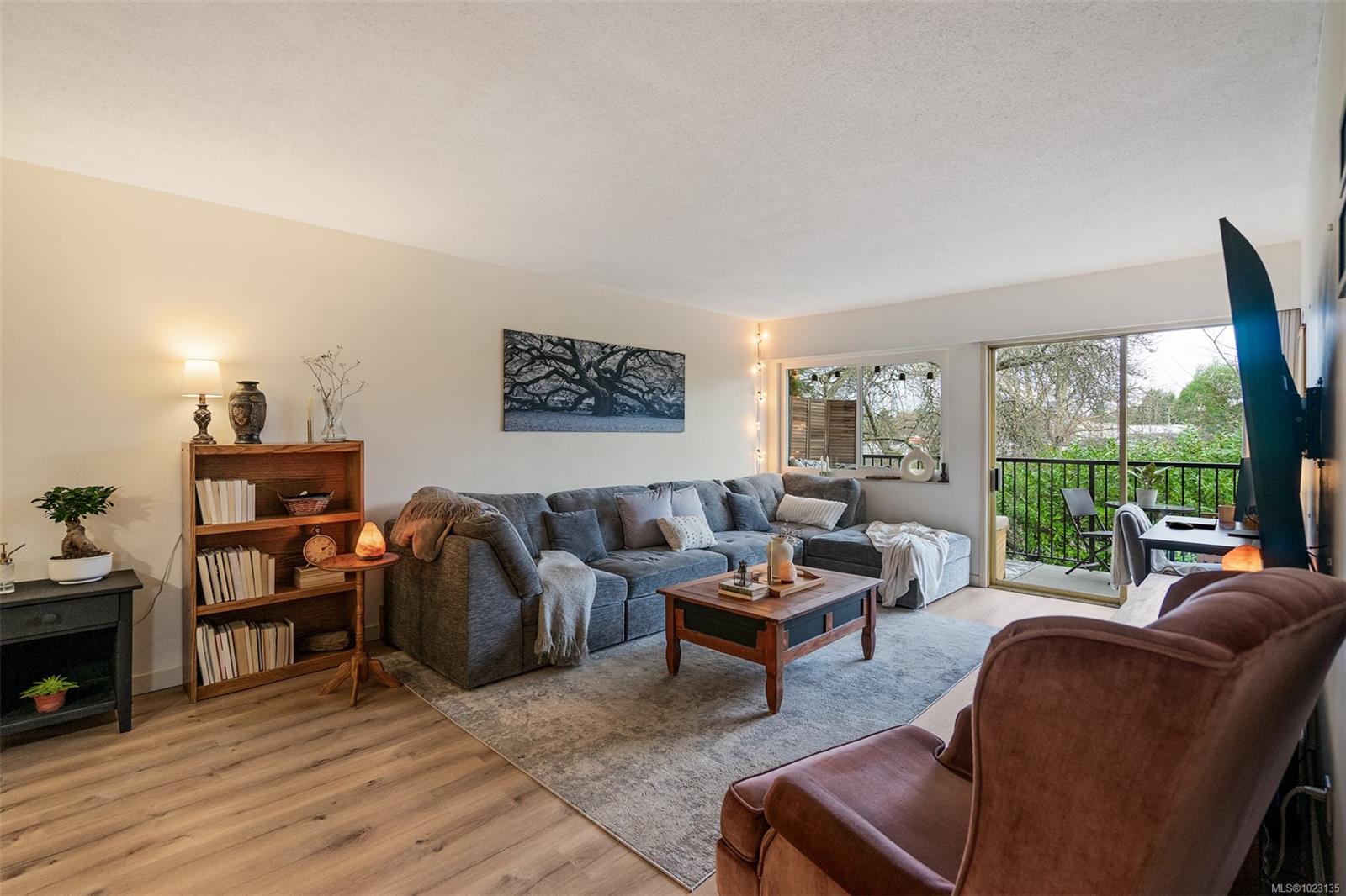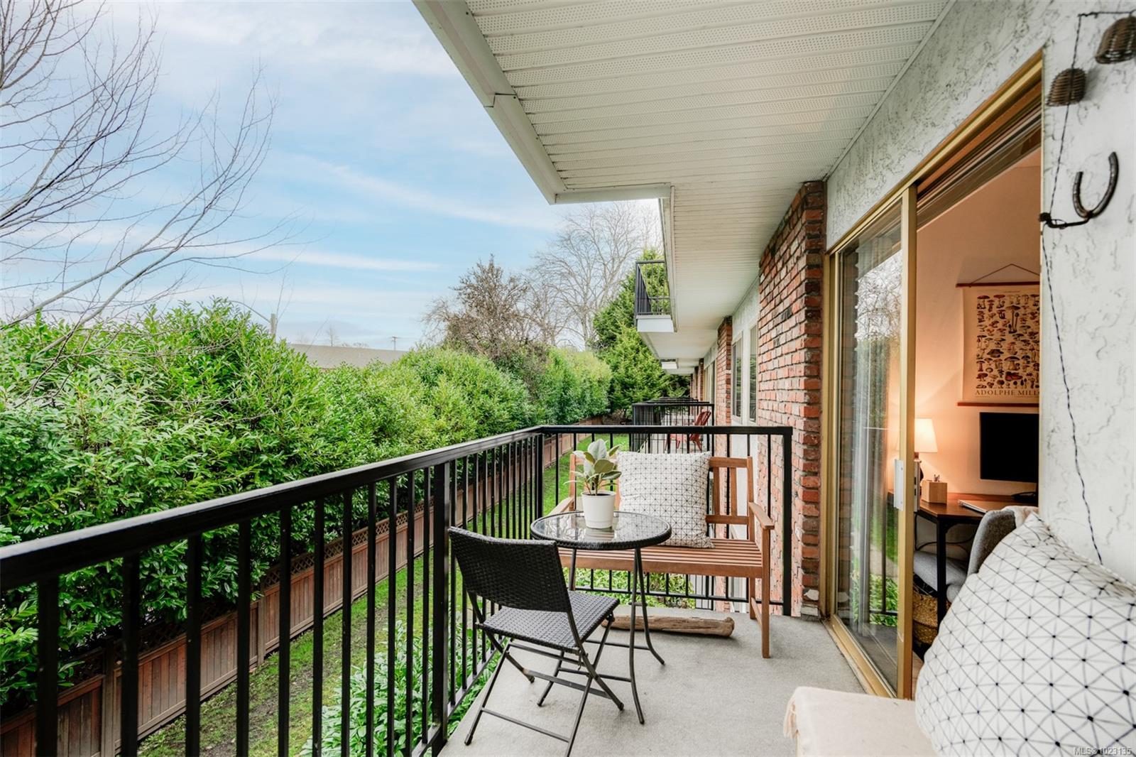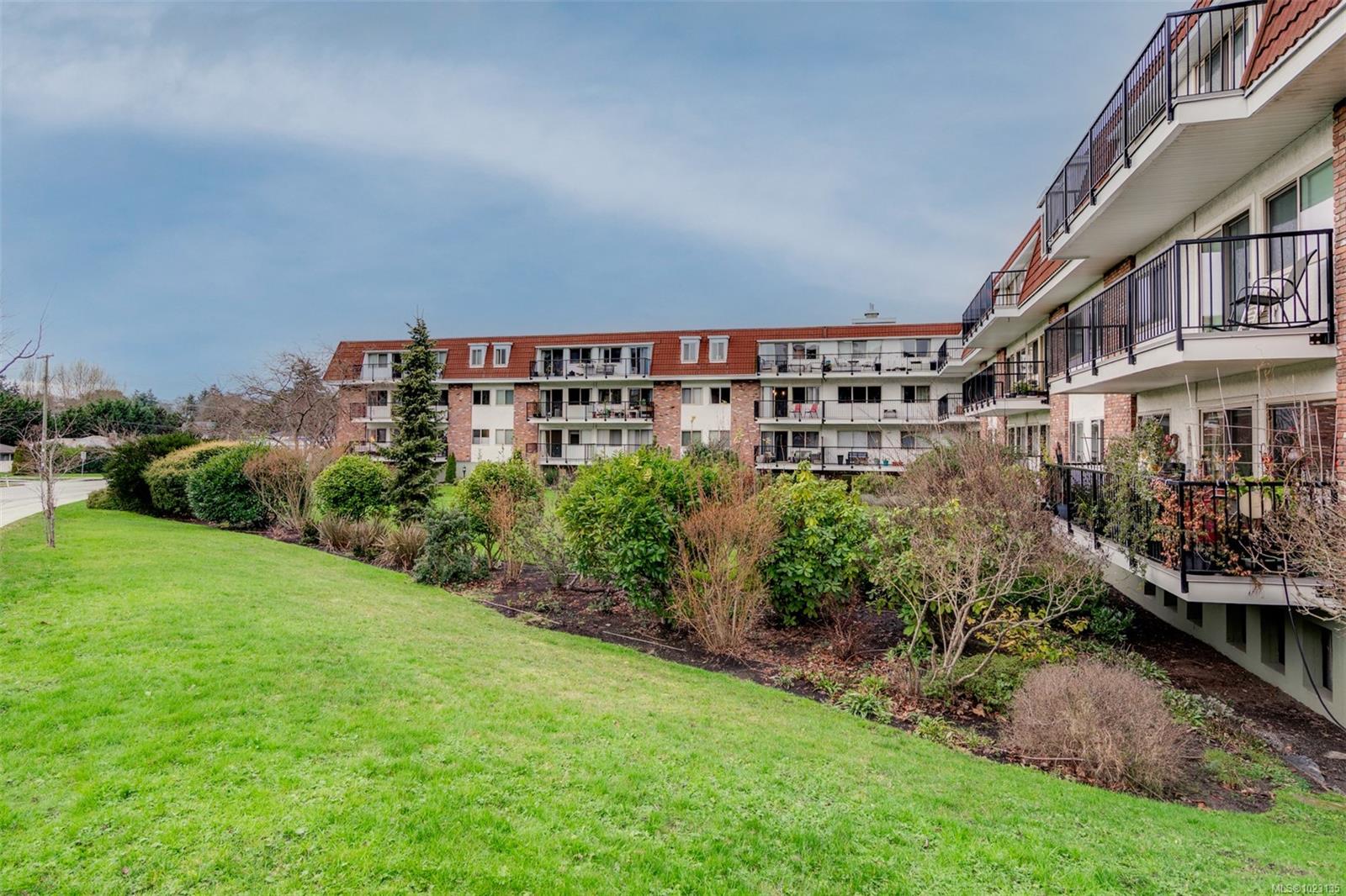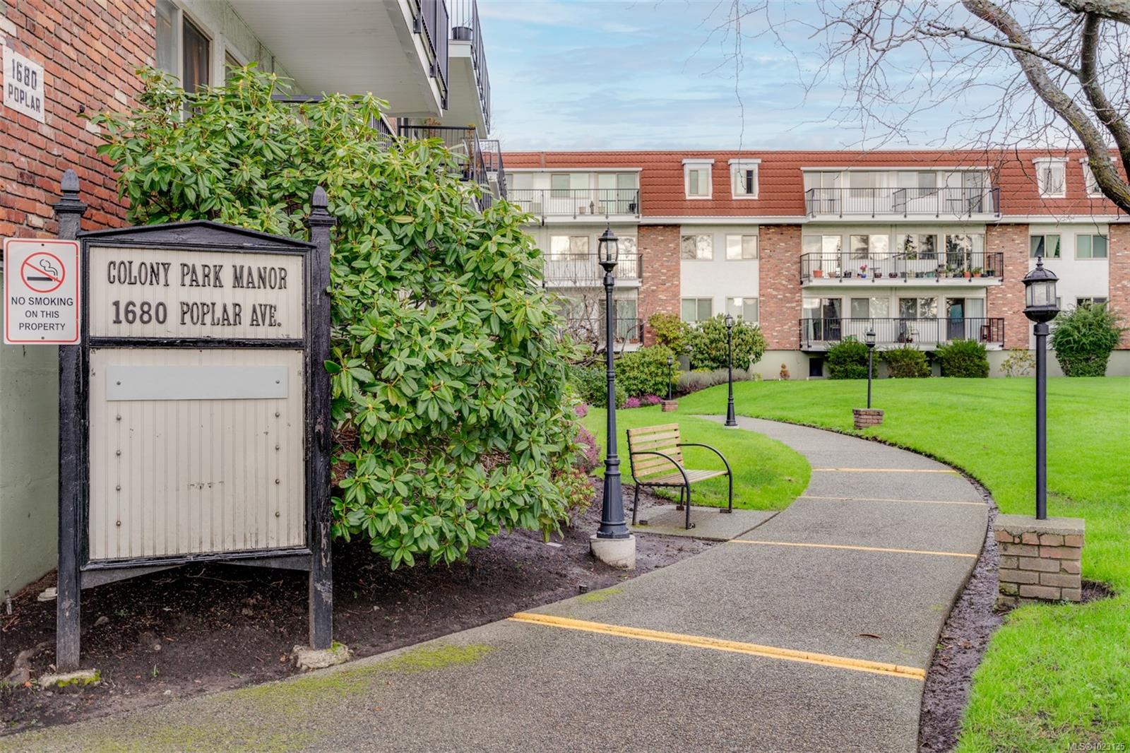 Renovated one bedroom condo at Colony Park Manor next to Mt Tolmie in Saanich! Large 740sqft floorplan features 21x13 living room for cozy movie nights plus 13x5 balcony with green outlook. Unit has been renovated with laminate floors, updated kitchen with new cabinets, countertops, appliances and backsplash, vinyl windows, bathroom with tile floors and new vanity! Nothing to do but move in and enjoy. Large 5x4 in-unit storage room plus separate storage locker for all belongings, bike storage and parking stall included. Strata fee $436/m includes heat and hot water and property taxes for 2025 were $106m after homeowner grant for reasonable monthly expenses. Great location a short walk to UVic or Camosun, bus routes, shopping and all levels of amenities just out your door! Building is very well maintained with newer balconies, well run strata with solid depreciation report and numerous amenities featuring swimming pool, sauna, wheelchair accessibility, games room and workshop!