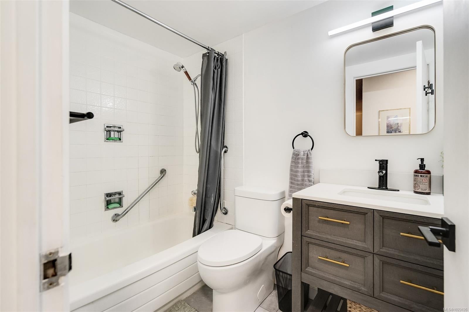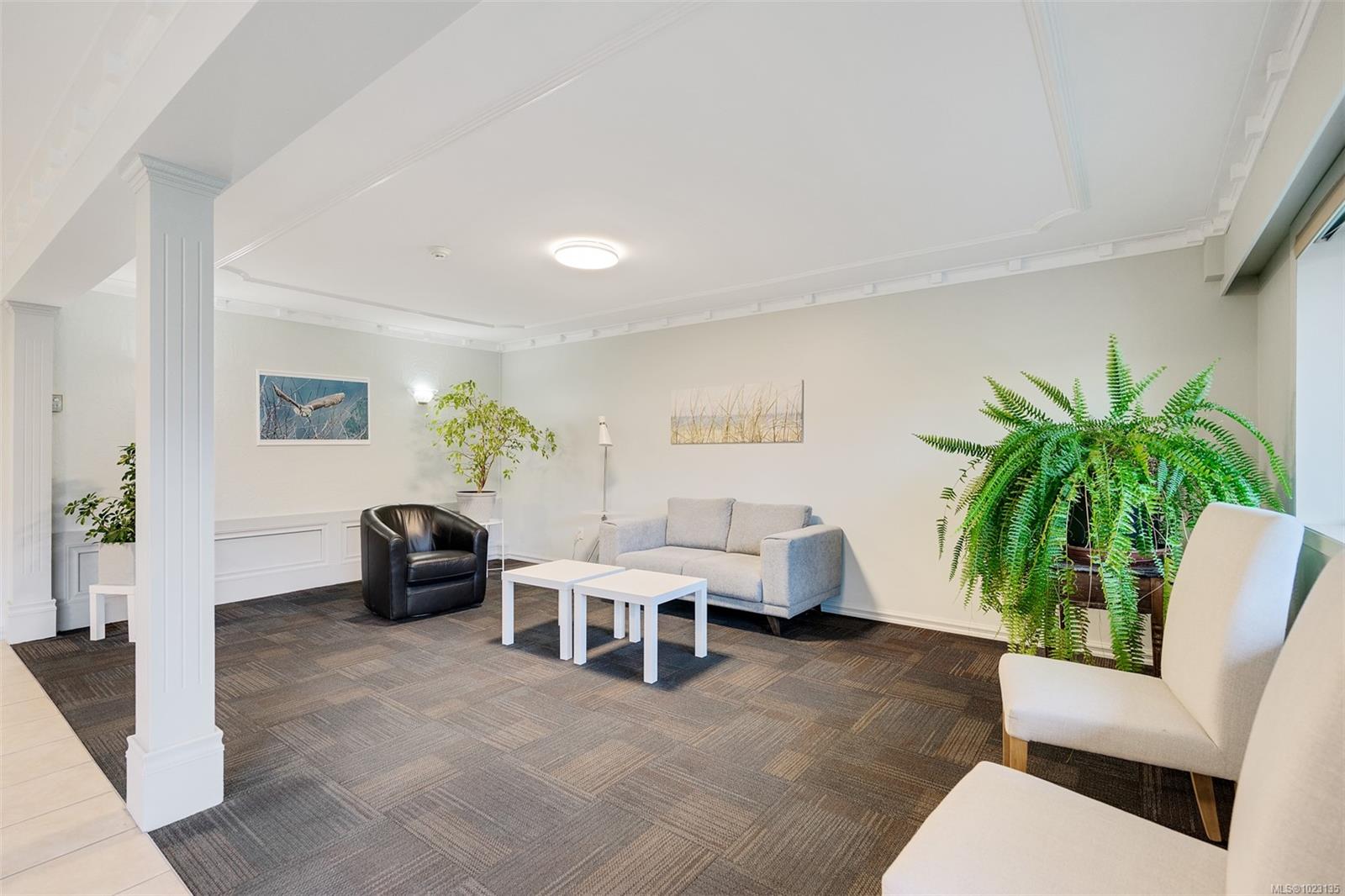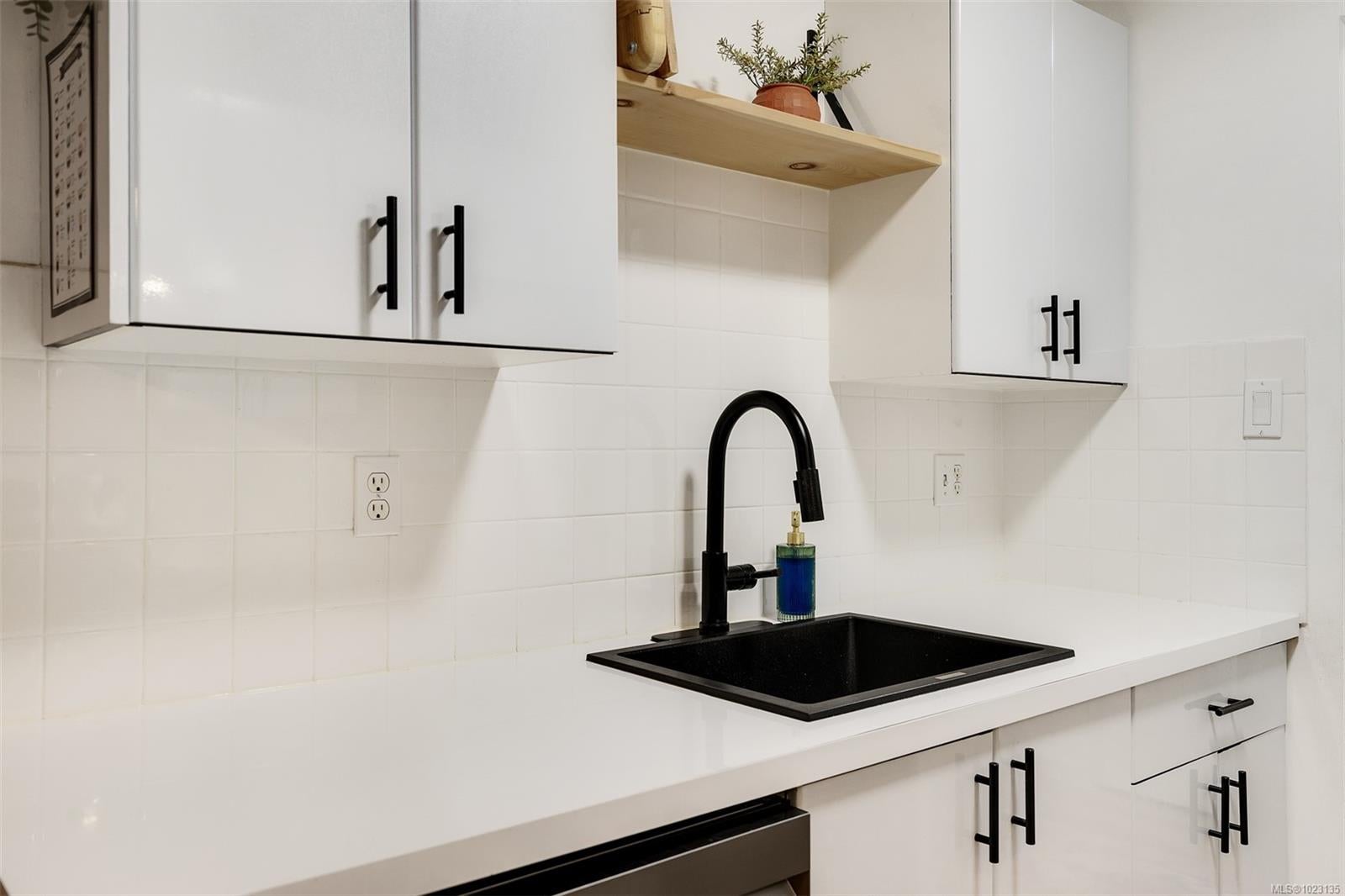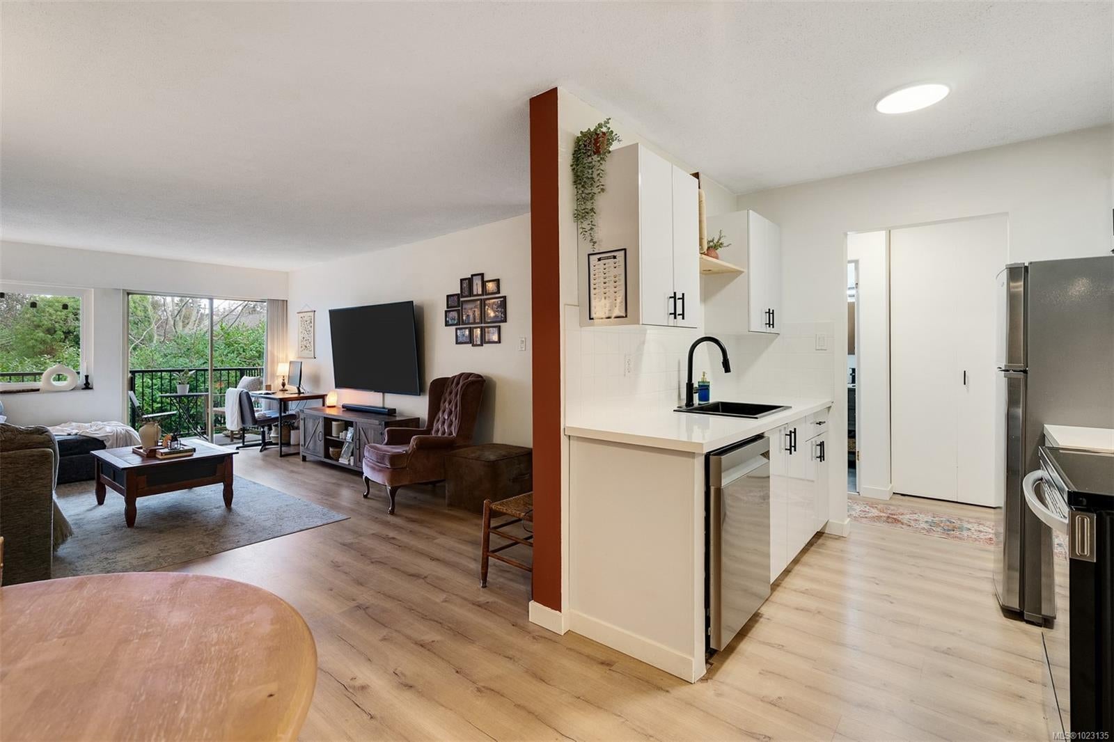 Renovated one bedroom condo at Colony Park Manor next to Mt Tolmie in Saanich! Large 740sqft floorplan features 21x13 living room for cozy movie nights plus 13x5 balcony with green outlook. Unit has been renovated with laminate floors, updated kitchen with new cabinets, countertops, appliances and backsplash, vinyl windows, bathroom with tile floors and new vanity! Nothing to do but move in and enjoy. Large 5x4 in-unit storage room plus separate storage locker for all belongings, bike storage and parking stall included. Strata fee $436/m includes heat and hot water and property taxes for 2025 were $106m after homeowner grant for reasonable monthly expenses. Great location a short walk to UVic or Camosun, bus routes, shopping and all levels of amenities just out your door! Building is very well maintained with newer balconies, well run strata with solid depreciation report and numerous amenities featuring swimming pool, sauna, wheelchair accessibility, games room and workshop!
