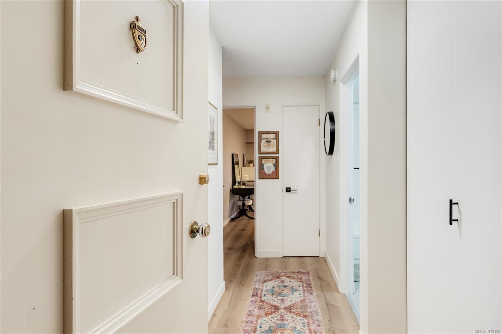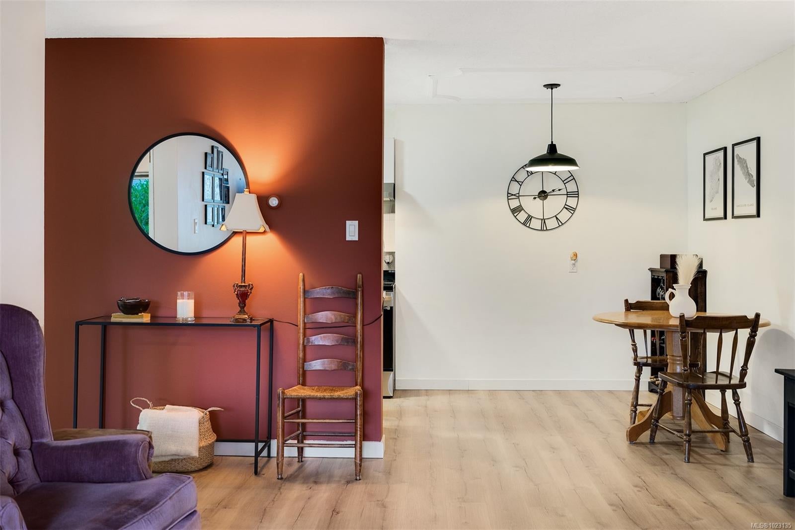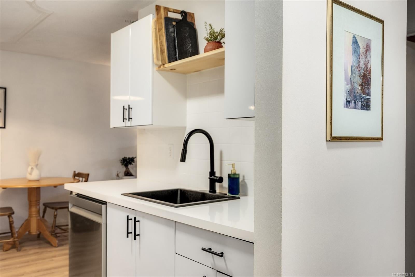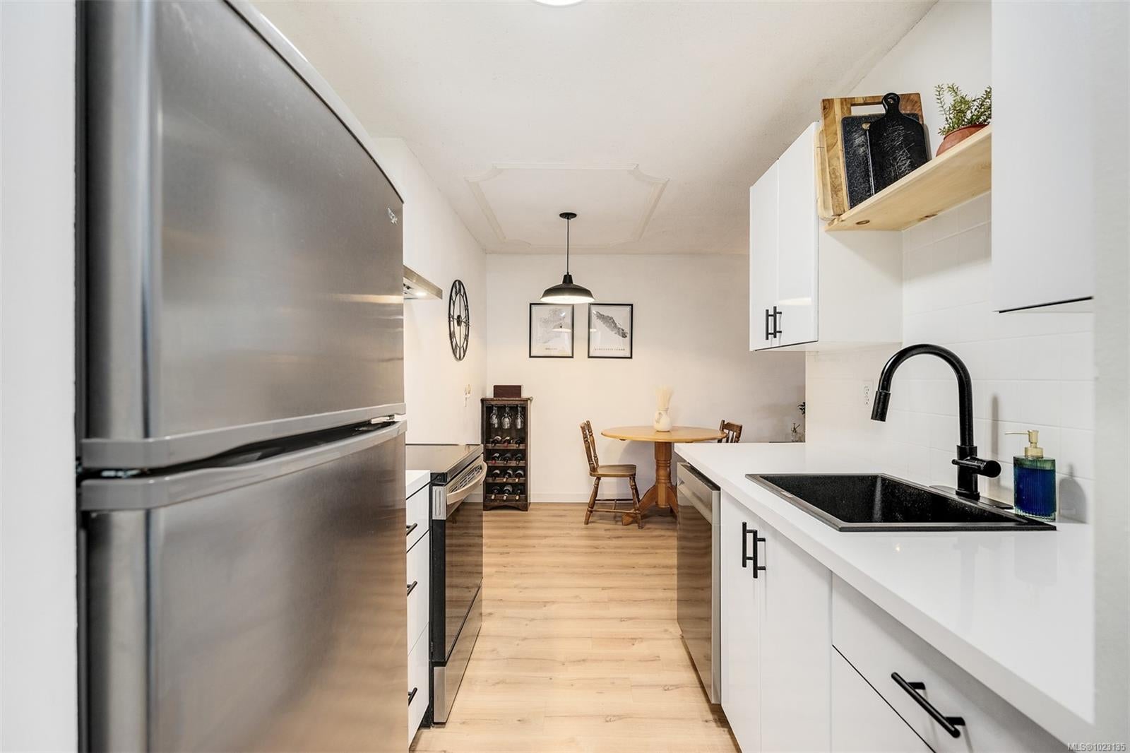 Renovated one bedroom condo at Colony Park Manor next to Mt Tolmie in Saanich! Large 740sqft floorplan features 21x13 living room for cozy movie nights plus 13x5 balcony with green outlook. Unit has been renovated with laminate floors, updated kitchen with new cabinets, countertops, appliances and backsplash, vinyl windows, bathroom with tile floors and new vanity! Nothing to do but move in and enjoy. Large 5x4 in-unit storage room plus separate storage locker for all belongings, bike storage and parking stall included. Strata fee $436/m includes heat and hot water and property taxes for 2025 were $106m after homeowner grant for reasonable monthly expenses. Great location a short walk to UVic or Camosun, bus routes, shopping and all levels of amenities just out your door! Building is very well maintained with newer balconies, well run strata with solid depreciation report and numerous amenities featuring swimming pool, sauna, wheelchair accessibility, games room and workshop!