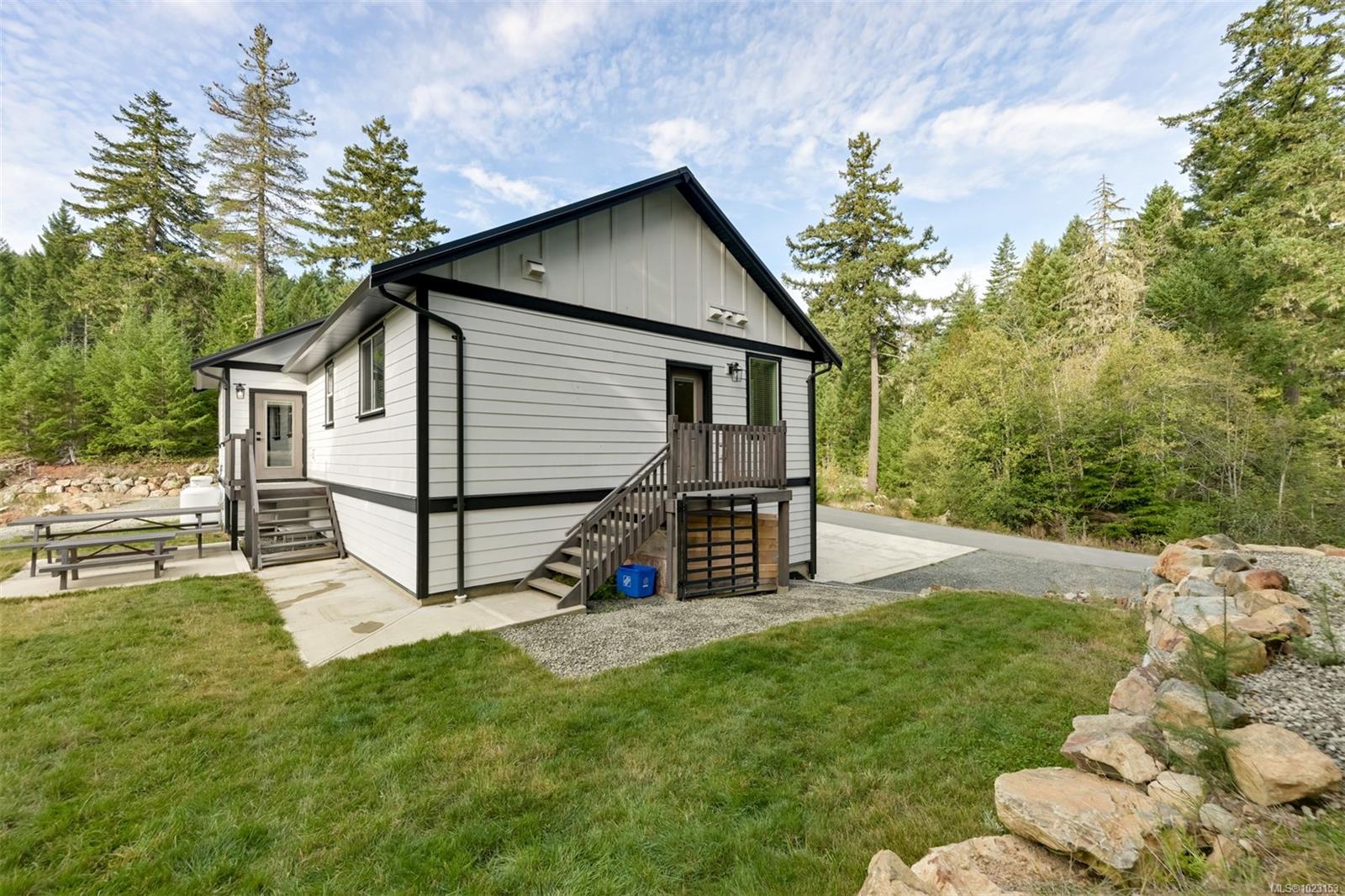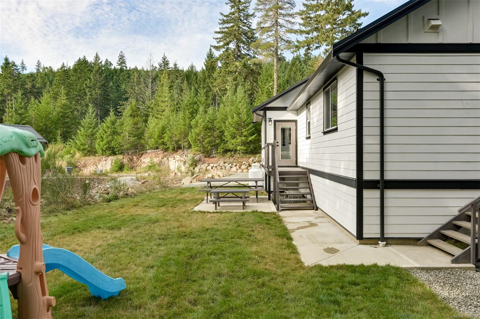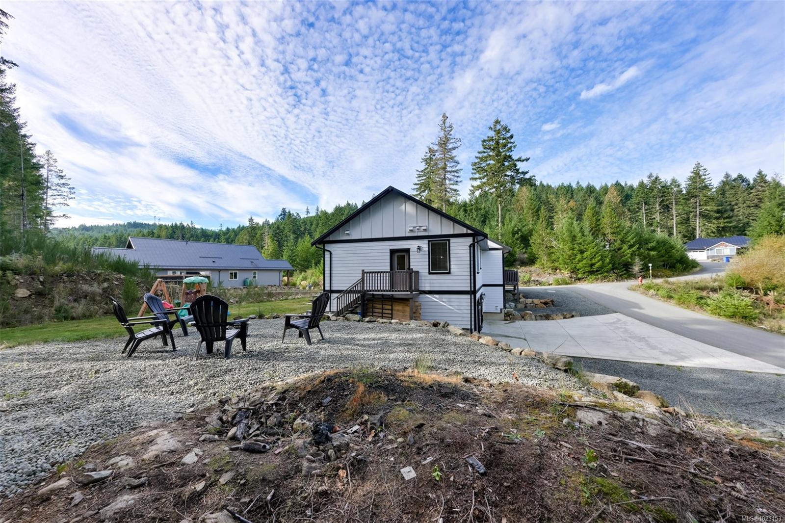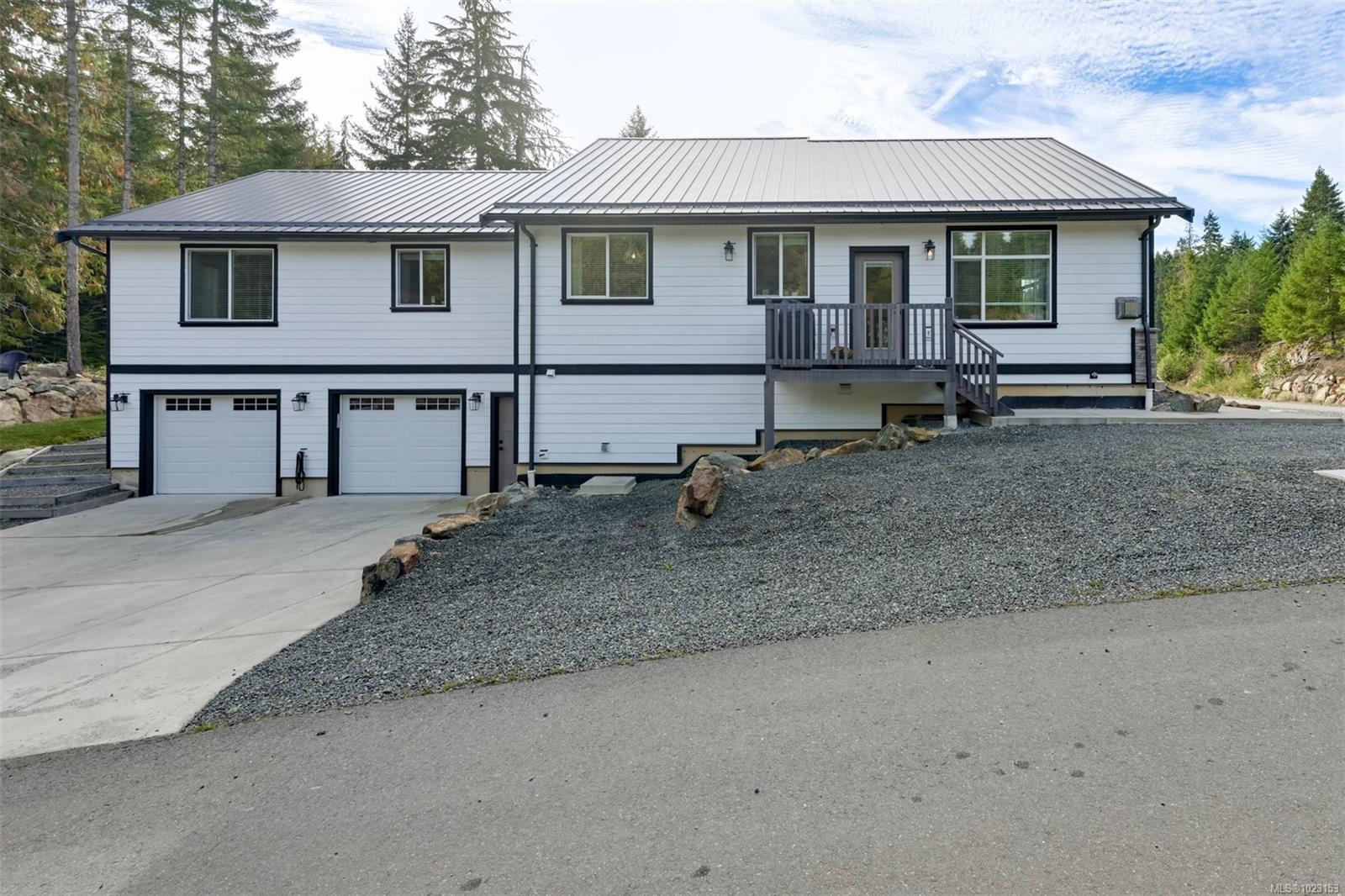 2022 built 2500+sqft four bedroom three bathroom home at Malahat Forest Estates! Three bed two bath main residence with bonus 500+sqft rec room and two garages on the lower level. Legal one bedroom suite with private entry and insuite laundry is an ideal mortgage helper. Well laid out floorplan with open concept main level featuring vaulted ceilings, heat pump for year round comfort, 16x12 primary bedroom with luxurious ensuite, gourmet kitchen with quartz countertops, shaker cabinets and stainless steel appliances. Modern finish throughout and easy maintenance. Durable construction with hardi-plank siding, metal roof, 200 amp electrical, fire suppression system and vinyl windows. There is parking for many vehicles, RVs, boats and all of your toys plus two garages or workshop space totaling 560sqft! Situated on a 11,625sqft lot in the wilderness with nature at your doorstep including trails, lakes and recreation in all directions. Easy access to Hwy 1 and a short commute into Langford.