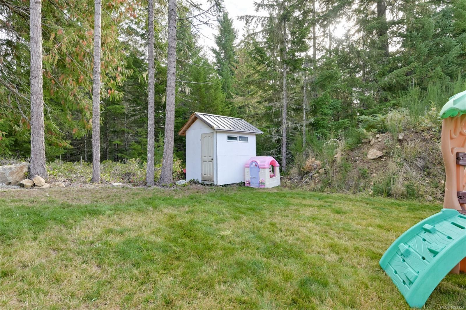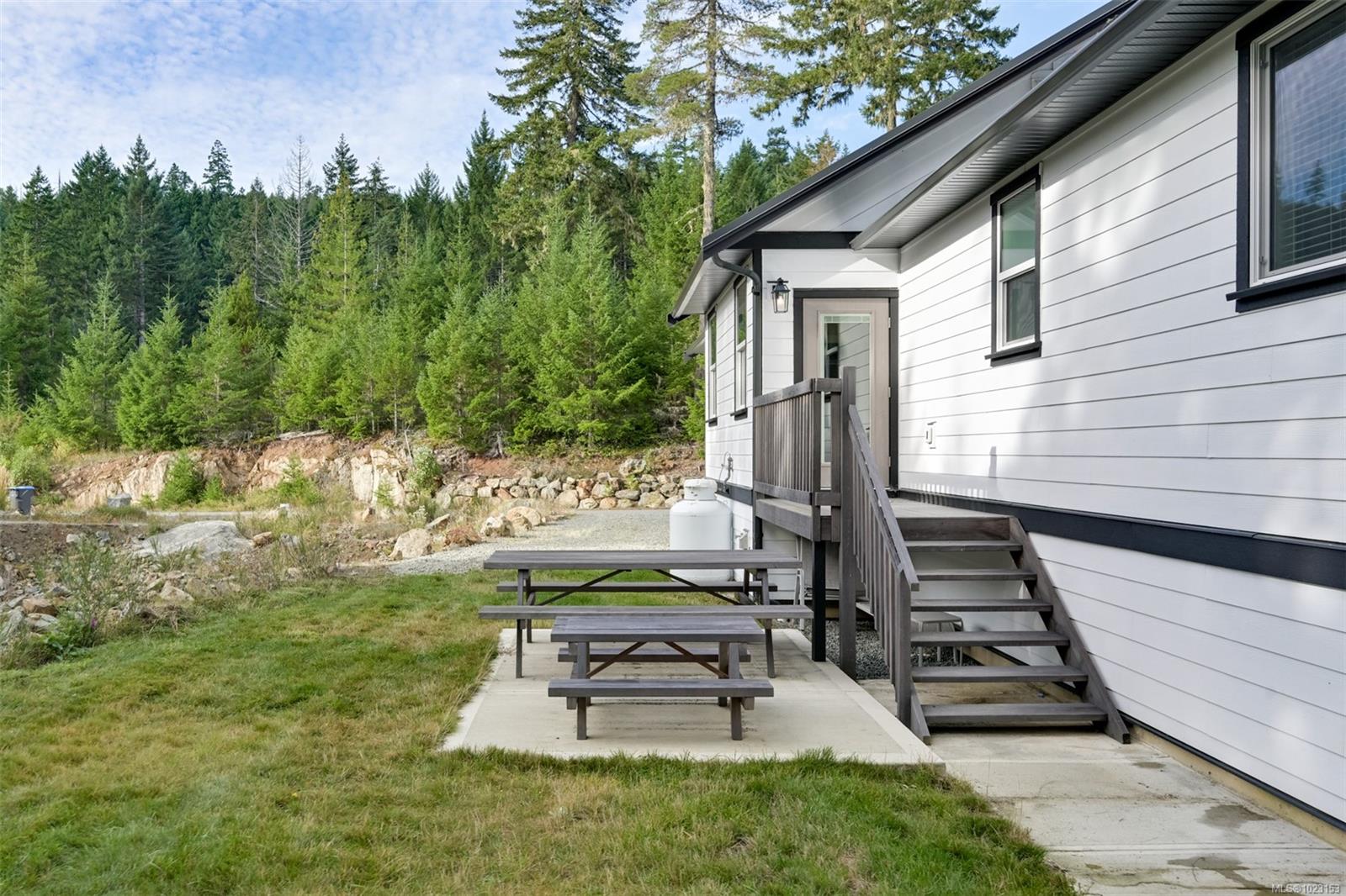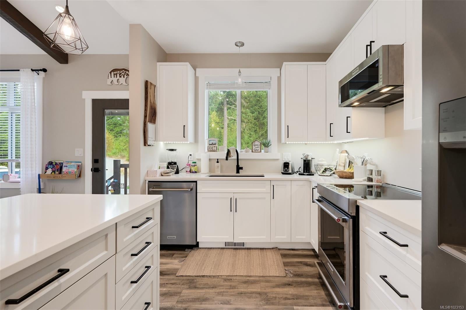 2022 built 2500+sqft four bedroom three bathroom home at Malahat Forest Estates! Three bed two bath main residence with bonus 500+sqft rec room and two garages on the lower level. Legal one bedroom suite with private entry and insuite laundry is an ideal mortgage helper. Well laid out floorplan with open concept main level featuring vaulted ceilings, heat pump for year round comfort, 16x12 primary bedroom with luxurious ensuite, gourmet kitchen with quartz countertops, shaker cabinets and stainless steel appliances. Modern finish throughout and easy maintenance. Durable construction with hardi-plank siding, metal roof, 200 amp electrical, fire suppression system and vinyl windows. There is parking for many vehicles, RVs, boats and all of your toys plus two garages or workshop space totaling 560sqft! Situated on a 11,625sqft lot in the wilderness with nature at your doorstep including trails, lakes and recreation in all directions. Easy access to Hwy 1 and a short commute into Langford.