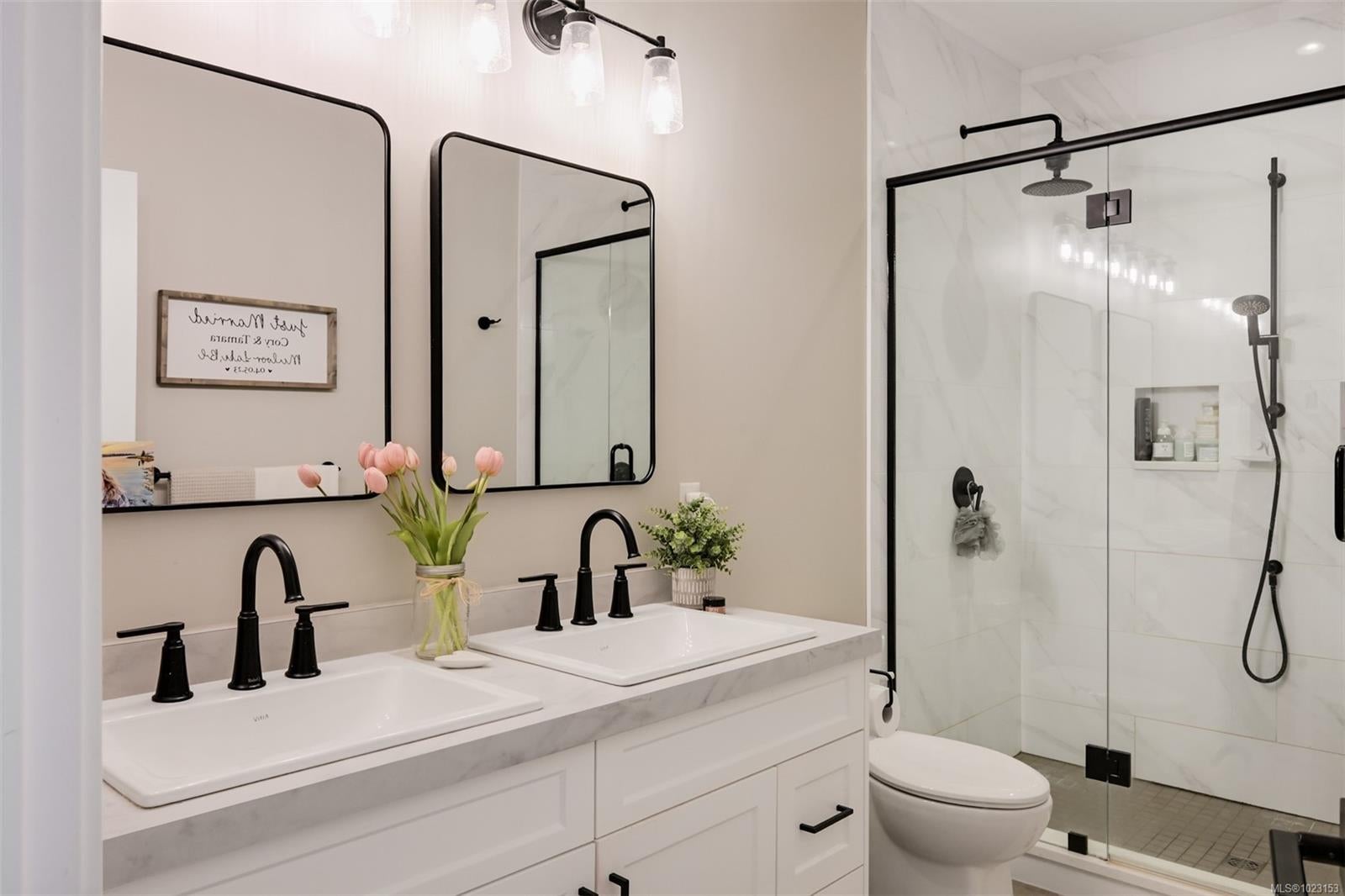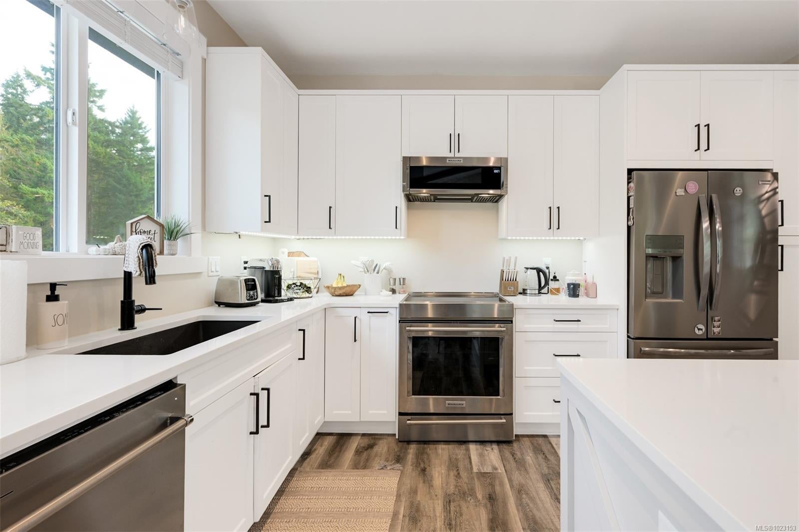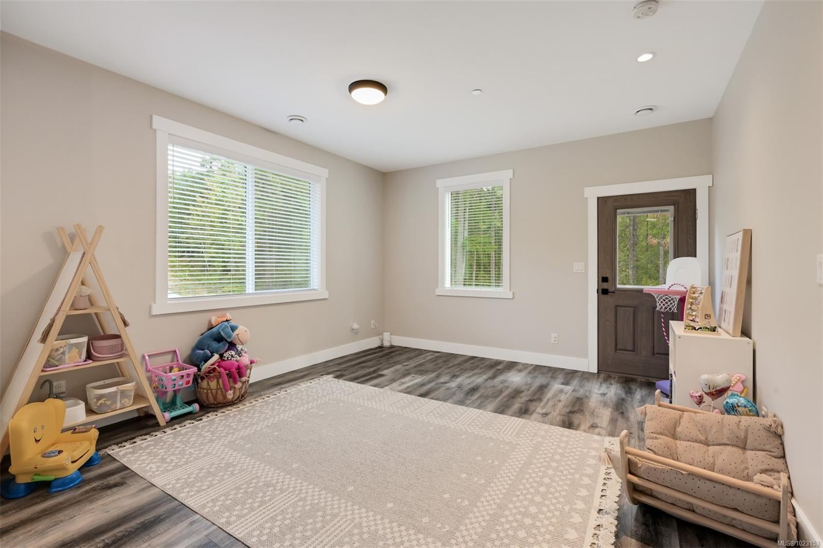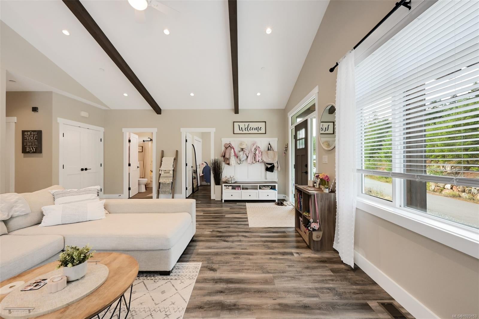 2022 built 2500+sqft four bedroom three bathroom home at Malahat Forest Estates! Three bed two bath main residence with bonus 500+sqft rec room and two garages on the lower level. Legal one bedroom suite with private entry and insuite laundry is an ideal mortgage helper. Well laid out floorplan with open concept main level featuring vaulted ceilings, heat pump for year round comfort, 16x12 primary bedroom with luxurious ensuite, gourmet kitchen with quartz countertops, shaker cabinets and stainless steel appliances. Modern finish throughout and easy maintenance. Durable construction with hardi-plank siding, metal roof, 200 amp electrical, fire suppression system and vinyl windows. There is parking for many vehicles, RVs, boats and all of your toys plus two garages or workshop space totaling 560sqft! Situated on a 11,625sqft lot in the wilderness with nature at your doorstep including trails, lakes and recreation in all directions. Easy access to Hwy 1 and a short commute into Langford.