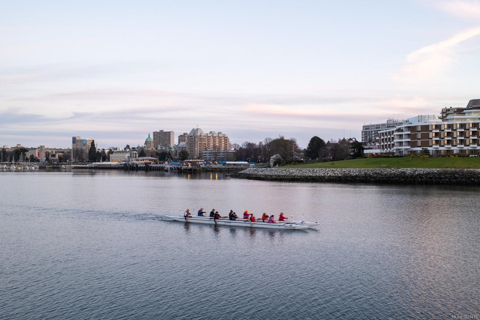 Experience the pinnacle of waterfront living in the heart of the Songhees at coveted Royal Quays. Fully renovated with top tier materials, including a fireplace finished in Italian tile, this executive condo exudes sophistication and charm. Abundant windows flood the home with natural light, showcasing elegant finishes and spacious living areas. The excellent separation between the primary and second bedroom creates the feel of two private suites, ideal for privacy and comfort. Entertain effortlessly in the expansive living and dining area, or relax in the cozy sitting space. The beautiful chef’s kitchen is a true highlight, featuring a generous breakfast nook and a layout designed to seamlessly connect with the living area, perfect for hosting friends and family. Step onto the private covered balcony and soak in breathtaking easterly harbour views and the vibrant activity of Victoria’s waterfront. Embrace the Songhees lifestyle; stroll the scenic West Song waterfront trail to downtown Victoria or visit local favourites like Spinnakers and Boom + Batten. This is waterfront living at its finest, where elegance, comfort, and lifestyle converge.