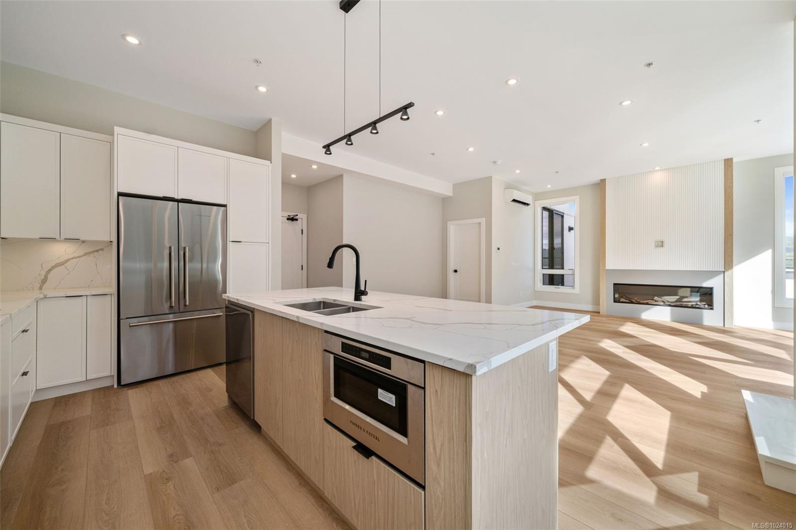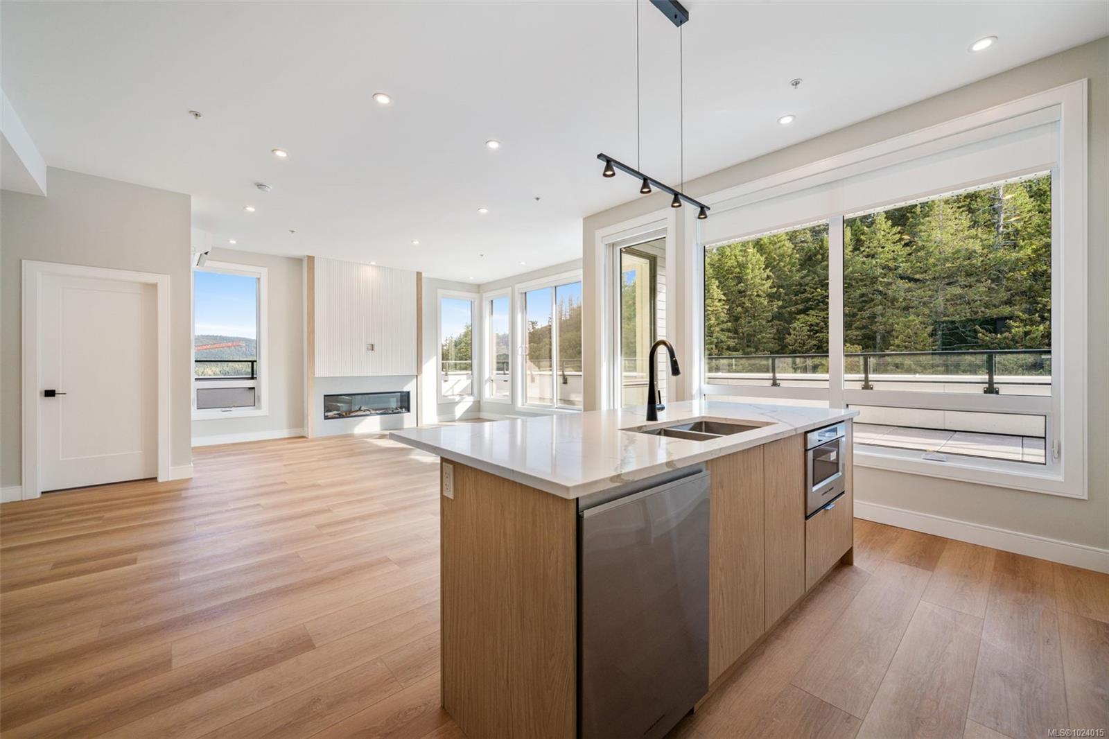 Upgrade your space. Elevate your lifestyle. Now move-in ready, this exceptional Vista Point penthouse offers the perfect blend of luxury, space, and outdoor living with views. Featuring 3 bedrooms, 3 bathrooms, over 1,500 sq. ft. of beautifully designed interiors, and a spectacular 1,100 sq. ft. patio with views of downtown Victoria & the ocean, this home is ideal for both relaxing and entertaining. Soaring 10-foot ceilings and oversized windows fill the space with natural light, while quartz countertops and backsplash, Fisher & Paykel appliances, and heated ensuite floors bring everyday comfort and style. Four efficient heat pump heads provide year-round climate control. This is a rare opportunity to enjoy a private, sun-filled penthouse retreat. Two underground parking stalls, a storage locker, and access to outstanding amenities, including a state-of-the-art gym, community gardens, bike wash, dog wash, and outdoor patio complete this incredible home. Located near Bear Mountain’s championship golf courses, recreation, and shopping.