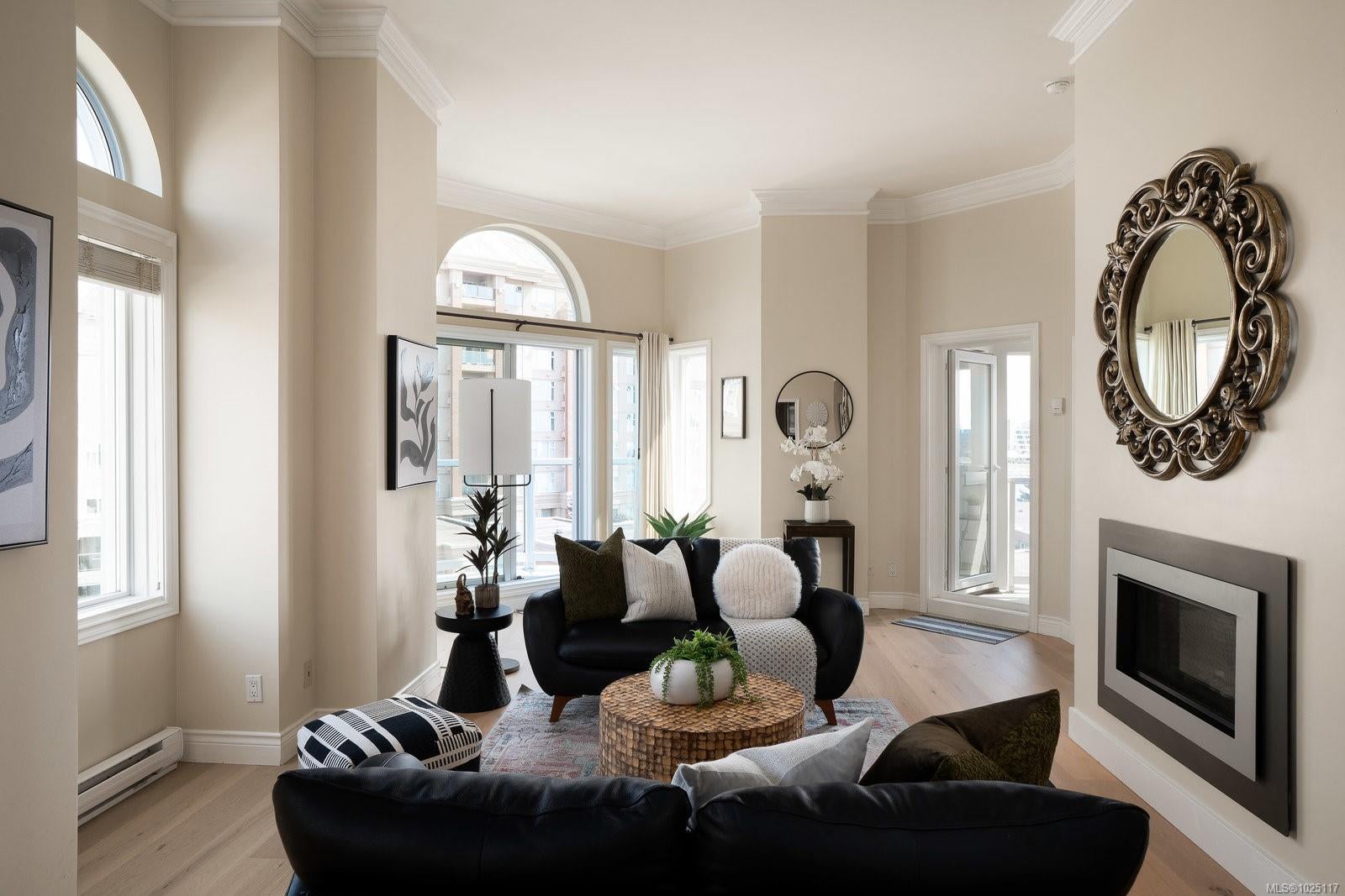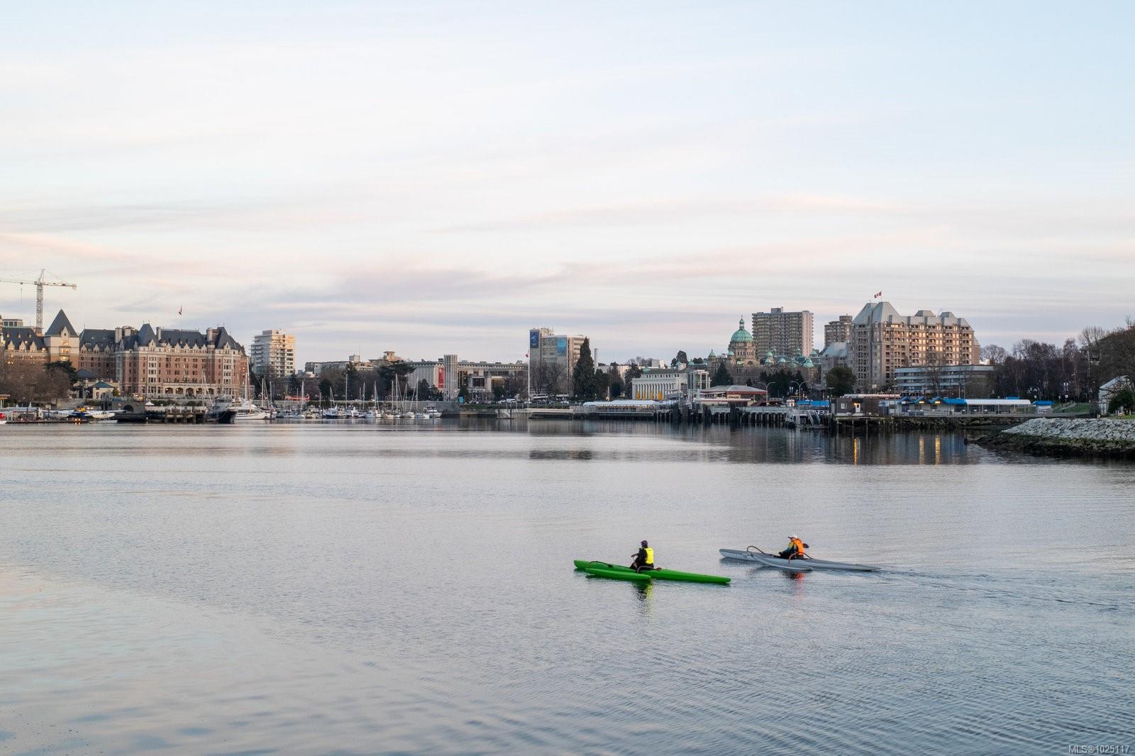 Soaring 11-foot ceilings set the tone for this chic and spacious Corner Penthouse in the prestigious Royal Quays, located in the heart of the Songhees. With 1,572 sq. ft. of updated living space, this 2-bedroom, 2-bathroom home blends style and comfort with ocean glimpses—watch the float planes and kayaks go by, and enjoy the twinkling downtown lights in the evening. A cozy gas fireplace warms the winters, and three balconies invite you to soak in the surroundings year-round. The ideal layout places the bedrooms on opposite sides of the condo, offering both privacy and functionality. Additional highlights include a large laundry room and an underground parking stall with a dedicated storage locker. Step outside and experience the Songhees lifestyle—walk the waterfront trail from West Bay Marina to downtown Victoria, with local favourites like Spinnakers and Boom + Batten just steps from your door. Royal Quays is one of Vic West’s most sought-after addresses, offering an exceptional blend of luxury, convenience, and community. A rare opportunity to experience penthouse living at its finest, minutes from downtown.
