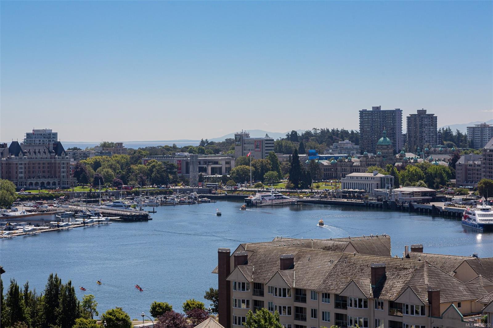BAYVIEW ONE - subpenthouse- style, corner unit w/incredible southwest facing views across Victoria’s Inner Harbour to the Ocean & the Olympic Mountains. One of the city’s most coveted condo settings and quality concrete and steel bldgs offering executive amenities: owners’ lounge & BBQ area, fitness centre, hot tub, sauna/steam, boardroom, car wash, dog spa, guest suite, and concierge service. Entertain with ease from the designer kitchen complete w/upgraded appls incl. wolf gas stove, and a large island & dining area. Enjoy one of the building’s best balconies at sunset & the spacious layout featuring 10-ft ceilings, open-concept living and dining, and bedrm separation, both w/ full spa-inspired en-suites. Nestled in the peaceful Songhees neighbourhood, enjoy waterfront paths and a short walk to experience the lifestyle of Downtown Victoria convenience, the Inner Harbour’s dining, culture, and entertainment. Great value and an amazing location to enjoy the lifestyle surrounding!