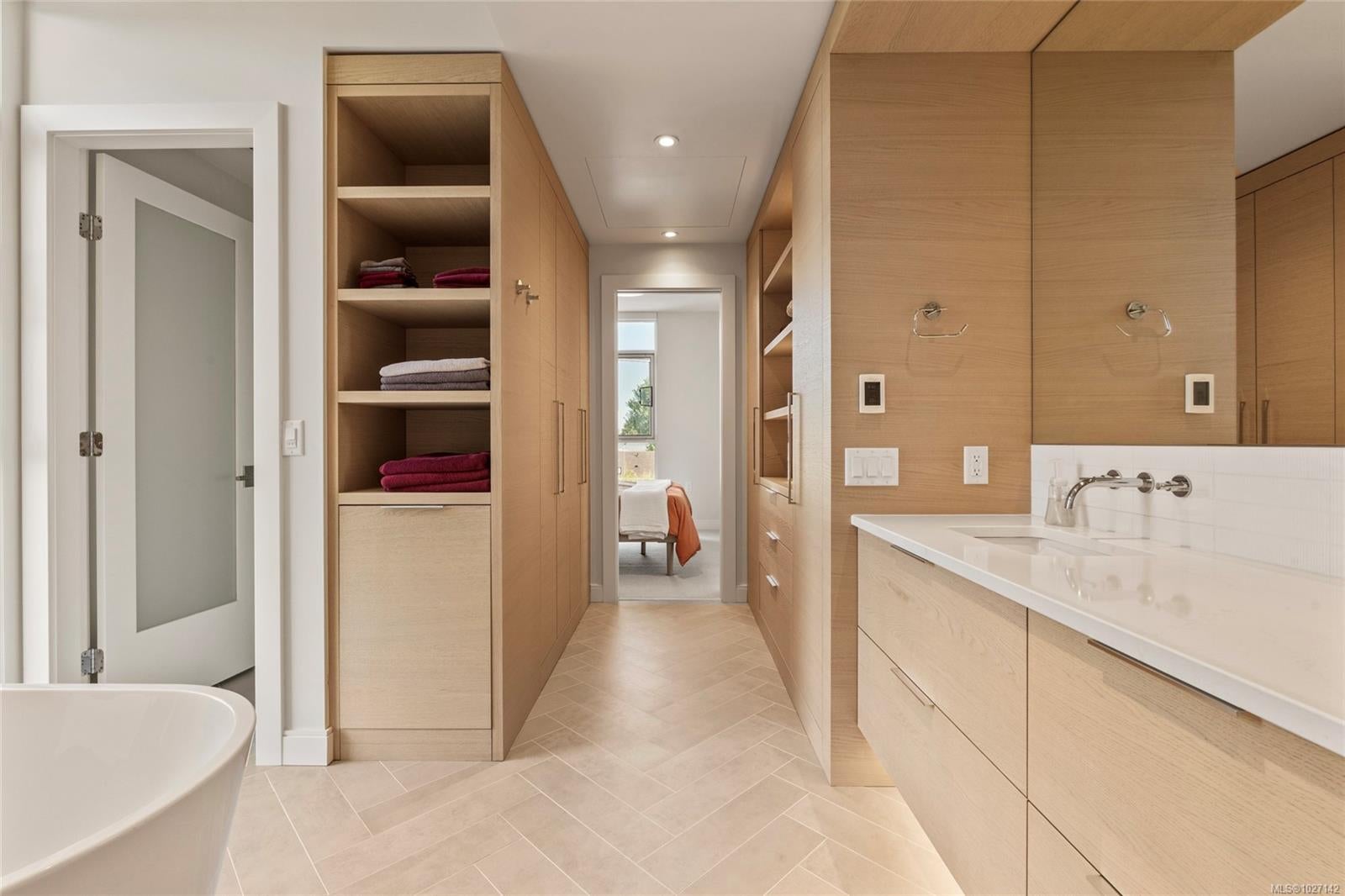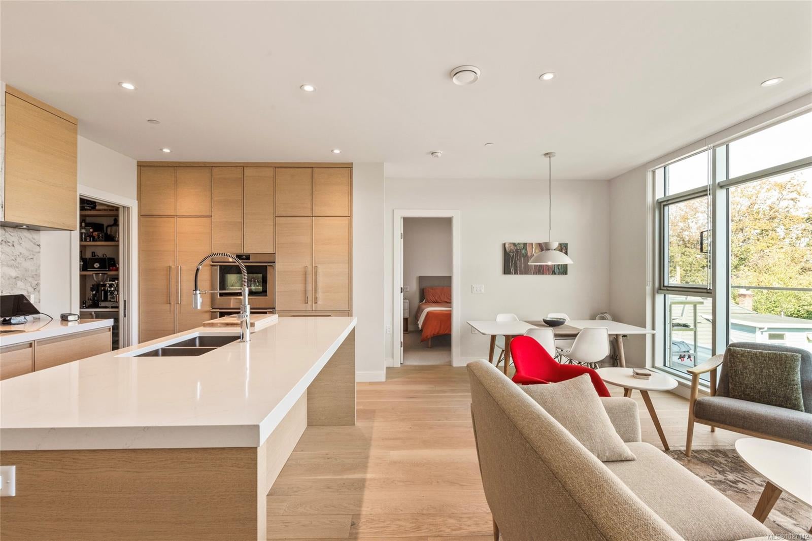 Welcome to this third-floor corner residence in one of Victoria’s most desirable neighbourhoods—steps to Oak Bay Village and Jubilee Hospital. Built by Jawl Residential, this boutique steel & concrete building offers quality construction and peace of mind. This 2 bedroom, 2 bathroom home sits on the quiet, north-facing side of the building, offering cooler summer living and a serene outlook. The standout feature is the exceptionally long private deck, perfect for morning coffee, evening relaxation, or entertaining. Inside, the modern kitchen is equipped with Fisher & Paykel appliances, a Wolf gas cooktop, and quartz counters. Comfort is enhanced with an energy-efficient heat pump, heated bathroom floors, and high-performance windows with motorized blinds. Building amenities include rooftop patio, dog wash, car wash, and bike room. A quiet, elegant lifestyle awaits at The Redfern.