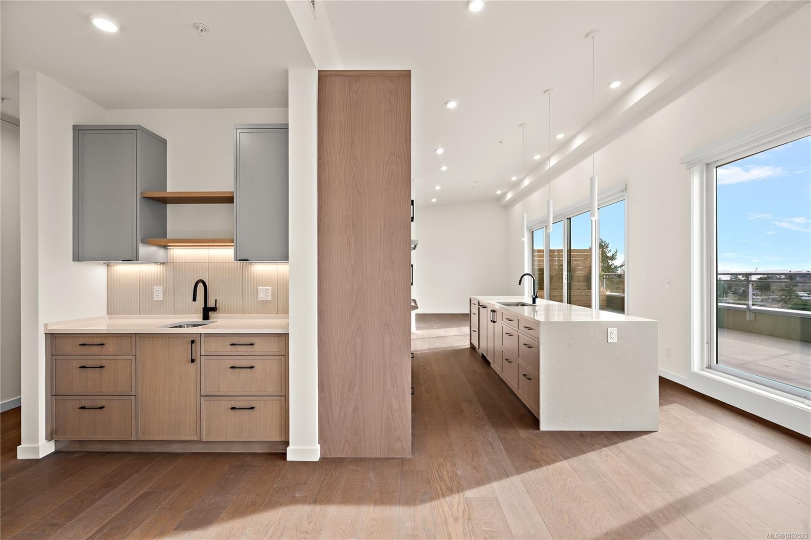 This exceptional penthouse unit offers a striking, straight-on view to the ocean w/ mountain vistas, a captivating outlook that truly elevates everyday living. The vaulted ceilings enhance the sense of space & light, while rich hardwood flooring flows throughout completed in our Caligo colour scheme. The kitchen is appointed w/ premium upgraded Fisher & Paykel appliances, blending elevated design with everyday functionality. The primary is a true retreat, featuring a walk-in closet & an extraordinary ensuite complete w/ oversized walk-in shower designed for a spa-like experience. Largest balcony available which is an expansive extension of your living space & the perfect setting to entertain, unwind, & take in the sweeping ocean views. Experience this move in ready unit for yourself & book an onsite viewing! Two secure underground parking spots included. Perfectly positioned in the heart of Esquimalt Village, just moments from Saxe Point Park, local breweries, shops, & the waterfront.