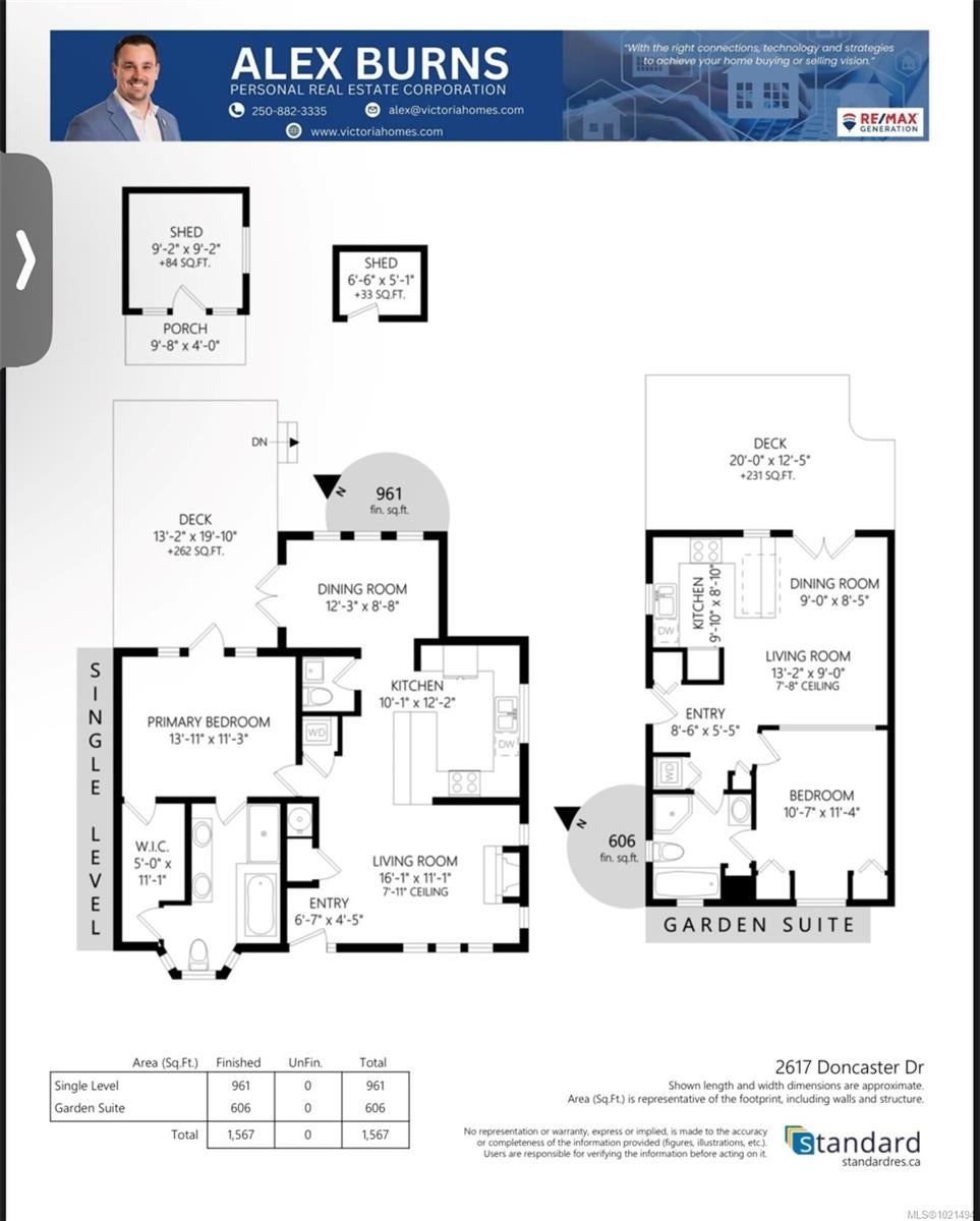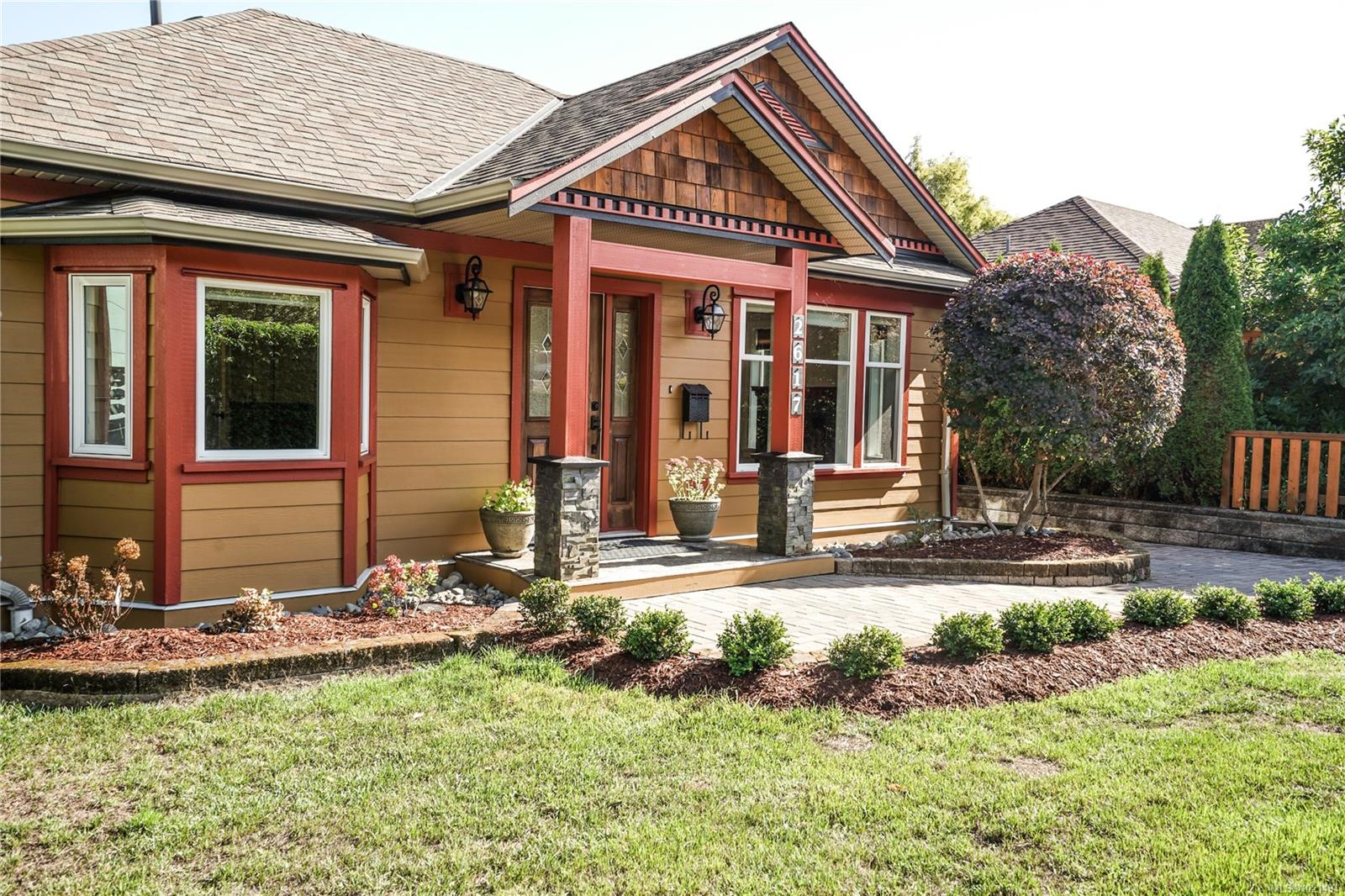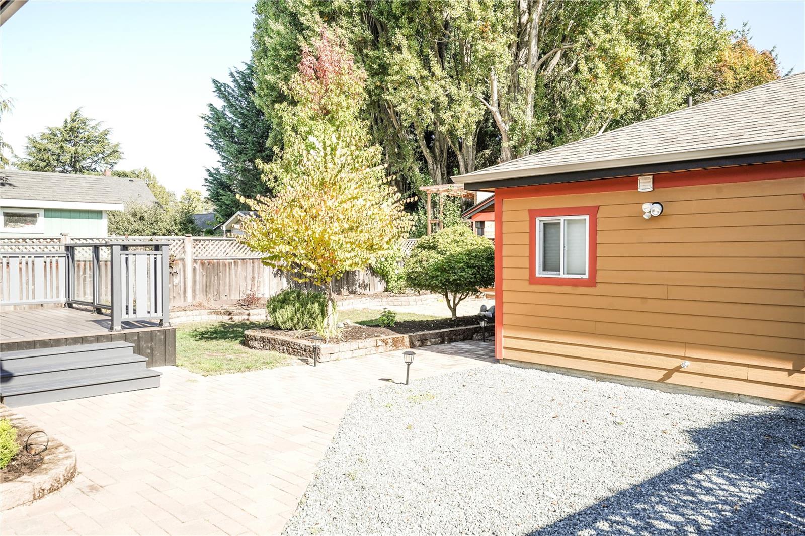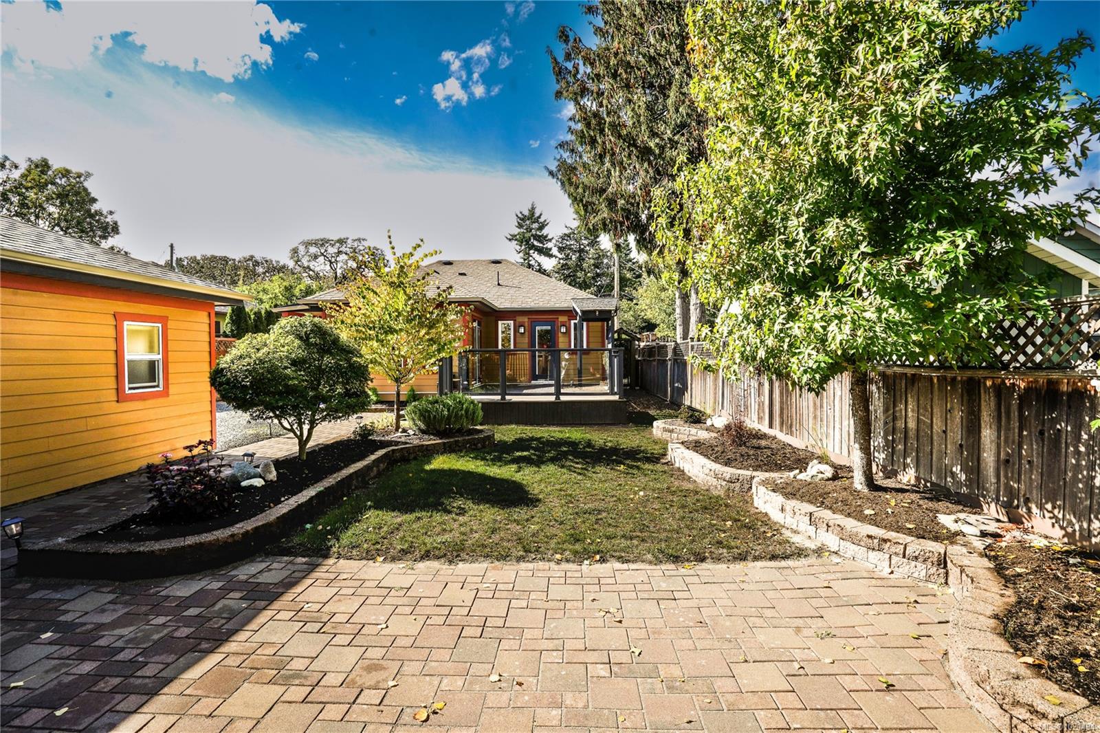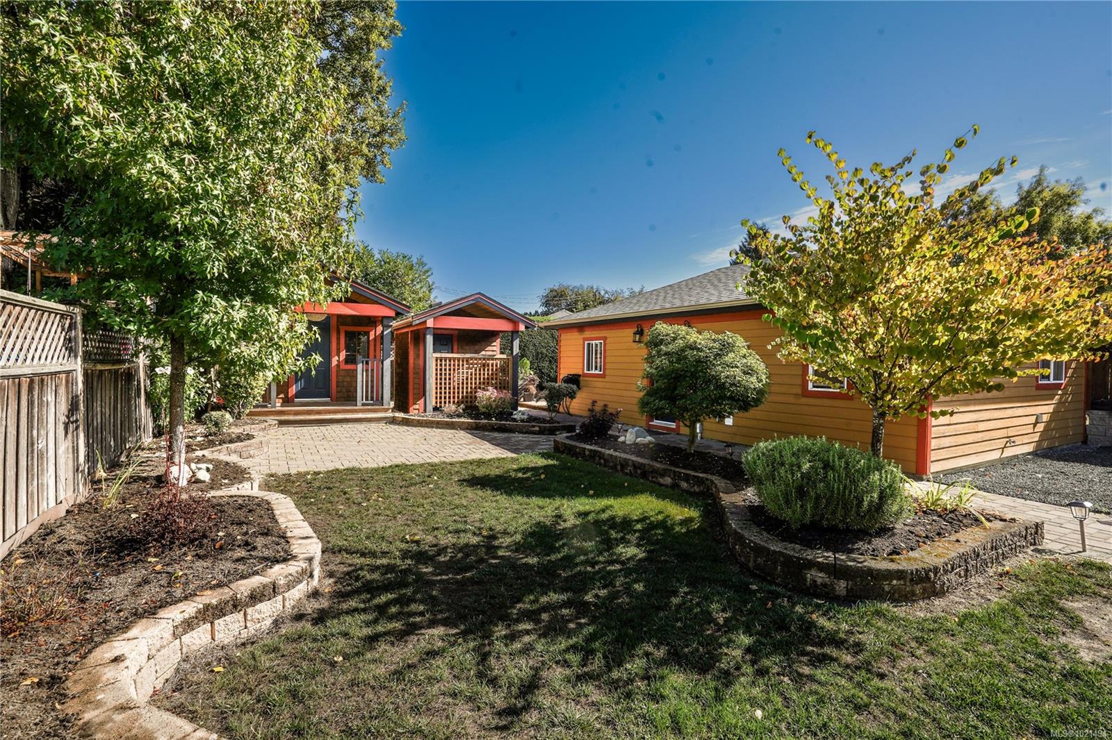 Pristine one-level living with a fully finished detached 1-bedroom suite—perfect as a mortgage helper, guest space, or private workspace. Both dwellings enjoy separate yards and private patios, with the freedom of no strata fees or restrictions. Renovated in 2013 with updated windows, siding, and roof, this home blends timeless Medicine Brick Yard character with modern upgrades. Interior highlights include hand-scraped hardwood, heated bathroom floors with hand-cut Italian tiles, Grohe fixtures, a jetted tub with custom glass shower, gas fireplace, and built-in cabinetry. Kitchen flooring updated in 2020, bedroom carpets in 2025, fresh paint inside & out, recessed lighting, plus an EV charger for modern convenience. Ideally located near parks, transit, and Hillside Mall, this versatile property offers income potential, private outdoor living, and true lifestyle ease.