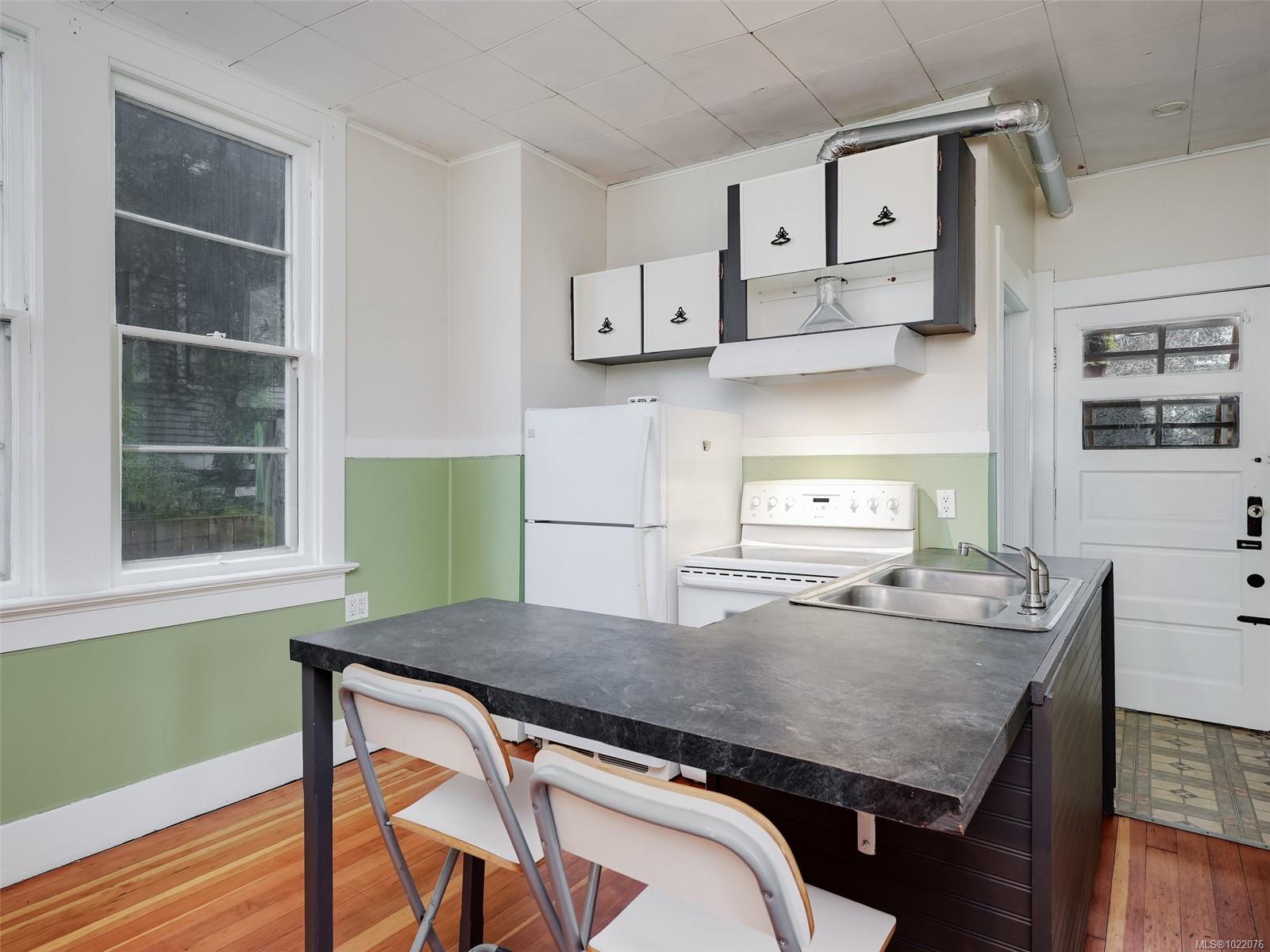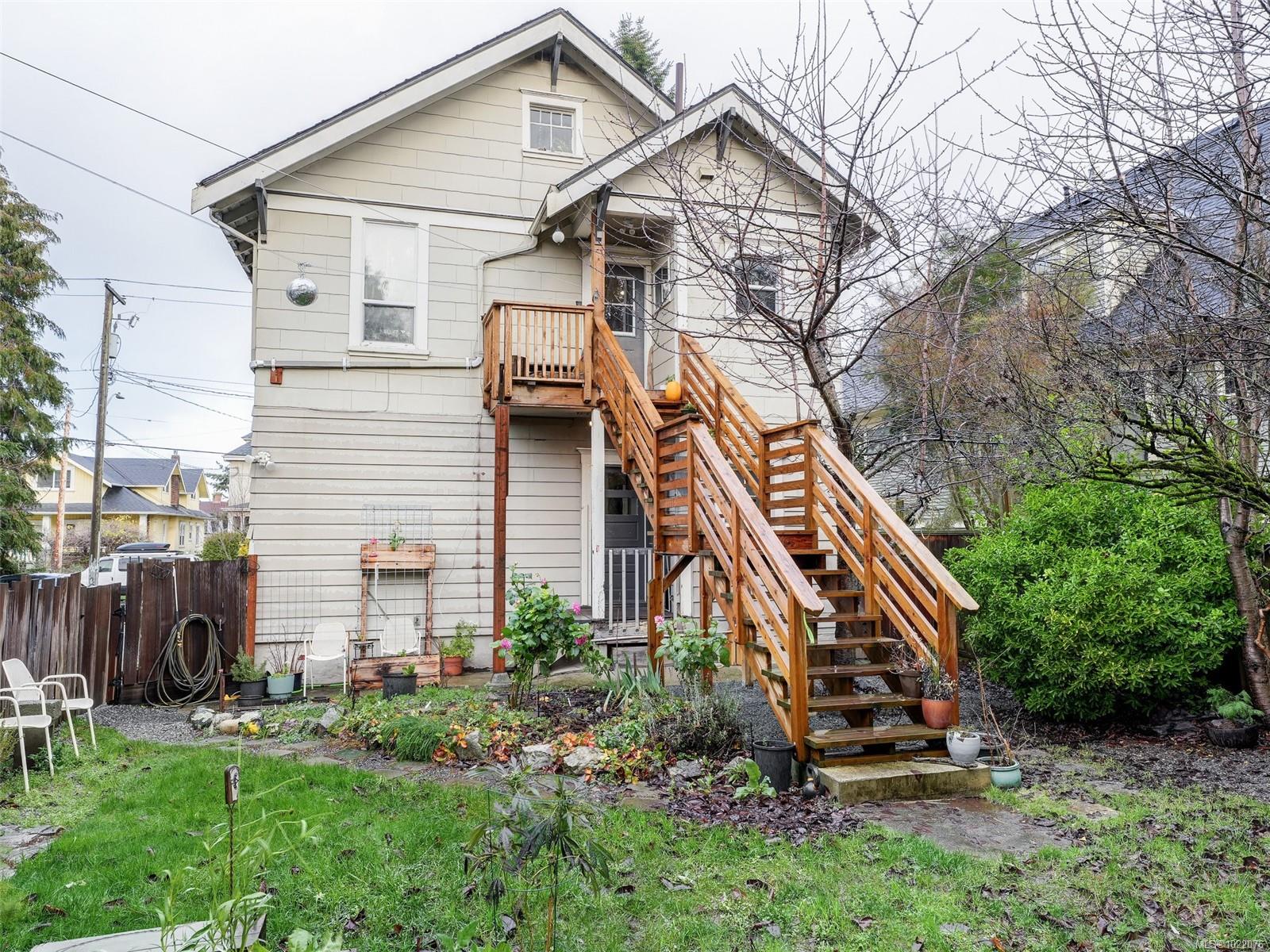 Investor and developer opportunity in Victoria’s Central Park area. This legal duplex sits on a 60 x 120 lot with a sunny, south-facing rear yard and a double garage, plus a layout that invites creative thinking. The duplex is heritage registered but not designated, opening the door to future options while keeping the character that buyers love. With the building positioned to one side, explore potential to stratify the existing home and consider a second duplex, or evaluate a missing middle style project. The main floor offers a vacant one bedroom suite with its own bath, ready for your tenant selection, and it has been rented as a two bedroom plan in the past. The upper suite features a three bedroom layout with one bath and is home to a long-term tenant planning to move in late fall 2026. 1920s charm meets key mechanical upgrades, with added value possible through basement development, garage accommodation potential, or full redevelopment.