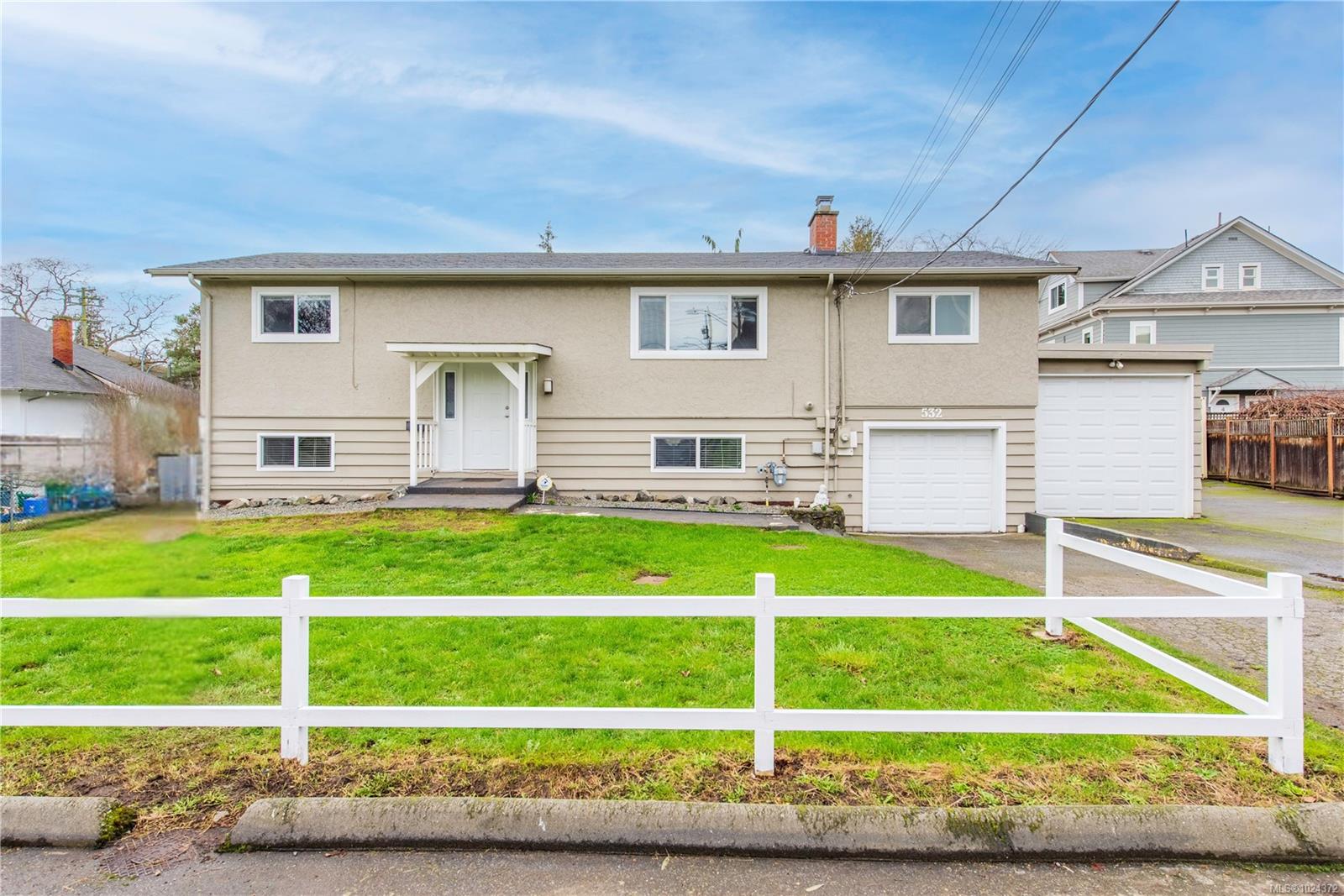 Welcome to the rare 5bed, 3bath, suited house in VicWest/Esquimalt. The main level features a large living room with a fireplace and a beautiful open concept kitchen. On one side of the main floor is the primary suite which has a large bedroom, office/sun room off the back and a walk through closet and ensuite on the front. On the other side of the main level you will find 2 more bedrooms and a bathroom with the laundry. Downstairs has another bedroom that is part of the main, but can easily be added to the suite. In addition is a spacious one-bedroom suite with full-sized living room, bathroom and separate large laundry room. The house also features a one car garage with access to the house and a second large one car width garage tall and deep enough for a boat with extra space. There is room for RV parking on the side, plus 2 spots in front. The south-facing yard is fully fenced for kids or pets. All of this is located on a cul de sac within walking distance to ocean, and downtown.