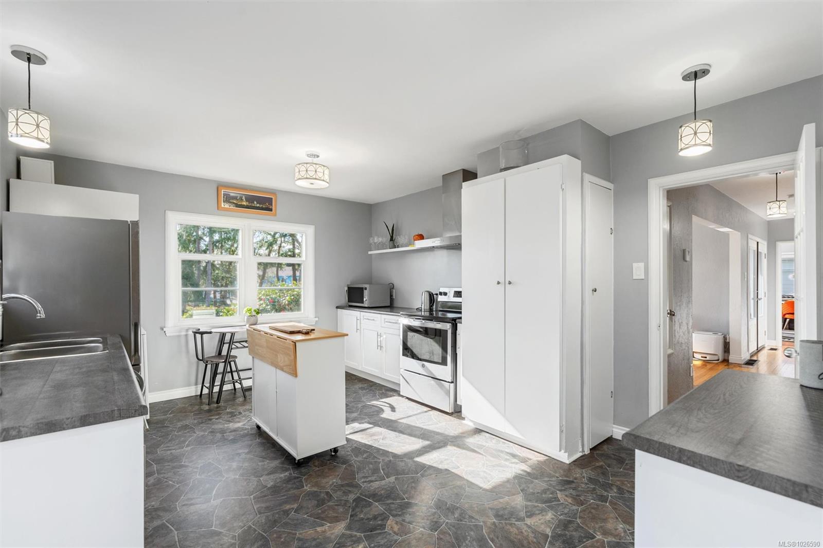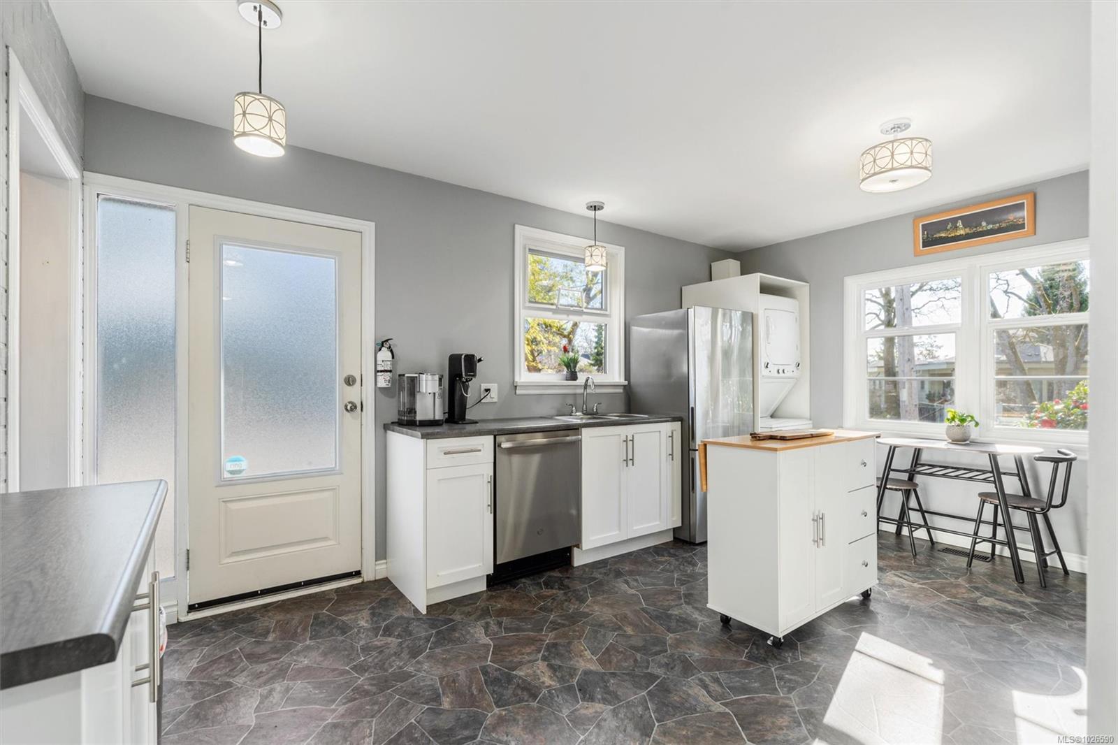 Discover a thoughtfully updated home offering exceptional flexibility, privacy, and income potential—set in a peaceful, family-oriented neighbourhood close to parks, schools, and everyday amenities. The upper level features two comfortable bedrooms, an updated kitchen and bathroom, and inviting living and dining spaces that flow onto a sunny deck—perfect for hosting or enjoying quiet mornings. Downstairs, a bright one-bedroom suite with its own entrance and private fenced garden creates an ideal setup for extended family or guests. This versatile layout also allows for an easy return to a full single-family home, making it well suited for multi-generational living. Significant improvements include perimeter drains, updated windows, a new ducted heat pump, hot water tank, and beautifully landscaped, fully fenced grounds designed for year-round enjoyment. Move-in ready and rich with opportunity—this is a property that truly delivers on lifestyle, flexibility, and long-term value.