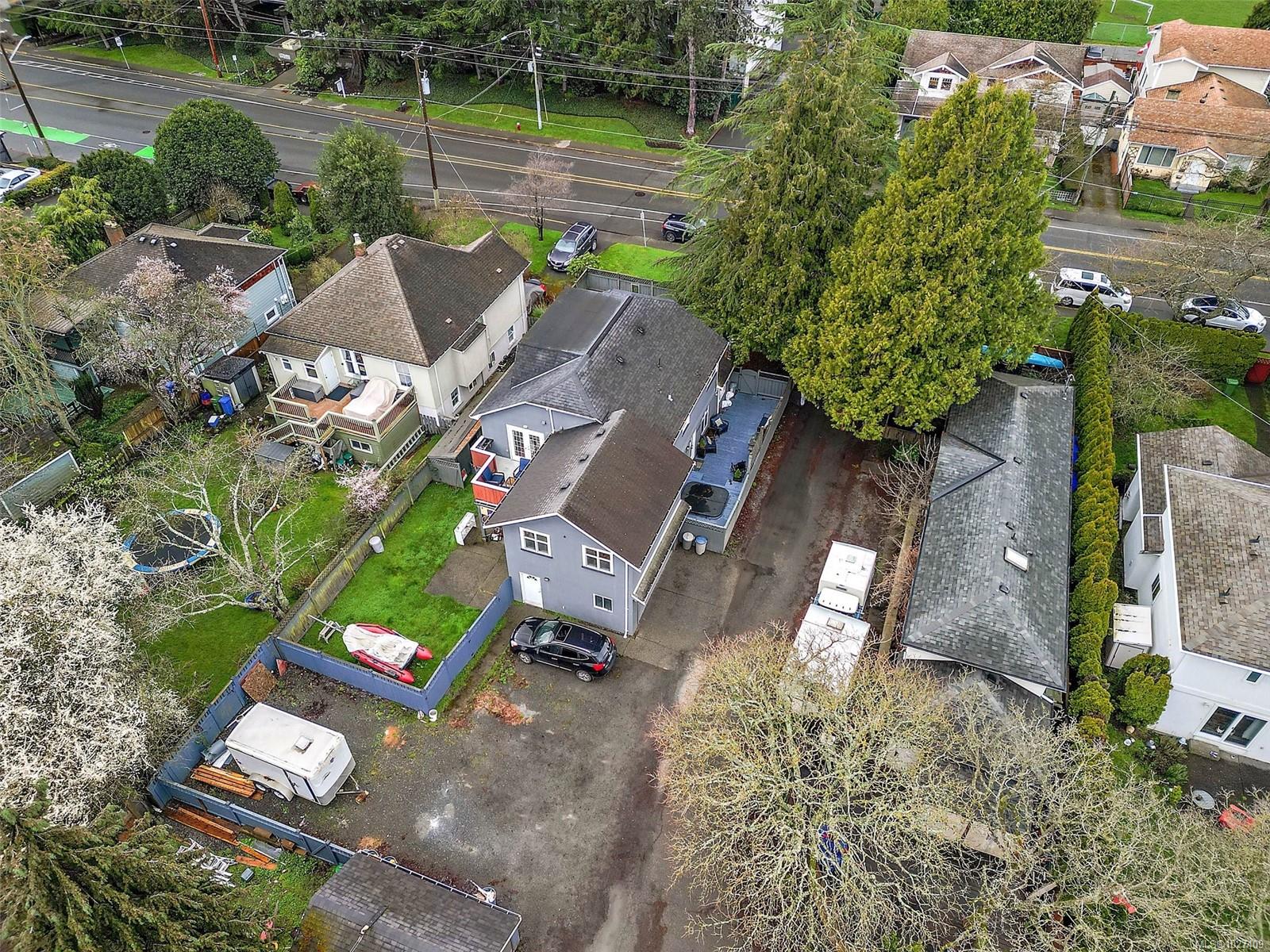 Looking for a Prime Oak Bay Investment home, This is the one. Set well off the road with convenient laneway access, this private residence delivers outstanding versatility, including parking for up to six vehicles plus space for an RV or boat.Professionally raised and reconstructed in 1992, the home features a double garage with living space above, along with updated stucco and exterior paint completed in 2001.The main level offers 4 spacious bedrooms, including a secluded top-floor primary retreat. Expansive windows bring in beautiful natural light while preserving privacy .Enjoy effortless indoor-outdoor living with a sunny balcony, deck, hot tub, mature landscaping, and a fully fenced yard—perfect for families and entertaining.The bright, ground-level LEGAL 2-bedroom,2-bath suite(approx.1,000 sqft)is tastefully finished with quality soundproofing, ideal for multigenerational living or strong rental income.With a 2-year-old roof and on a bus route.
