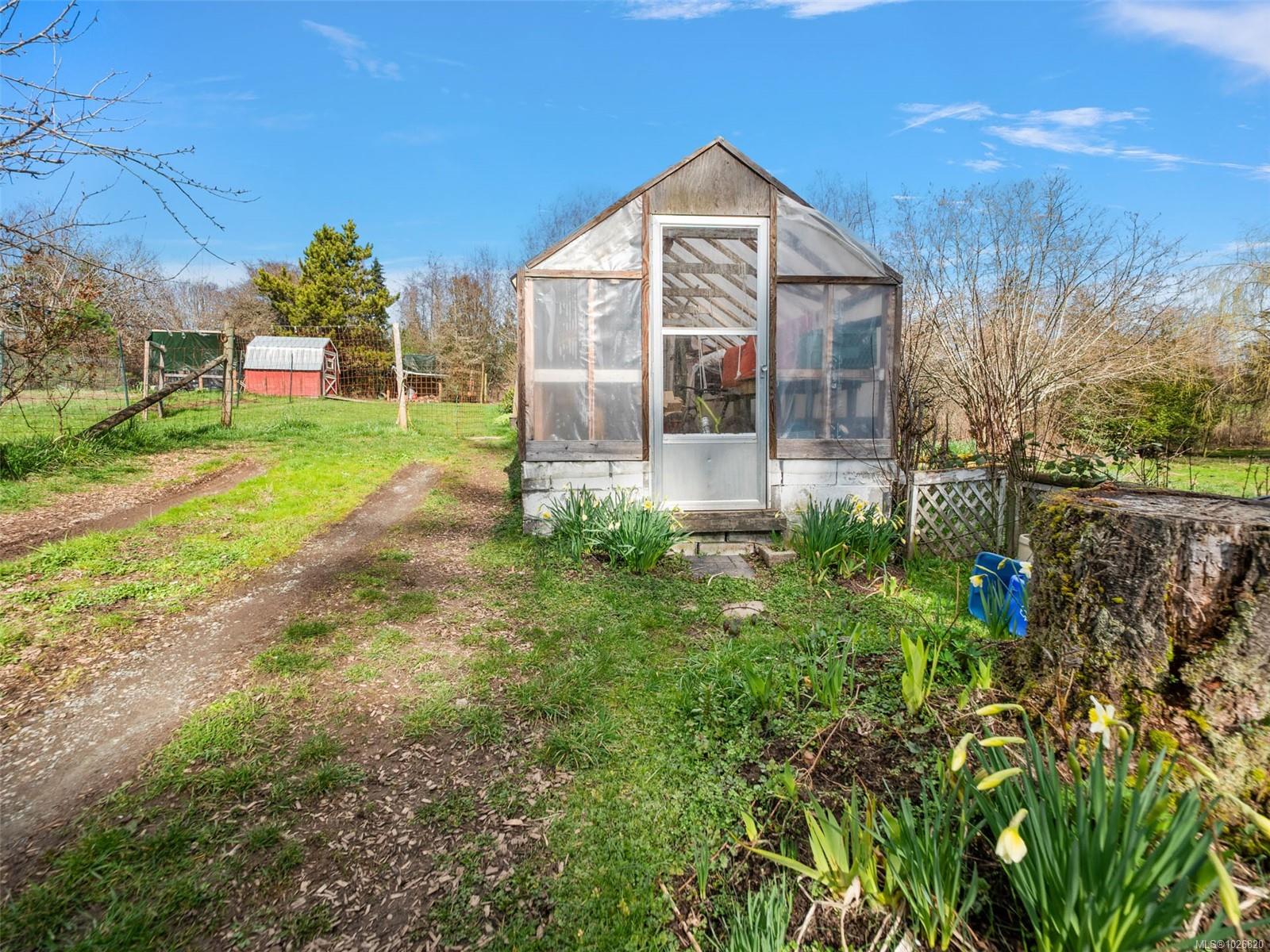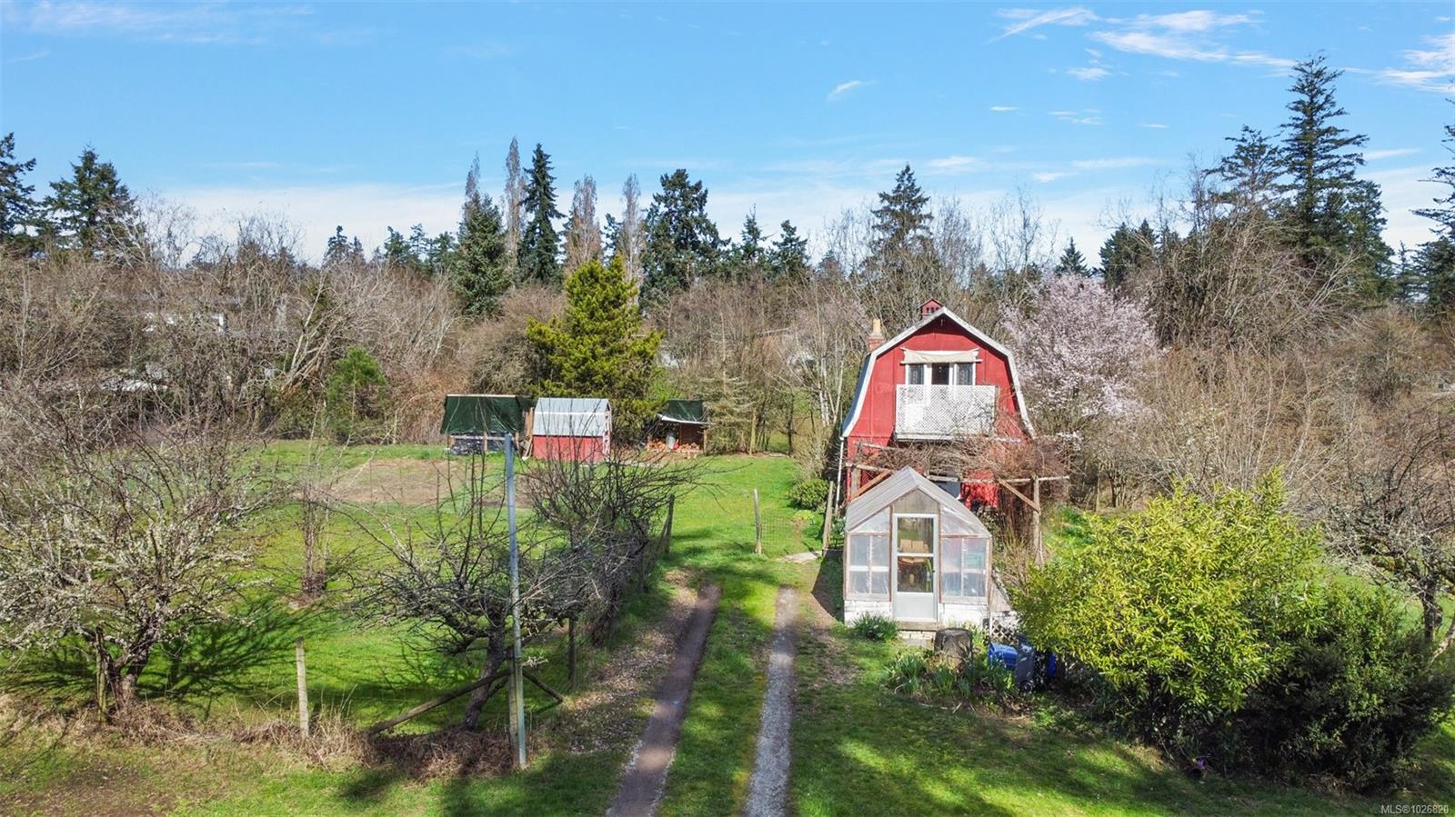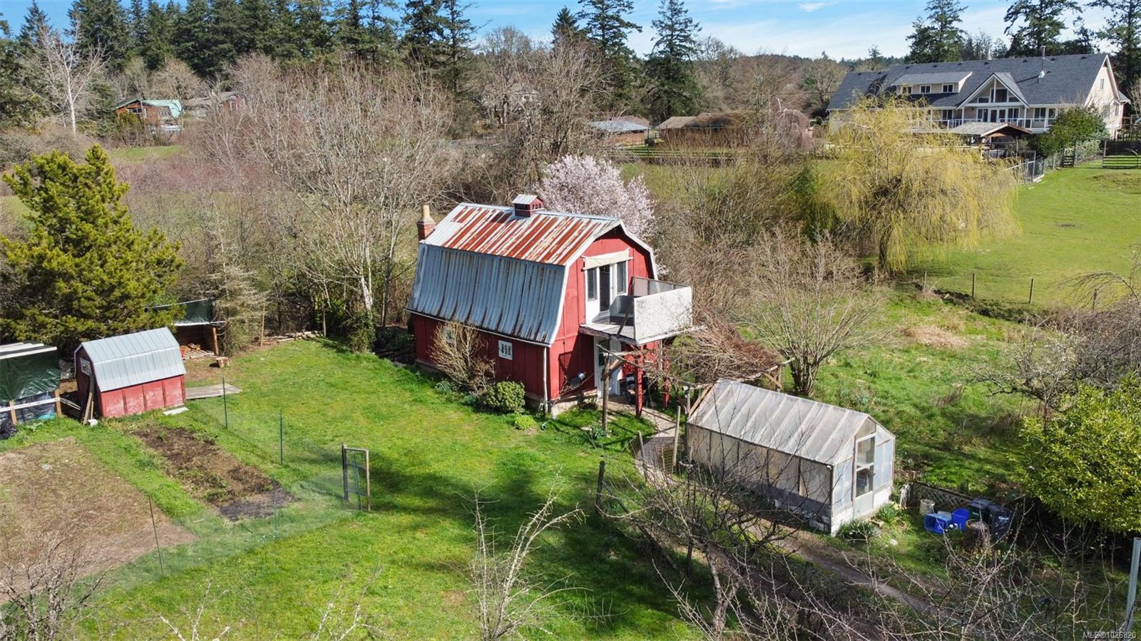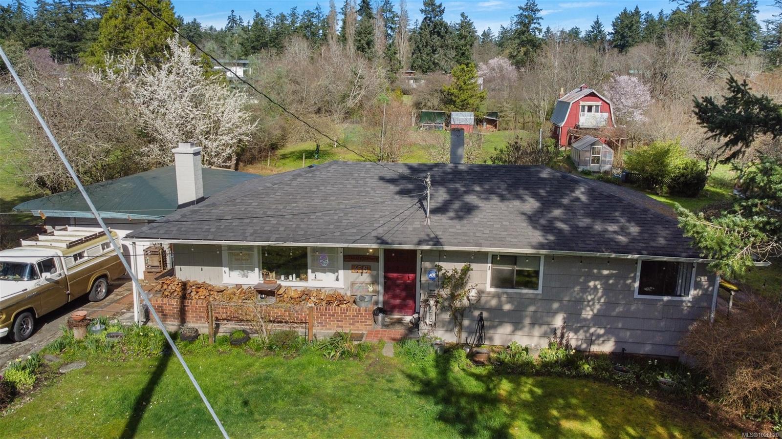 Tucked away in a prime Saanich West location, this one-acre property zoned A-1 offers a rare blend of privacy, sunshine and many possibilities. The main residence is a lovely Rancher that enjoys peaceful views with a traditional layout offering 3 bedrooms, a 4-piece bathroom, a combined living/dining room with the warmth & ambience of a wood fireplace, a family room, laundry room, eat-in kitchen with access to the generous screened-in porch. A converted red barn is a self contained studio with an eat-in kitchen, living room, 4-pc bathroom on the main level plus a bedroom with a balcony and a den on the second level. This versatile secondary space includes charming pathways, a private slate patio and exterior custom fireplace, extended family, workspace or potential supplemental income. The gently sloping, usable acreage features established landscaping and multiple accessory structures, offering flexibility for a variety of uses. Many improvements have been made since 2018 including; a single garage, double-height carport, storage shed, rebuilt greenhouse, chicken coop, interior/exterior paint, flooring, lighting, electrical refinements, plumbing repairs, bathroom improvements, furnace servicing & duct cleaning, roof & gutter replacement, new hot water tank and municipal water line repair/upgrade. The above-ground oil tank servicing the main home was replaced in 2025.The septic system is older but functioning properly and has been proactively maintained, including a pump-out completed in 2025. This is an exceptional opportunity to secure acreage in a tightly held neighbourhood offering space, versatility and much potential. Just minutes from Camosun College as well as the shops & amenities of Royal Oak.