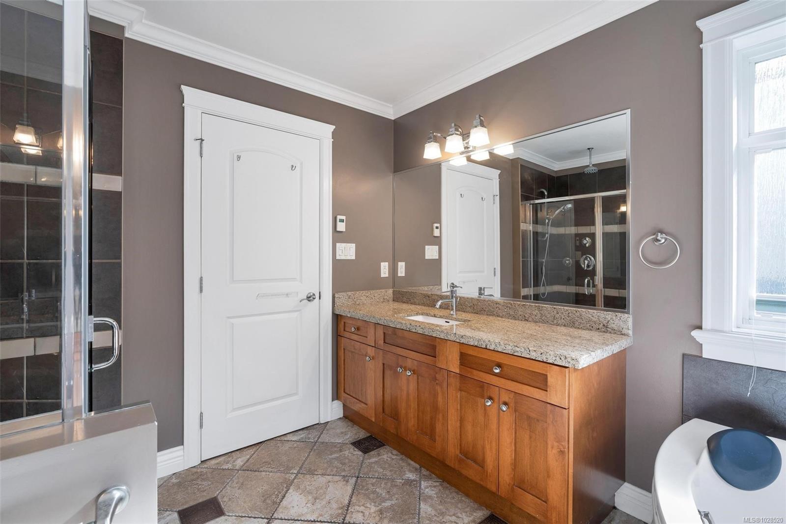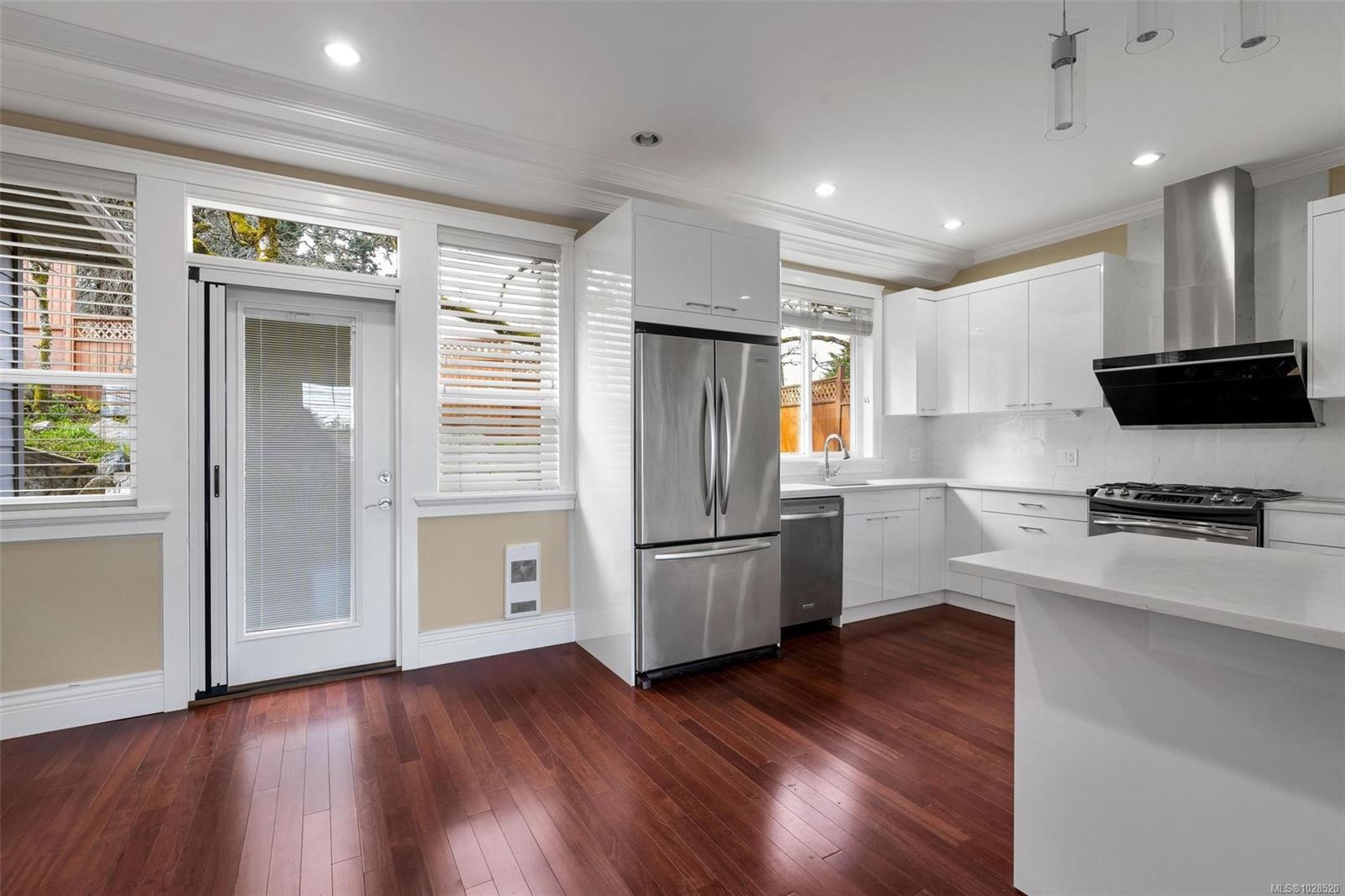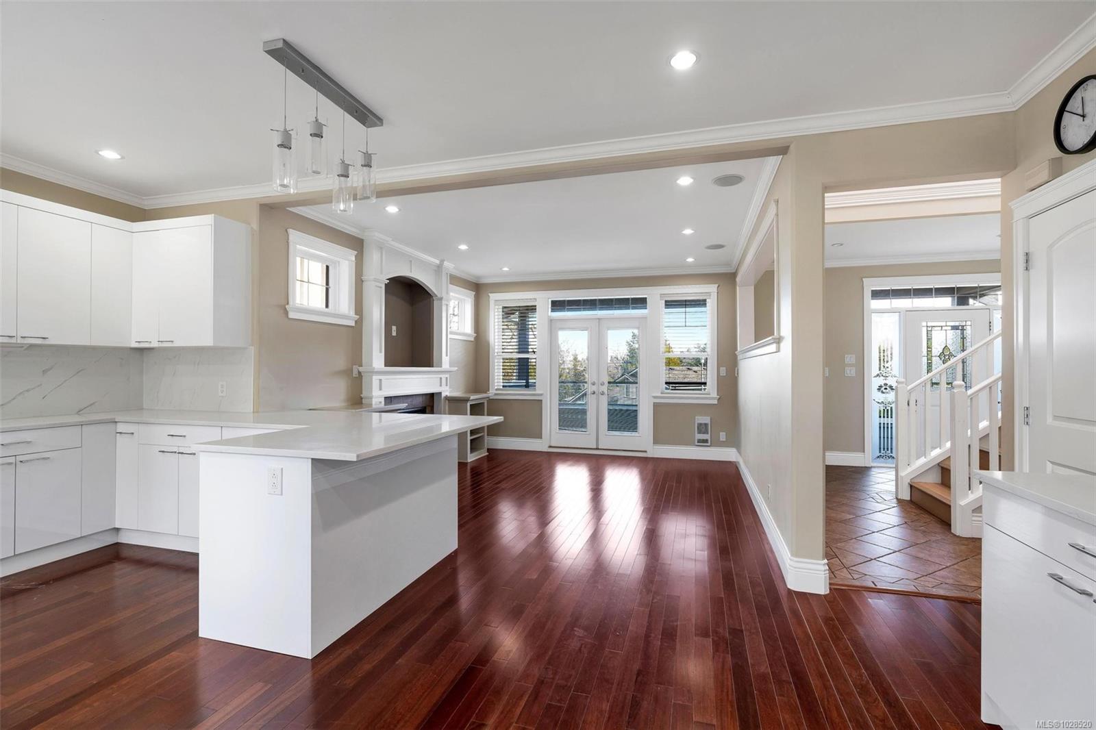 Exceptional three-level home offering over 3,100 sq ft of well-designed living space, blending comfort and versatility. The main level features generous principal rooms ideal for everyday living and entertaining, plus a dedicated home office/den. The kitchen was updated in 2021 with new cabinetry and appliances, opening to the breakfast area and family room. Two gas fireplaces add warmth and charm. Upstairs offers three spacious bedrooms, including a primary suite with a spa-inspired ensuite featuring heated tile floors and a soaker tub. The upper level was updated in 2021 with new flooring. A fully self-contained two-bedroom lower-level suite provides excellent flexibility for extended family or mortgage helper potential. Located on a quiet cul-de-sac in desirable Cedar Hill, this home includes a double garage, expansive patio, natural gas heating with radiant floor comfort, and a low $35/month Bare Land Strata fee — a rare opportunity in Saanich East.
