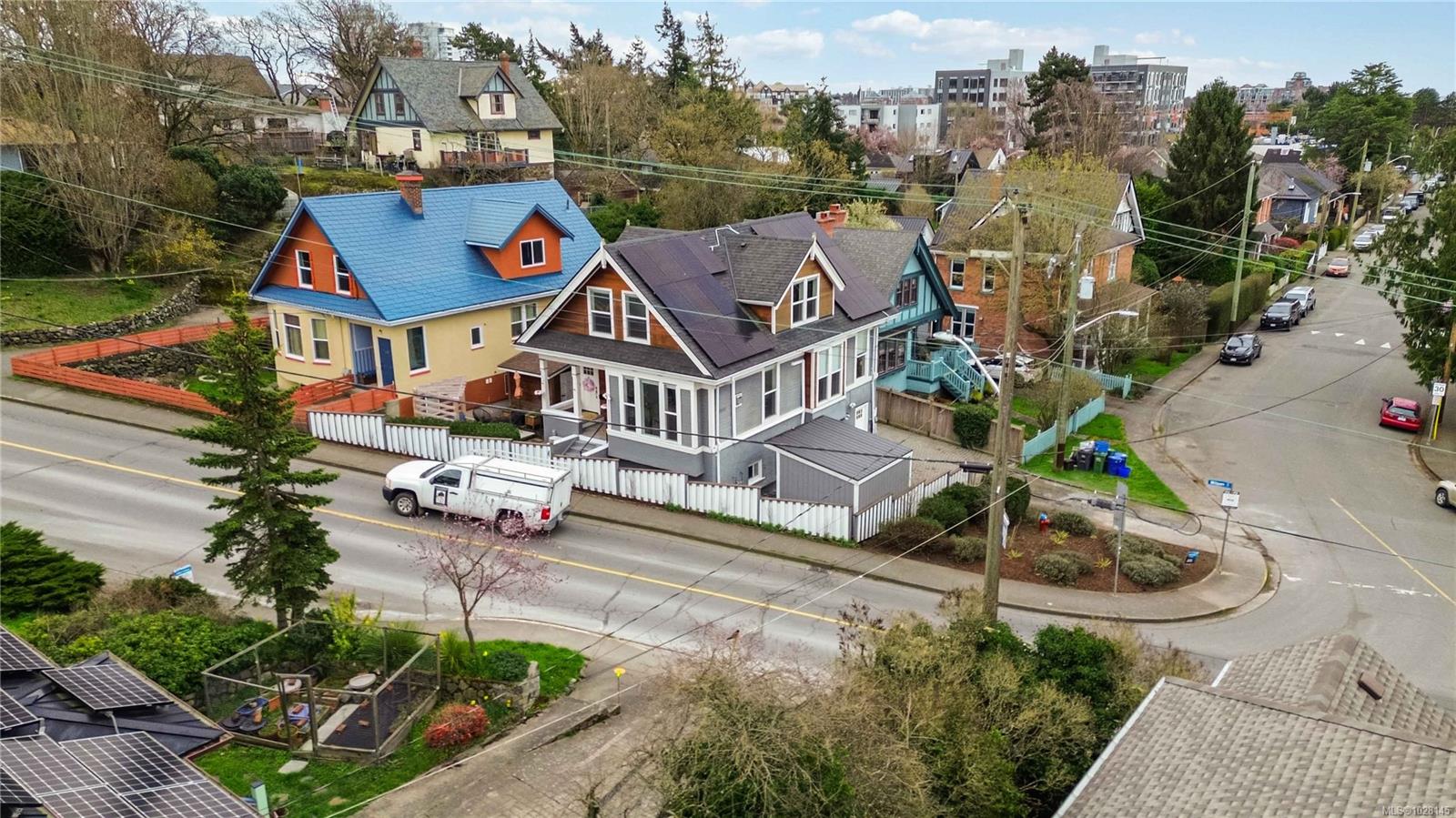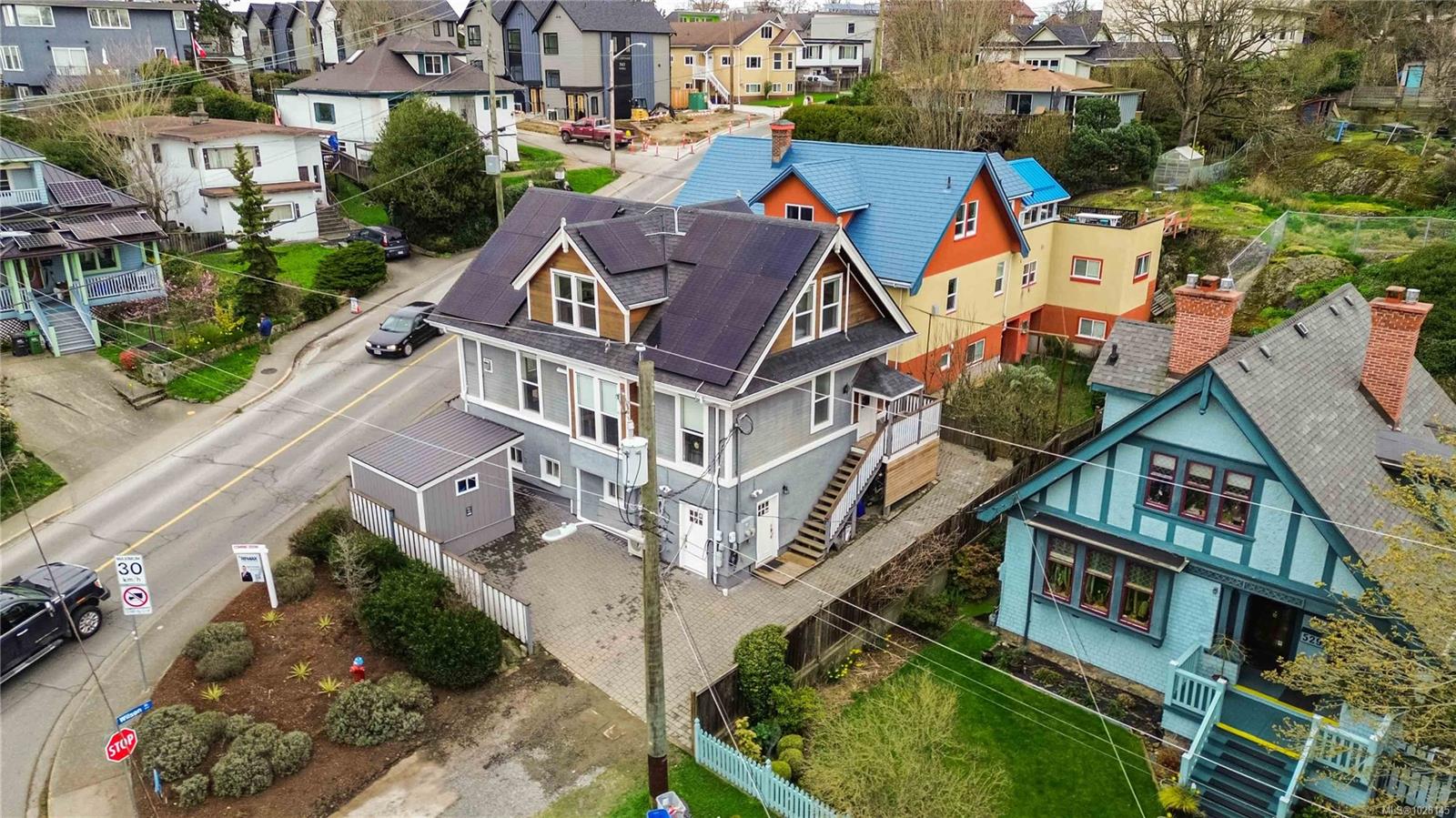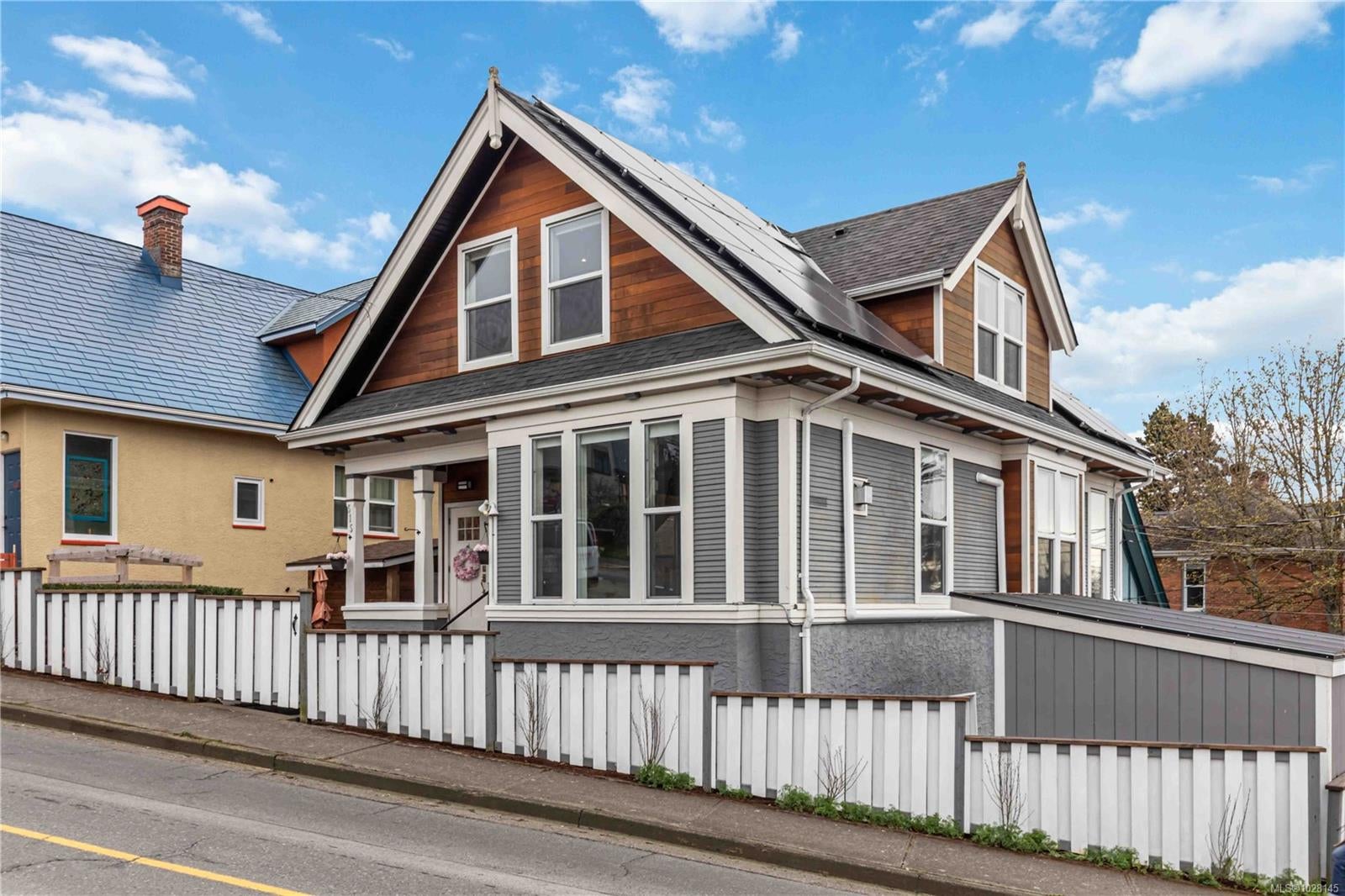 A rare offering in the heart of Victoria West, this beautifully updated legal duplex combines classic character with modern comfort in one of the city's most vibrant neighbourhoods. With 6 bedrooms, 3 bathrooms, and a flexible layout, this is the kind of property that opens the door to many possibilities, whether you're looking for a home with mortgage help, space for extended family, or a smart long-term investment. Originally built in 1912, the home retains the charm buyers love, including hardwood floors, high ceilings, large windows, and vintage details, while offering the upgrades that make daily life easy. Two kitchens, two laundry areas, private entrances, and separate living spaces create exceptional flexibility for the next owner. Inside, the home feels warm, functional, and inviting, with quartz countertops, stainless steel appliances, custom blinds, LED lighting, a gas fireplace with a marble surround, and on-demand hot water. Over the years, important improvements have included perimeter drains, updated plumbing and electrical systems, roof improvements, paint, newer appliances, and a cedar shed. Since purchasing in 2024, the current owners have continued to enhance the property with heat pumps in both units, solar panels for the lower unit, custom cabinetry, EV chargers, a pergola, patio cover, and exterior painting. Just steps to Vic West Village, parks, the waterfront, transit, and downtown, this home has character, income potential, and an unbeatable lifestyle location.