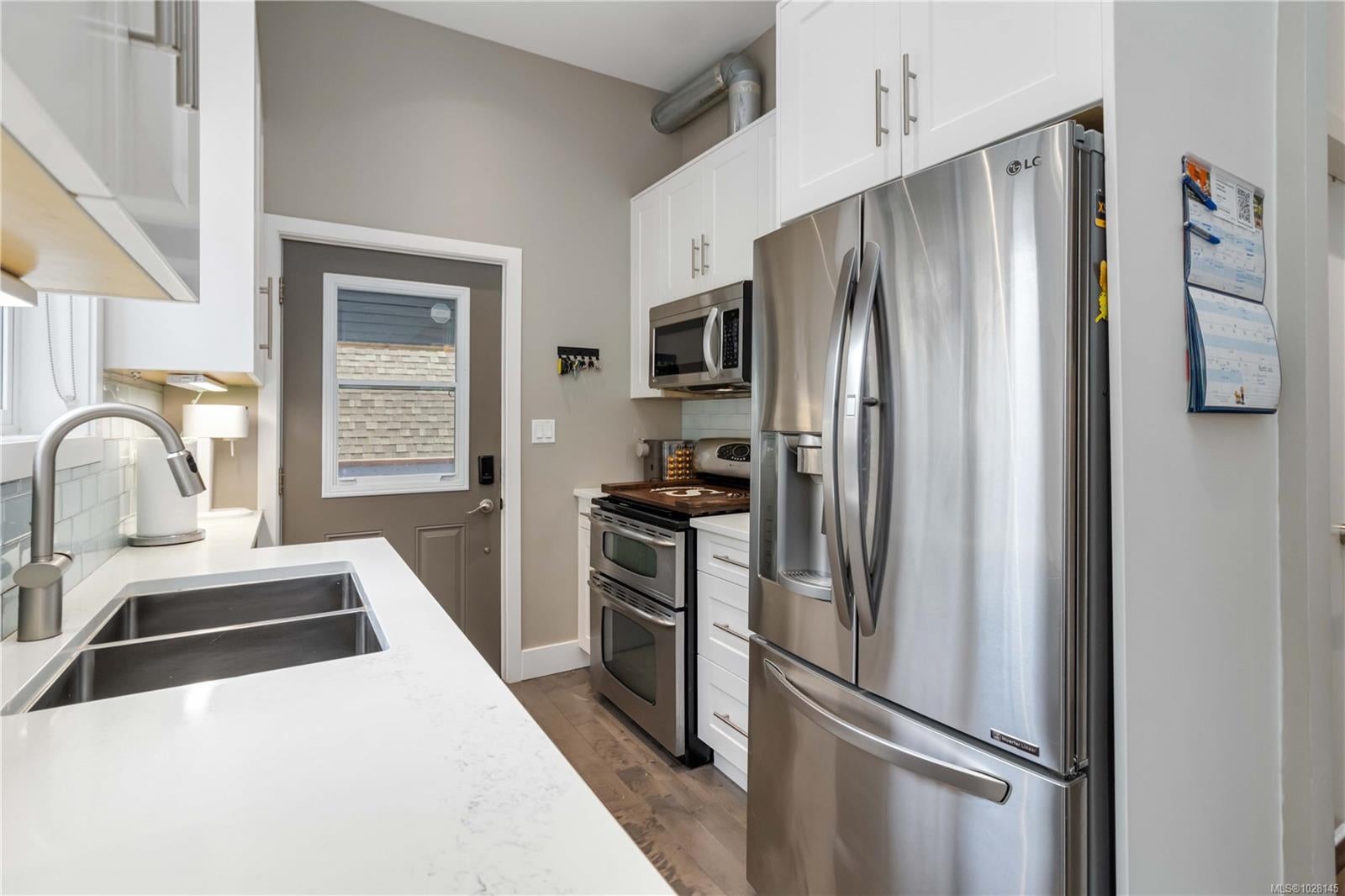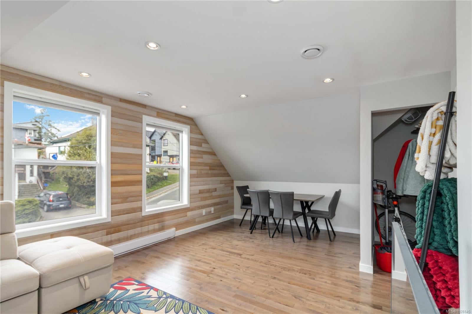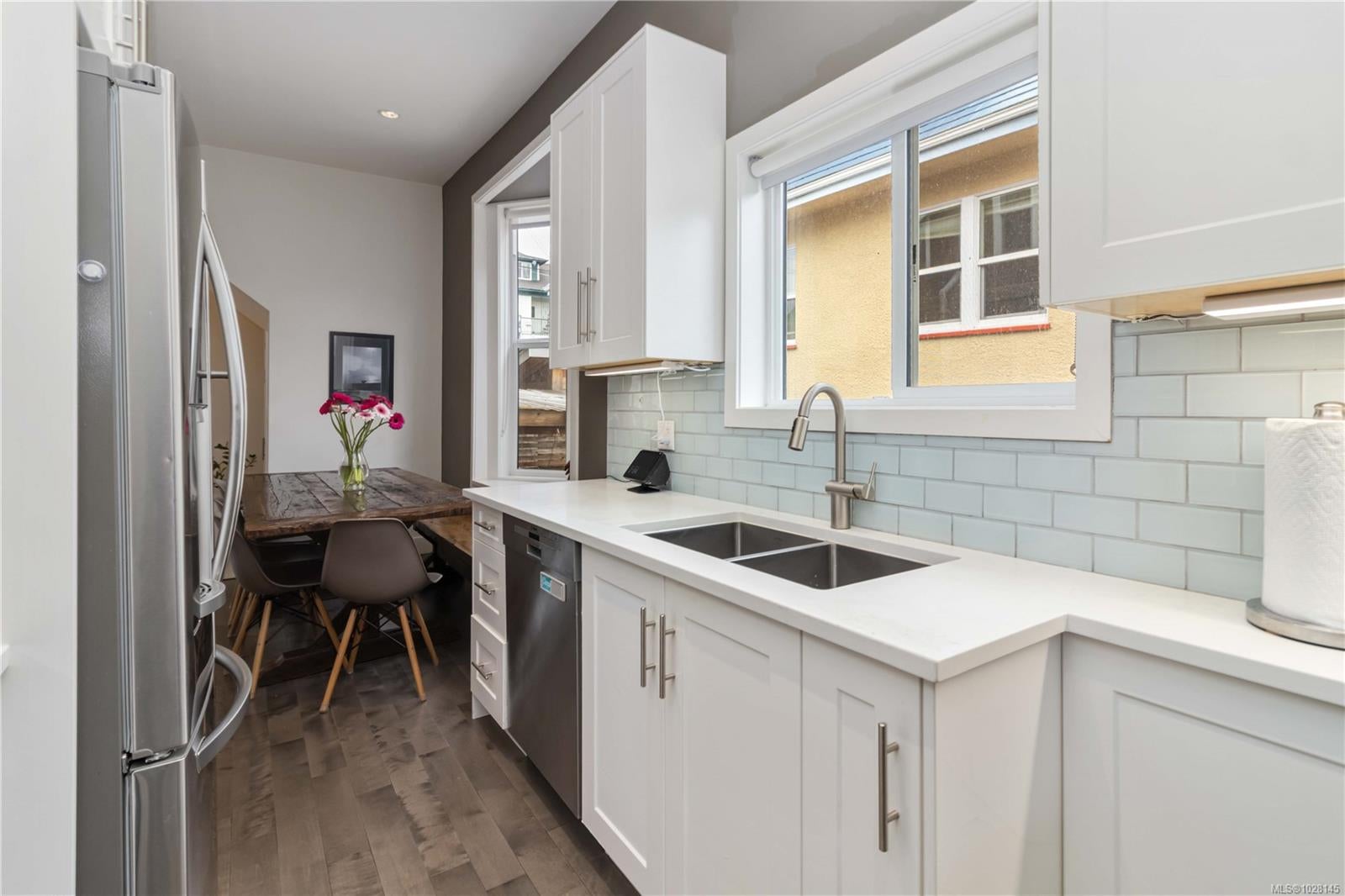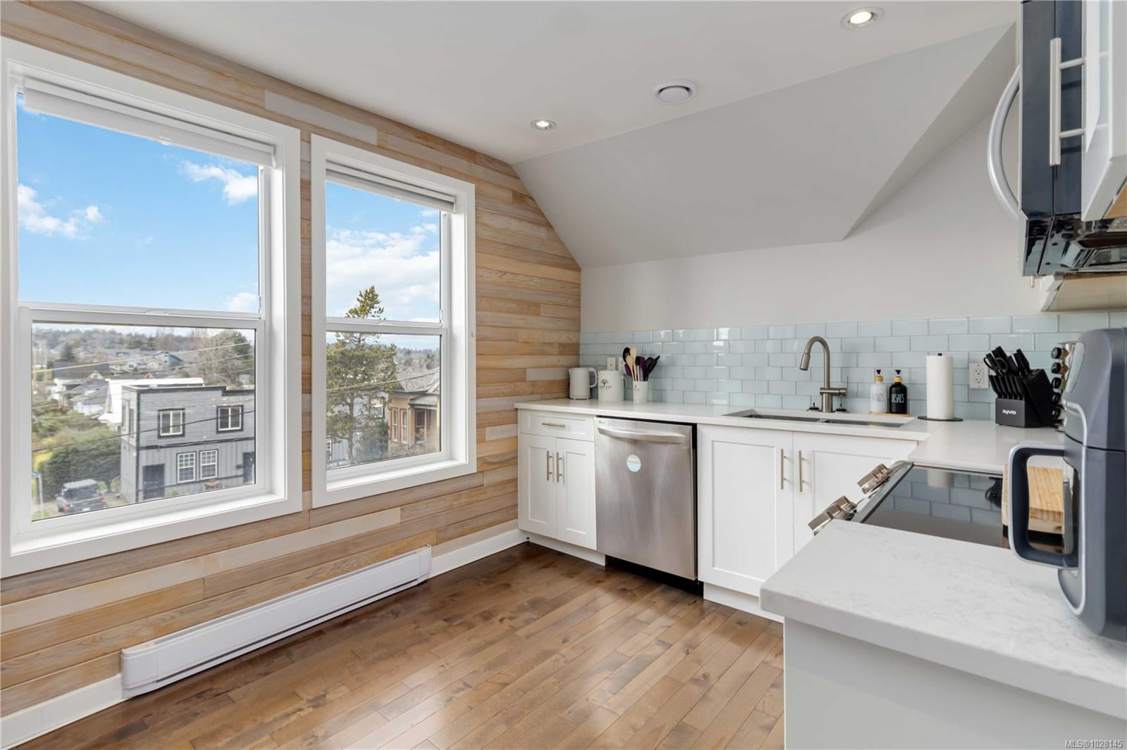 A rare offering in the heart of Victoria West, this beautifully updated legal duplex combines classic character with modern comfort in one of the city's most vibrant neighbourhoods. With 6 bedrooms, 3 bathrooms, and a flexible layout, this is the kind of property that opens the door to many possibilities, whether you're looking for a home with mortgage help, space for extended family, or a smart long-term investment. Originally built in 1912, the home retains the charm buyers love, including hardwood floors, high ceilings, large windows, and vintage details, while offering the upgrades that make daily life easy. Two kitchens, two laundry areas, private entrances, and separate living spaces create exceptional flexibility for the next owner. Inside, the home feels warm, functional, and inviting, with quartz countertops, stainless steel appliances, custom blinds, LED lighting, a gas fireplace with a marble surround, and on-demand hot water. Over the years, important improvements have included perimeter drains, updated plumbing and electrical systems, roof improvements, paint, newer appliances, and a cedar shed. Since purchasing in 2024, the current owners have continued to enhance the property with heat pumps in both units, solar panels for the lower unit, custom cabinetry, EV chargers, a pergola, patio cover, and exterior painting. Just steps to Vic West Village, parks, the waterfront, transit, and downtown, this home has character, income potential, and an unbeatable lifestyle location.