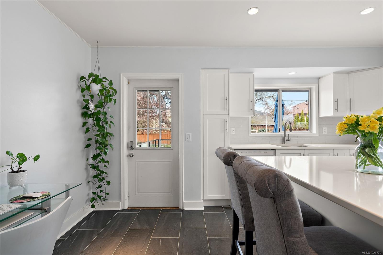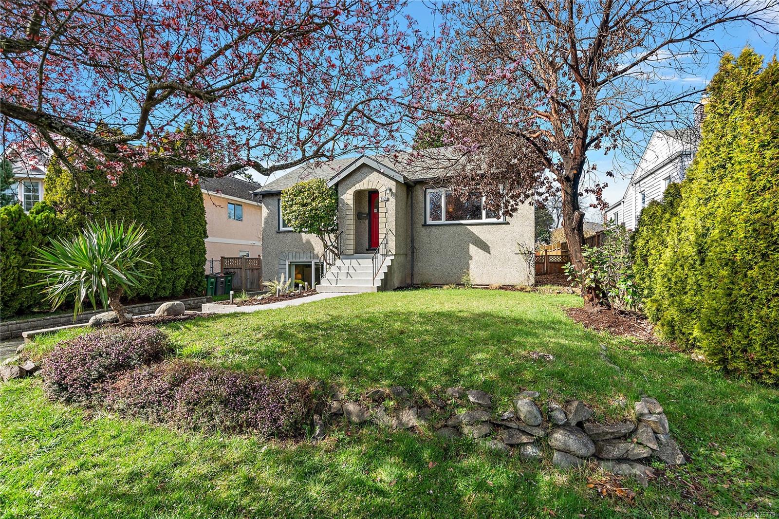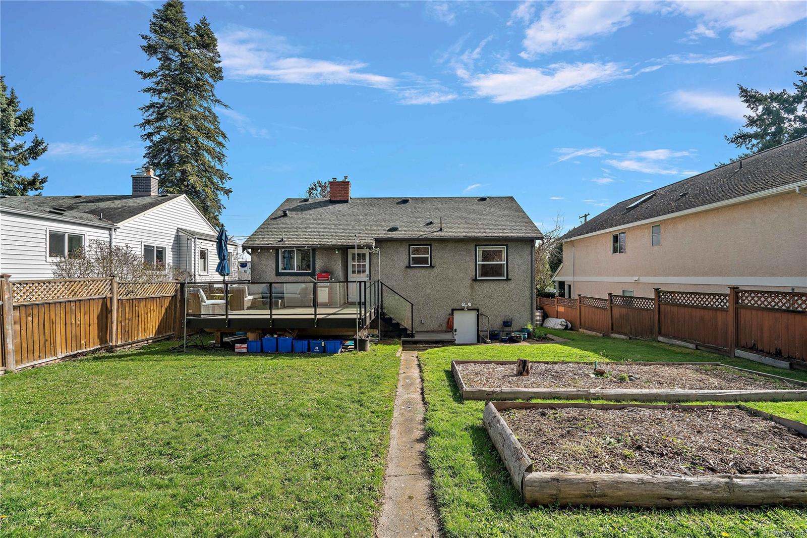Charming character home just five minutes from the beautiful Gorge Waterway. Bright and welcoming, the home offers a blend of character and modern updates, including a newly renovated kitchen and new laminate flooring throughout. The living room features a cozy gas fireplace, and large windows bring in abundant natural light. The flexible layout includes a bachelor suite, ideal as a mortgage helper. Step outside to the oversized new back deck overlooking a massive backyard with space for gardening, entertaining, or relaxing. The roof is approximately 18 years old with a 25-year warranty, and the windows were replaced around the same time. Located close to parks, trails, schools, and amenities, this home offers comfort and convenience in a great neighbourhood.