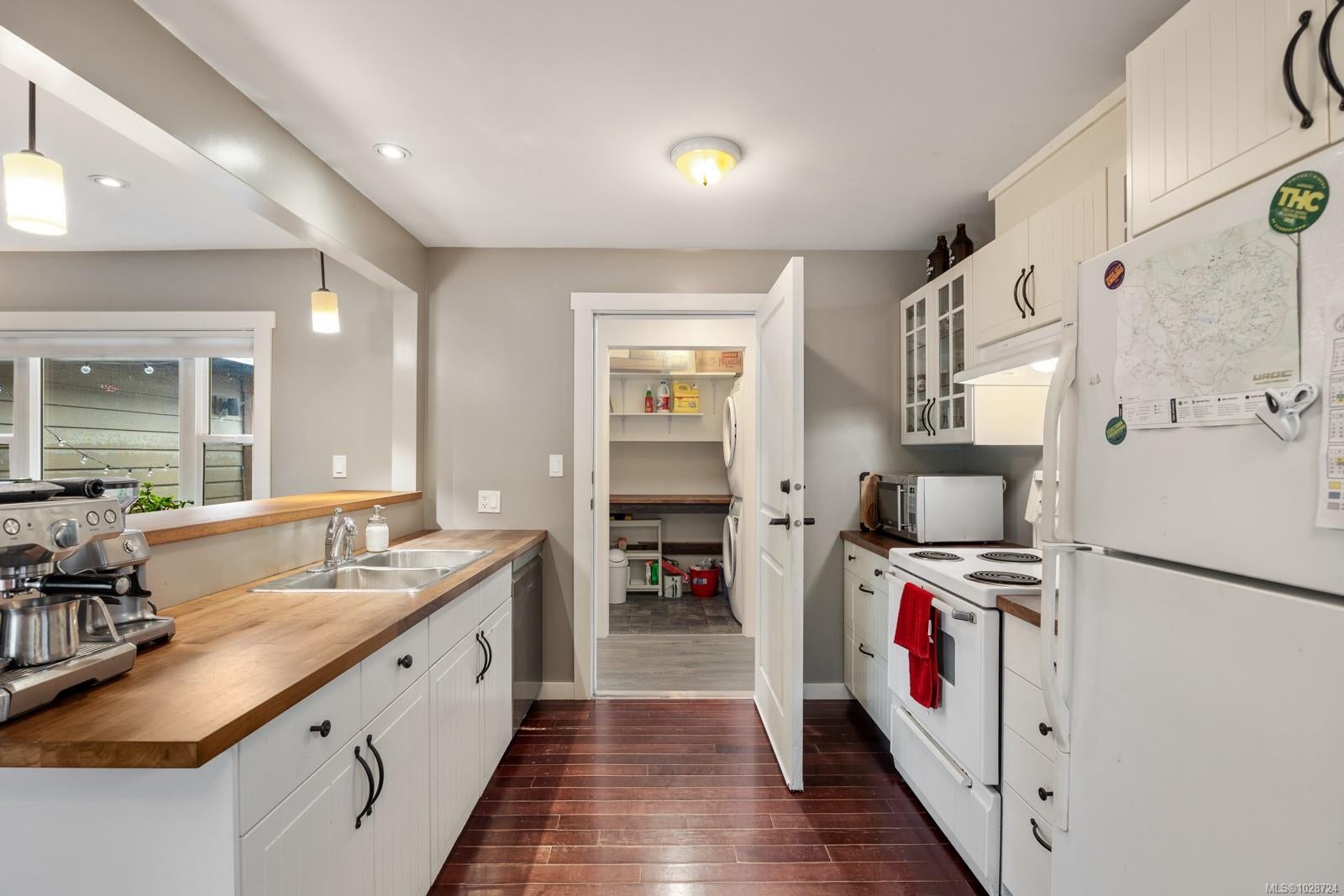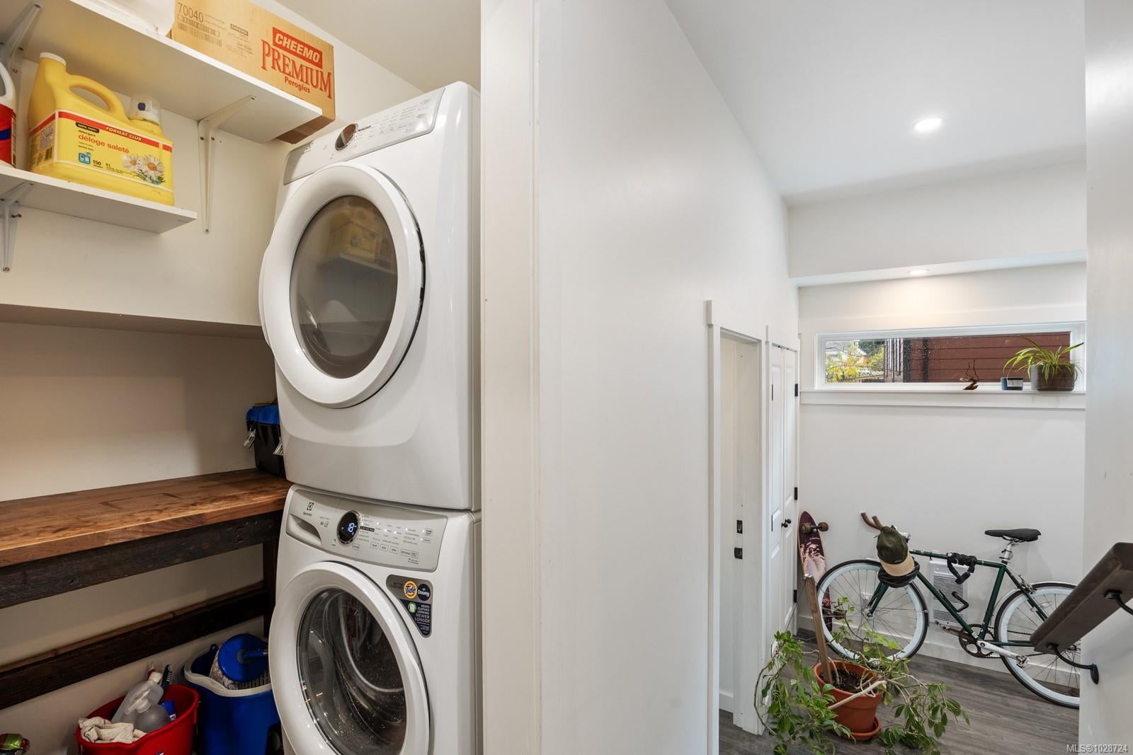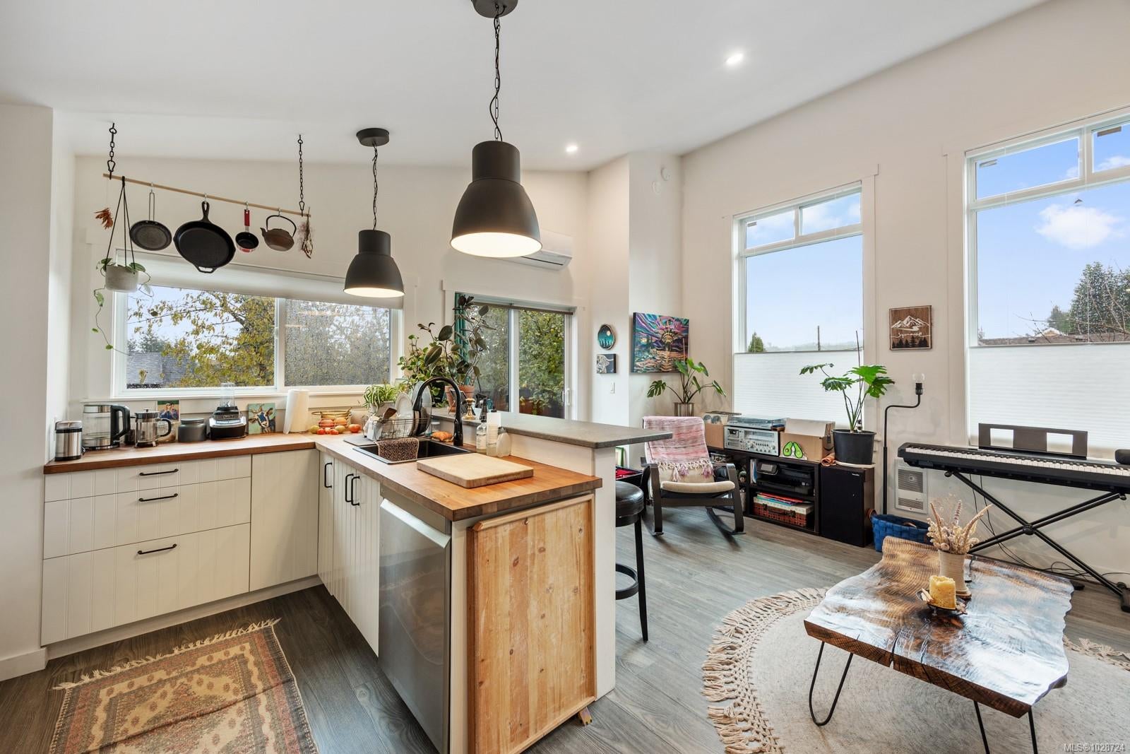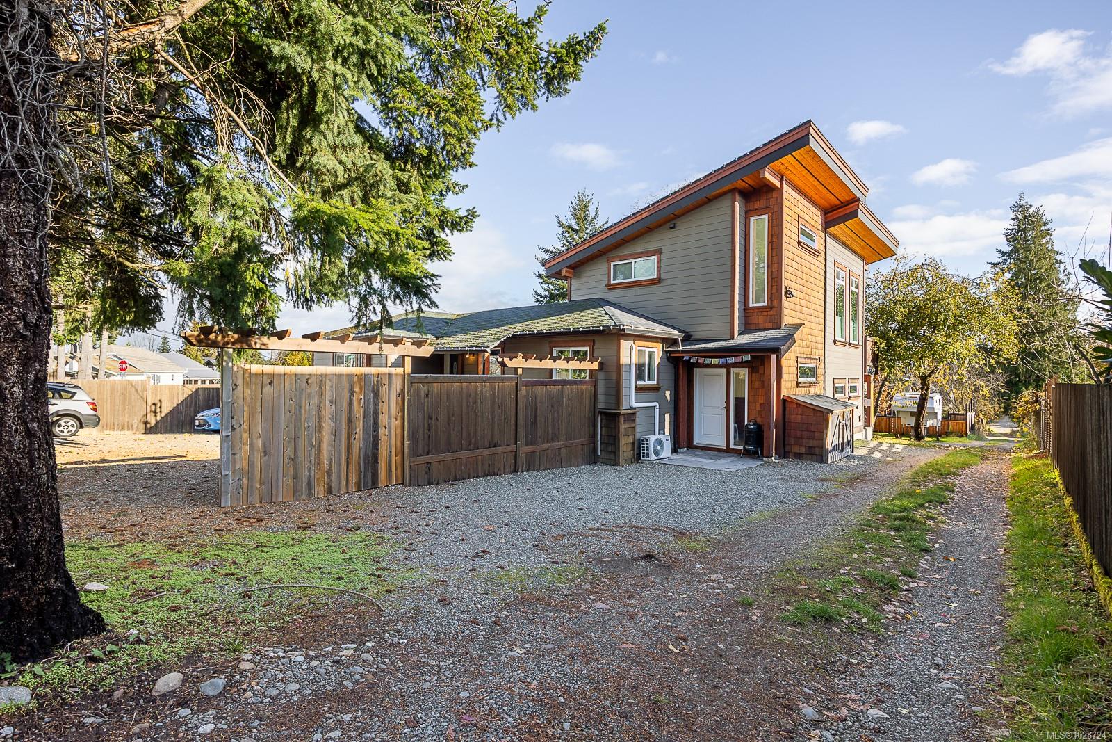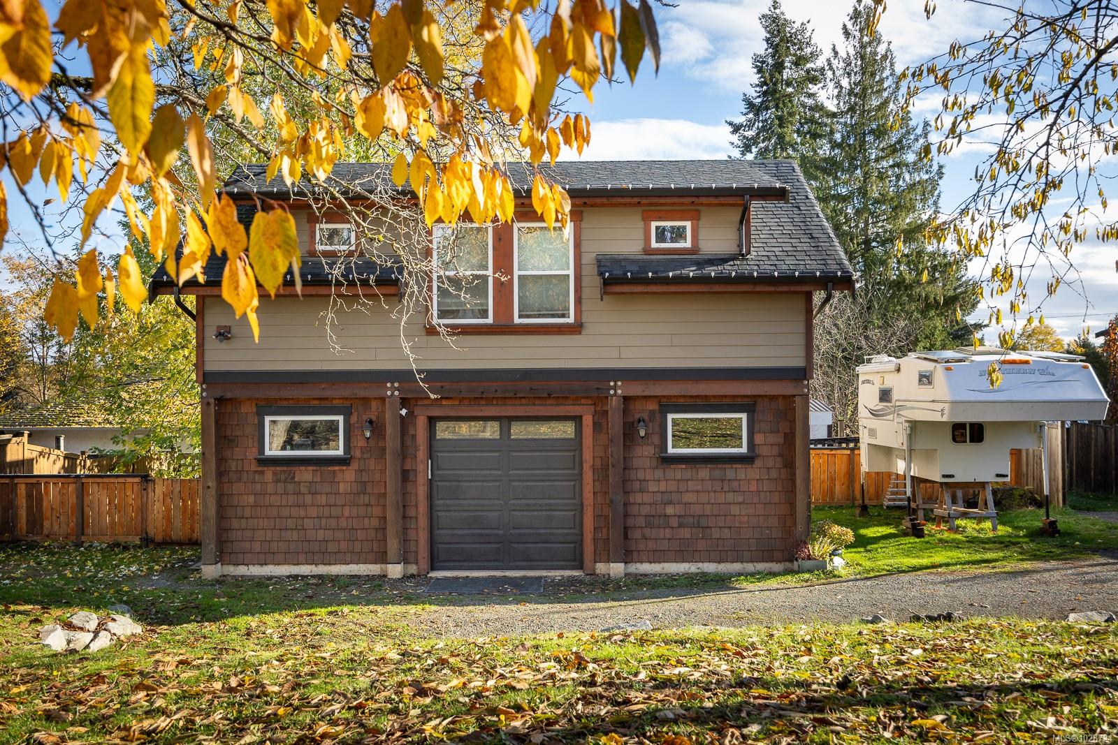Ideally located for a walkable, connected lifestyle, this exceptional property sits just steps from the Cumberland Village core and world-class trail networks. Designed for versatility, it is a rare find for investors, multi-generational families, or anyone seeking a home that pays for itself. The main residence blends comfort with modern adaptability. It features two bedrooms plus a den, a full bath with a deep soaker tub, a seamless 2019 addition with a bright one-bedroom in-law suite, and a separate studio space. The addition has vaulted ceilings and mountain views, creating an airy and inviting feel. Keep the in-law suite separate for revenue, or easily open it up to create an expansive four-bedroom family home. Updates include a new hot water tank (2024), new washer/dryer (2025), and a spray-foam insulated crawl space. A huge value-add is the custom 2017 Carriage House. This legal, separately metered residence sits above a spacious garage and boasts vaulted ceilings, a full kitchen, custom wood detailing, and even an outdoor shower. With its own separate access, it offers additional rental potential or a guest retreat. Set on a private 0.3-acre lot with by mature fruit trees, the property has West Coast character with Hardie siding, reclaimed cedar accents, and striking black details. With ample parking for your RV or boat, this is the perfect basecamp for adventure. Bring your toys!