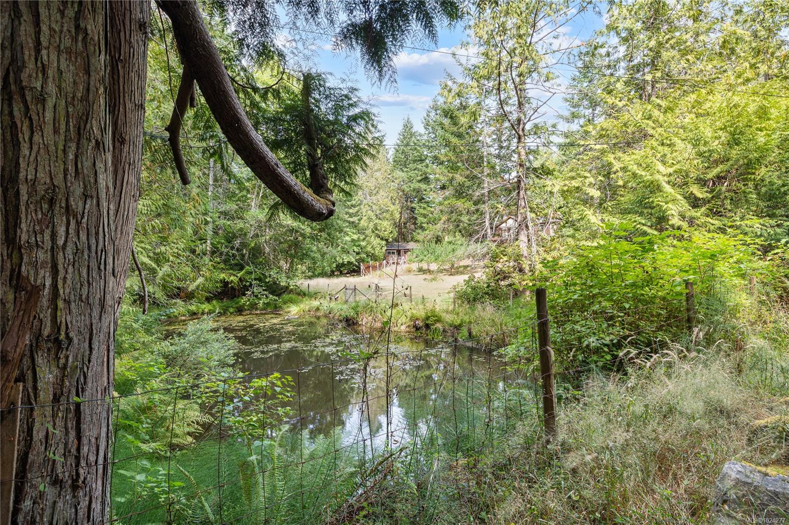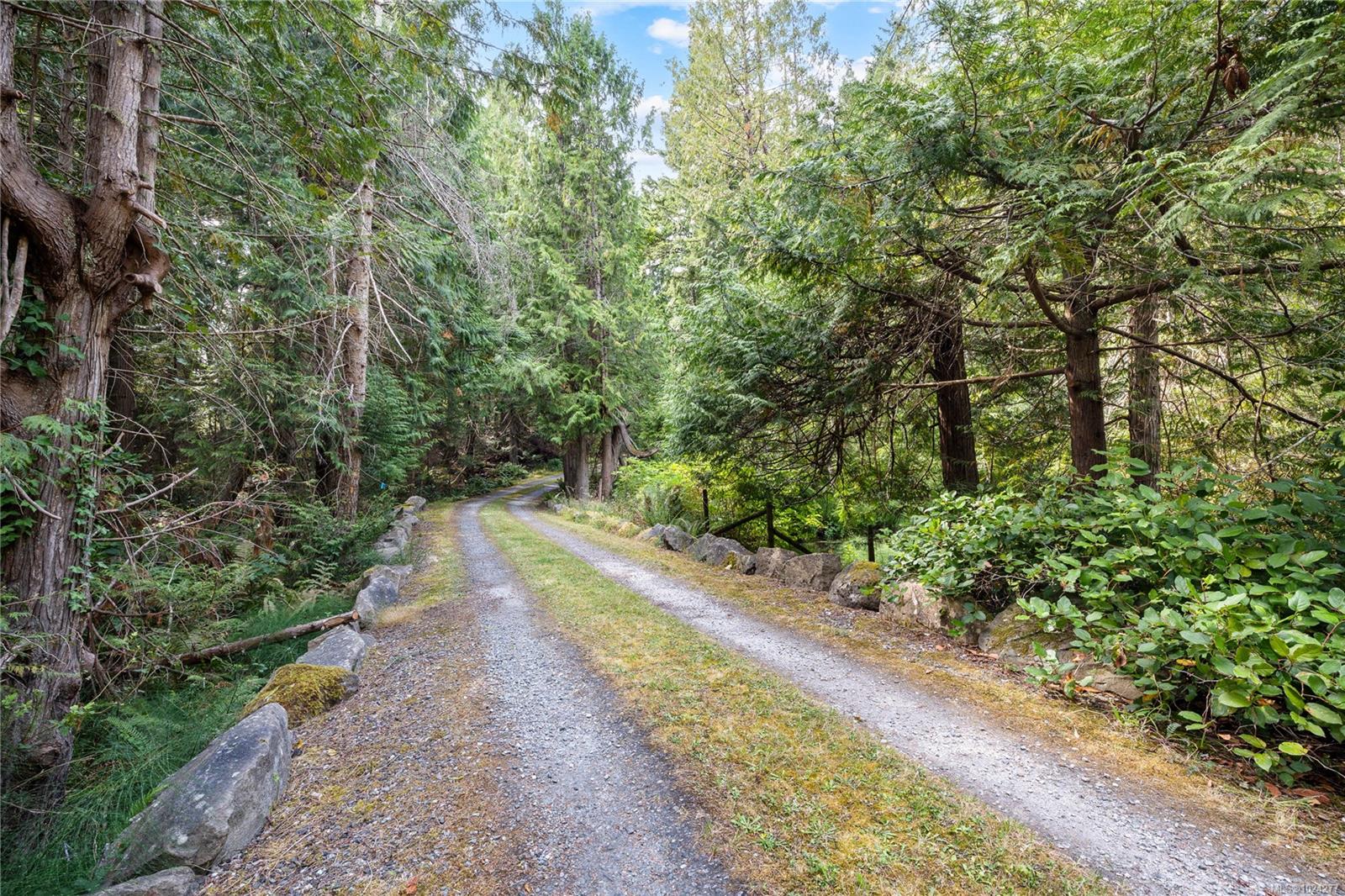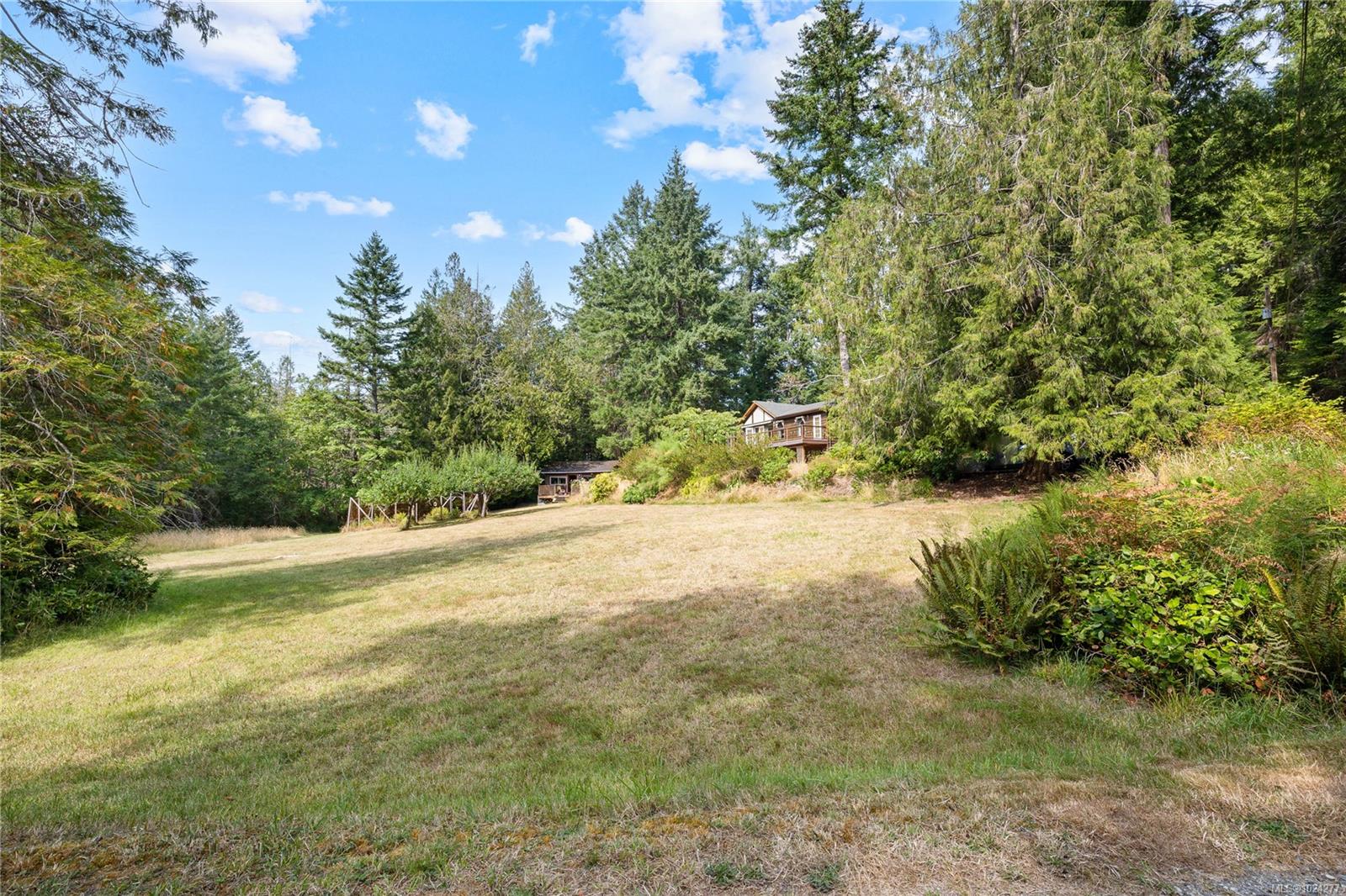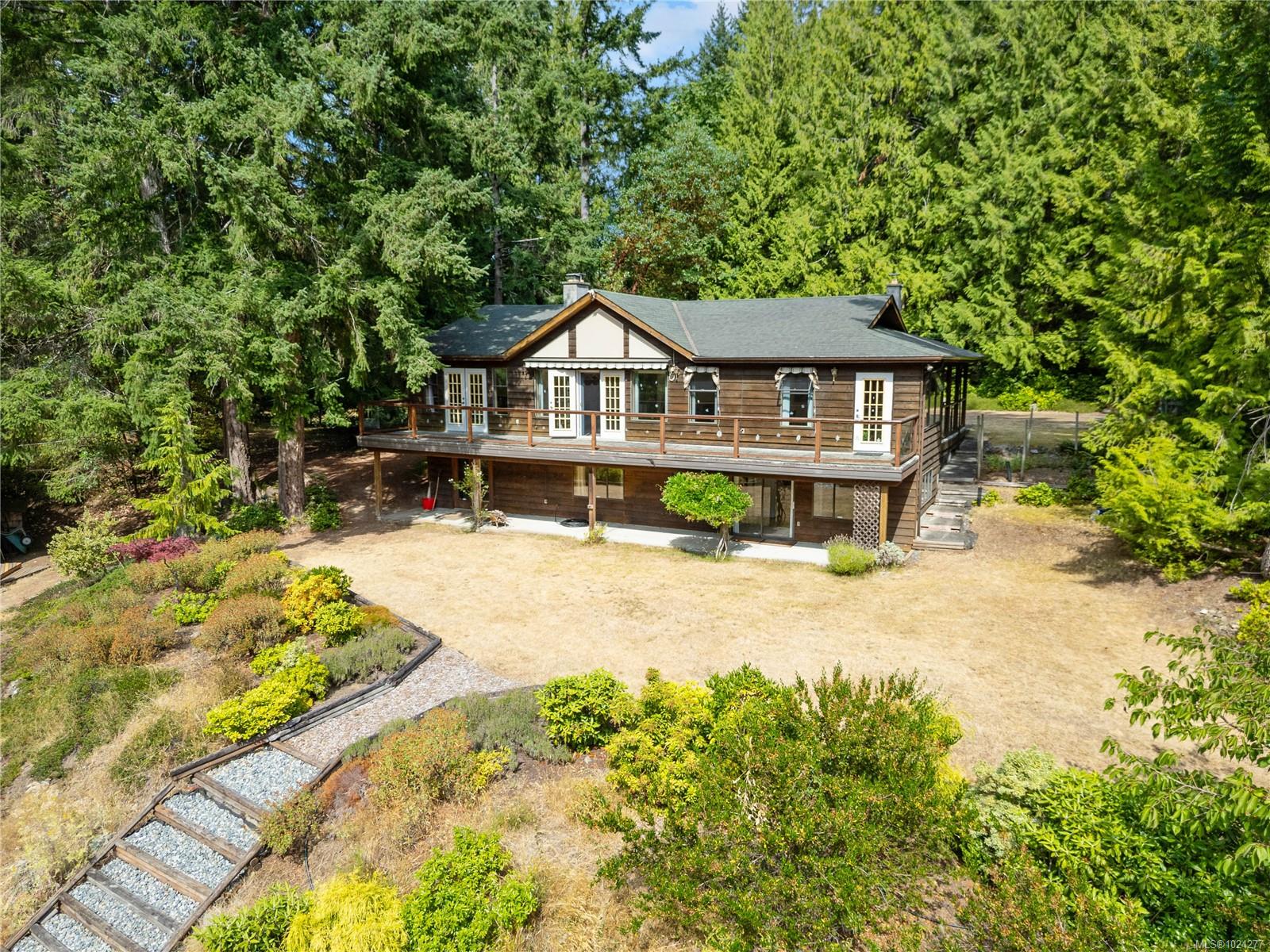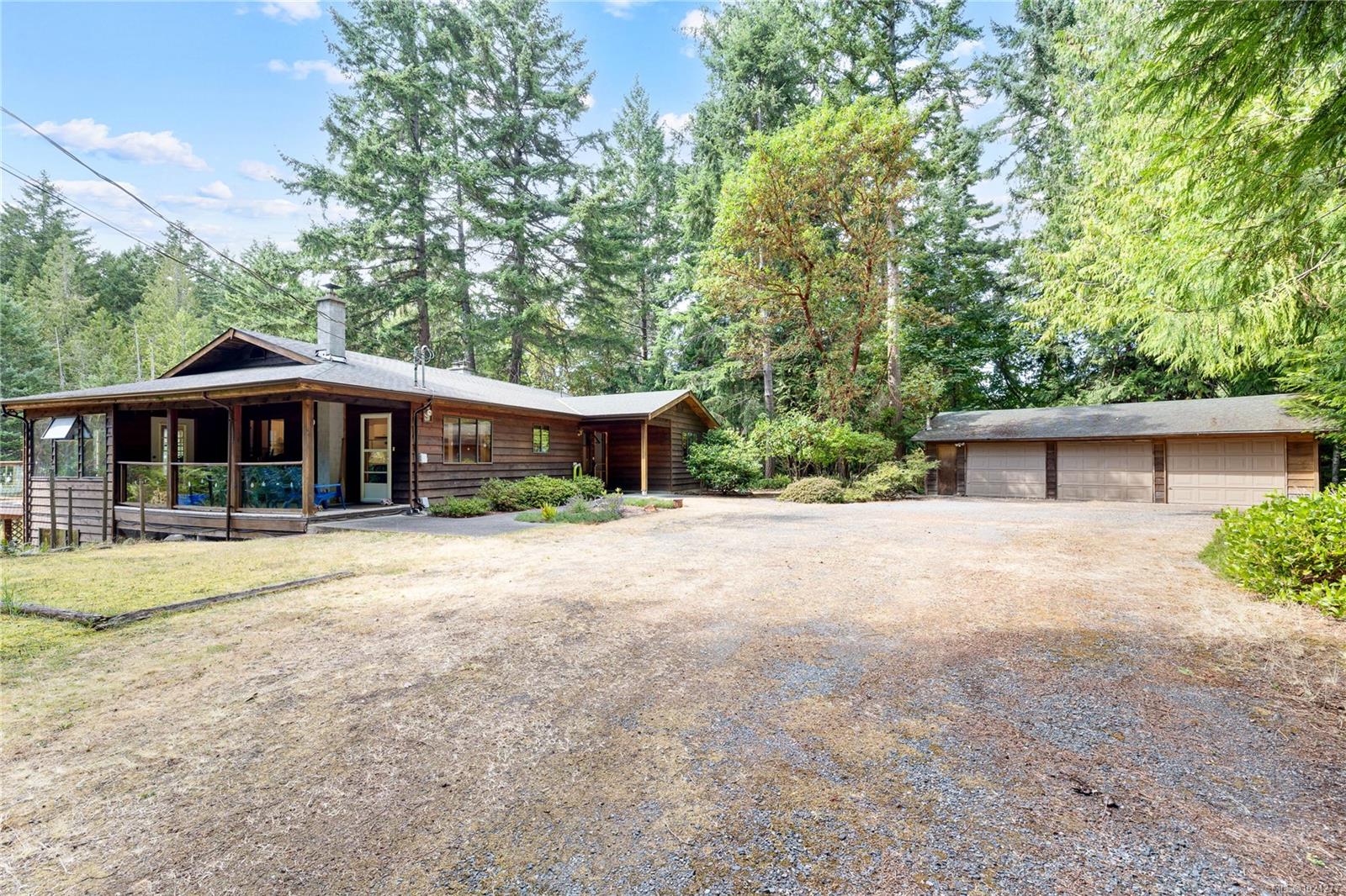 Your own secluded island sanctuary offered for the first time on the market. This outstanding estate is nestled on nearly 10 acres of sun-drenched, private land, with nearby shoreline access via the scenic Jack Foster Trail bordering the property. The well maintained, thoughtfully designed home harmonizes beautifully with its natural surroundings, offering efficient main-level living and stunning views over a large pond, lush perennial gardens, and abundant fruit trees. West Coast charm shines throughout with wood accents, vaulted ceilings, and a cozy fireplace, while the lower level provides a welcoming guest area. Relax and unwind on sun decks and tranquil patio sitting areas, or retreat to the charming two-level substantial guest cottage, with its own private location. A separate studio offers the perfect space for creative pursuits or a quiet workspace and there is a triple car garage. Serenity, peace and quiet in a secluded natural setting close to the beach equals the perfect island haven.