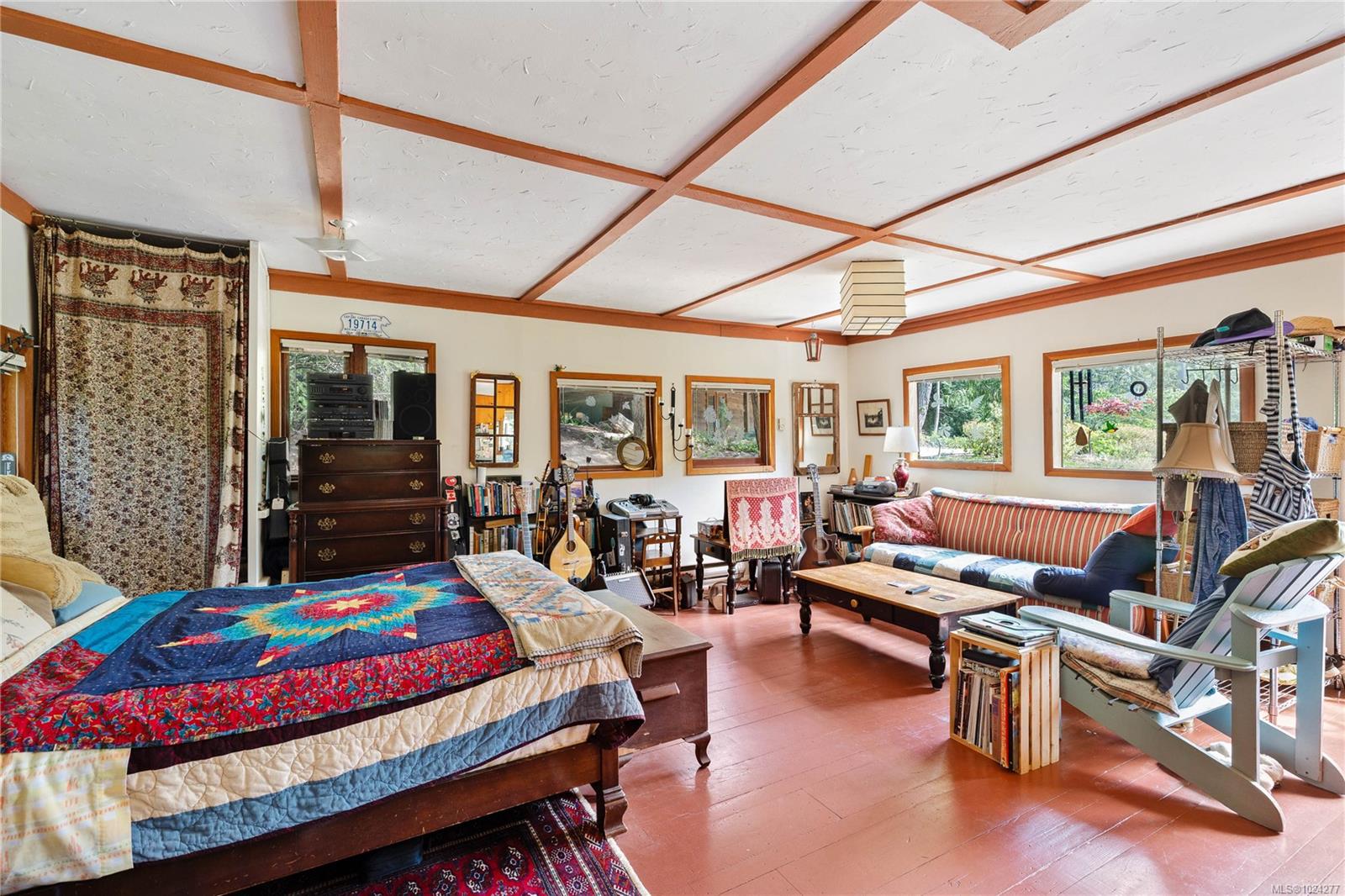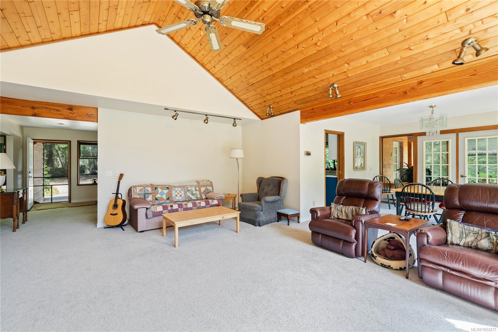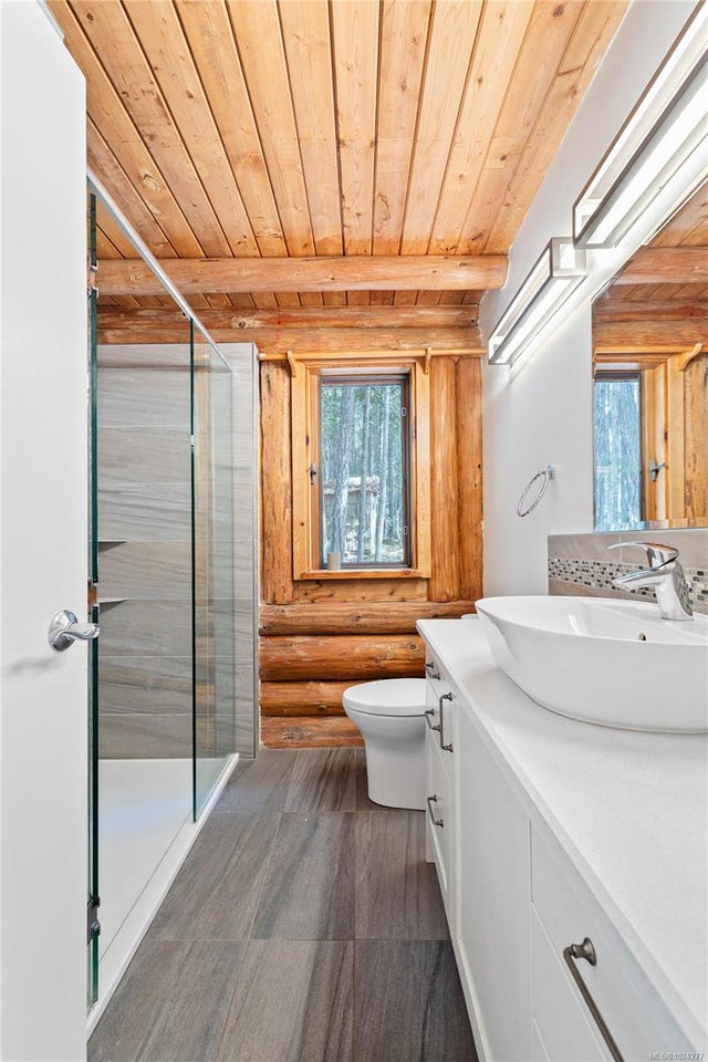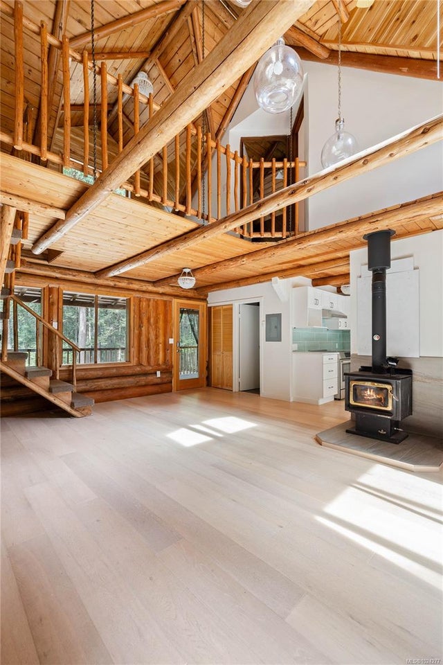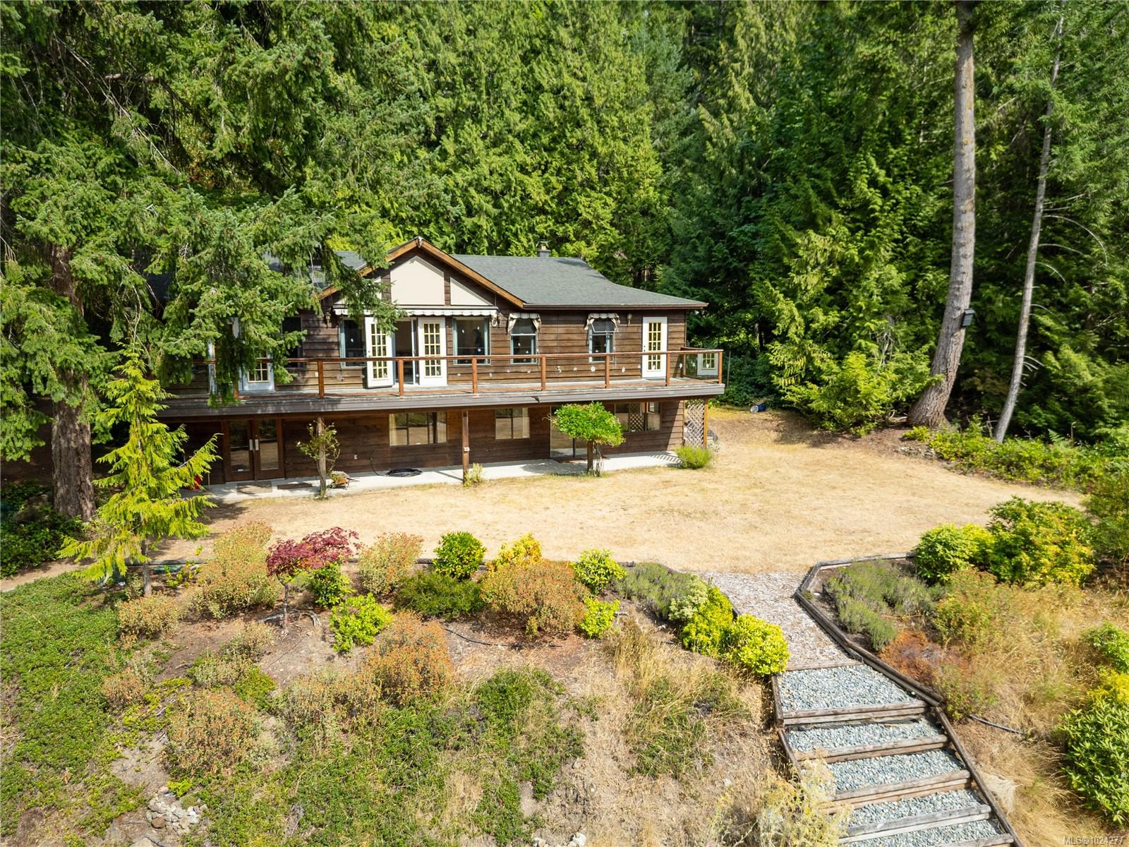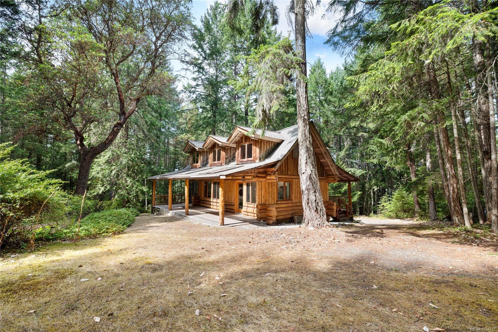 Your own secluded island sanctuary offered for the first time on the market. This outstanding estate is nestled on nearly 10 acres of sun-drenched, private land, with nearby shoreline access via the scenic Jack Foster Trail bordering the property. The well maintained, thoughtfully designed home harmonizes beautifully with its natural surroundings, offering efficient main-level living and stunning views over a large pond, lush perennial gardens, and abundant fruit trees. West Coast charm shines throughout with wood accents, vaulted ceilings, and a cozy fireplace, while the lower level provides a welcoming guest area. Relax and unwind on sun decks and tranquil patio sitting areas, or retreat to the charming two-level substantial guest cottage, with its own private location. A separate studio offers the perfect space for creative pursuits or a quiet workspace and there is a triple car garage. Serenity, peace and quiet in a secluded natural setting close to the beach equals the perfect island haven.