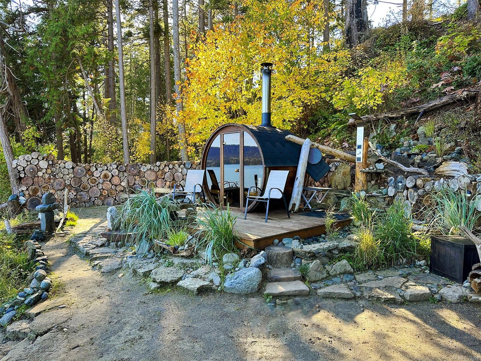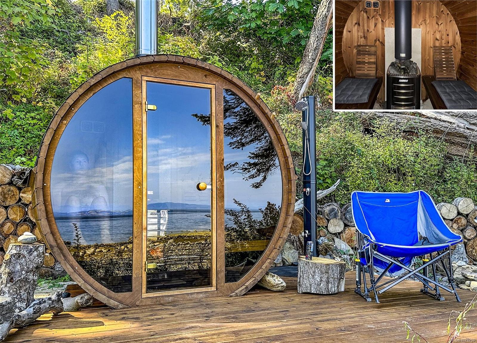 Stunning Denman Island oceanfront estate + income powerhouse! Discover the perfect blend of luxury living and smart investment in this architect-designed home set on 2 beautifully landscaped acres with 200 feet of pristine waterfront. The principal residence impresses with soaring 25 foot vaulted celings, an expansive gourmet kitchen with high end appliances and finishes, skylights that flood the space with natural light, and breathtaking ocean views framed by large windows. The spacious 3 bedroom, 3 bathroom layout offers both comfort and elegance. A separate guest building features three luxurious suites, each with private entry, full kitchen, ocean views, cozy fireplace, in floor heating, private deck, garden, and its own hot tub and cold plunge pool - ideal for guest privacy and relaxation. Wellness amenities include, romantic Scandinavian sauna on the beach, a medical grade sauna, and a massage studio - creating a complete resort experience. The property also includes EV charging, a caretakers cottage, and meticulously maintained grounds that reflect true pride of ownership. This turnkey, award winning spa resort generates over $340,000 per year and is easy to operate - offering not just a home but a sustainable lifestyle business. Whether you're looking to live full time in a coastal paradise or operate a successful retreat, this property offers rare flexibility and beauty. Priced well below formal appraisals, this is a one of a kind opportunity to own a world class oceanfront estate on Denman Island.