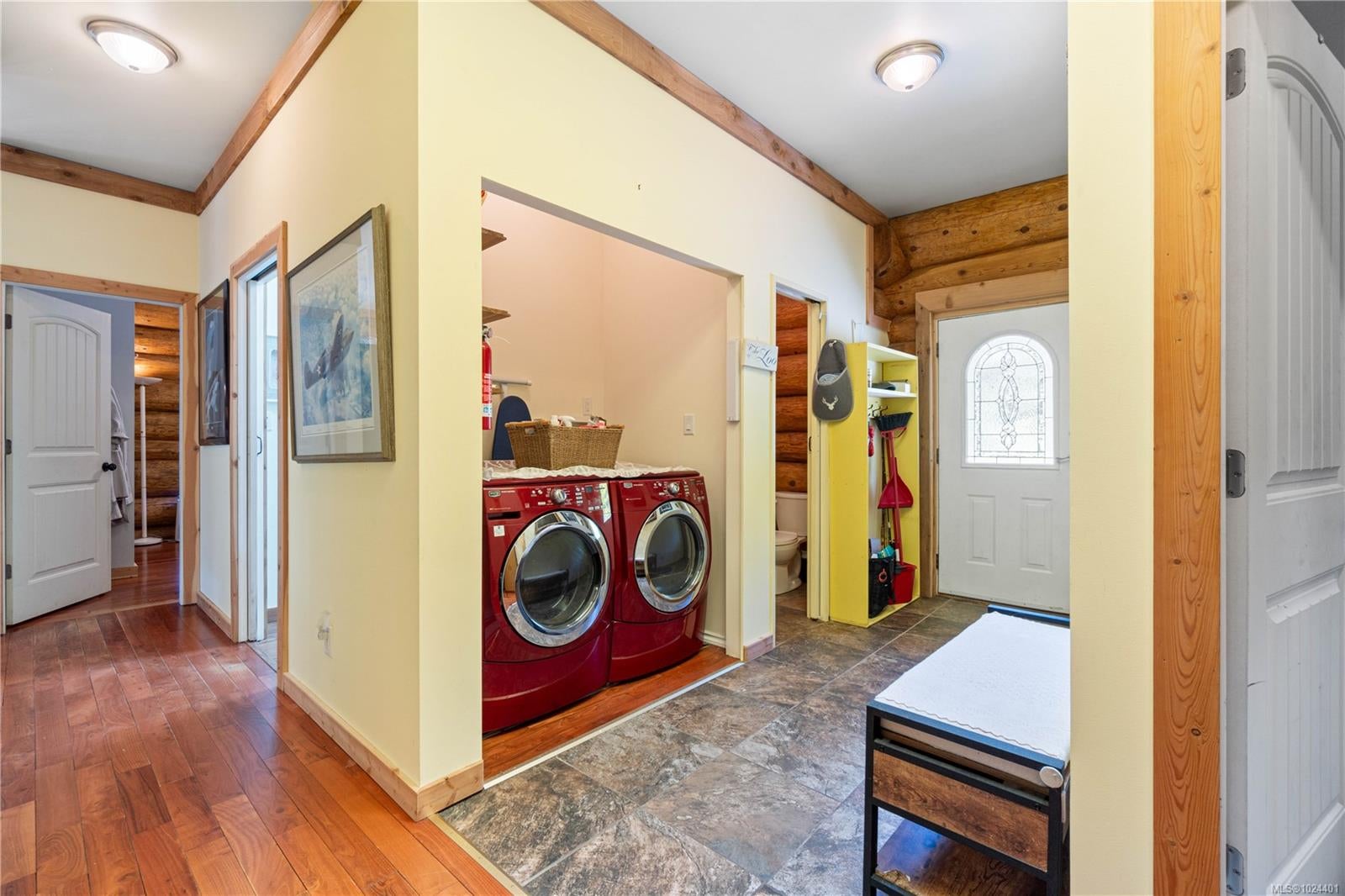 Don’t miss your chance at this sharply priced property! Lakefront 34 acre farm with two private homes in Cedar and direct access to Hemer Provincial Park & Morden Colliery Trail. The homes have separate addresses located at opposite ends of the property, providing complete privacy. On the Rugg Rd side, a 2-bed + den, 1.5-bath log home built with quality craftsmanship features hardwood floors, an open-plan living area and a large deck overlooking the lake. A private dock provides easy access for paddling, fishing, or simply relaxing by the water. Across the property on the Hemer Rd side, a 4-bed, 2-bath home with a self-contained suite is surrounded by fenced pasture, irrigated gardens, mature forest and fruit trees, directly adjacent to the provincial park, perfect for hiking, riding, or exploring nature. Formerly an equestrian property, the riding ring and stalls could be revived to be suitable for horses. The Hemer Rd side also includes a barn, large workshop, implement shed, geodome, and RV hookups with power and water, good well, pond, seasonal stream and upgraded power throughout. The land combines open pasture and forested areas, creating versatile spaces for gardening, raising animals, or enjoying outdoor recreation year-round. Located at the end of a dead-end road beside a 300-acre park, with produce gardens, heritage apples and a farm stand right at the park entrance with farm status for reduced taxes. Plus the property provides options for rental income, self-sustainable living, or creating a private estate with ample space for family, friends, or guests and is perfect for two families! This is a rare opportunity to own a truly private, versatile and magical estate on Vancouver Island, offering endless possibilities for lifestyle, farming, recreation, and peaceful country living, just minutes from Nanaimo by foot, horse, bike, or car.