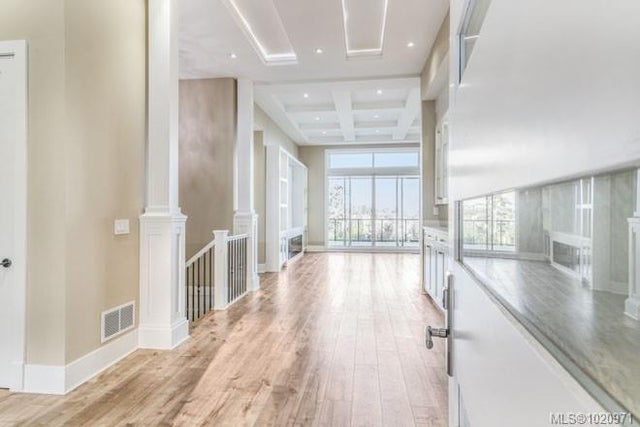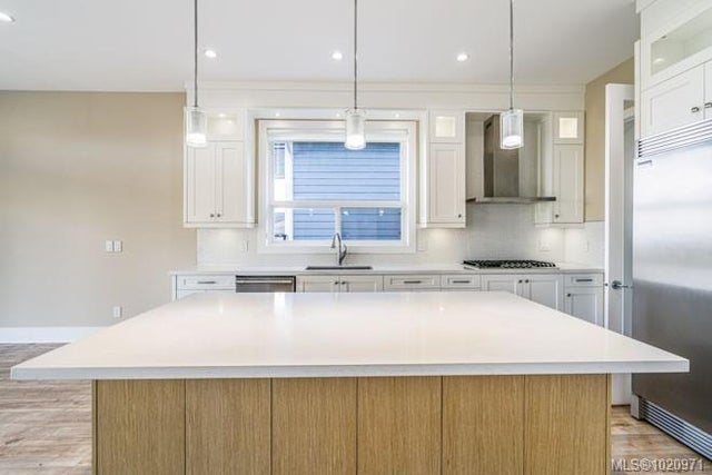 Enjoy sweeping ocean and mountain views from this new custom home in North Nanaimo. Offering 6 bedrooms and 5 bathrooms over 3 levels and approx. 3,995 sq. ft., this residence showcases quality construction, high-end finishes, and multiple oceanview decks.The main floor features a spacious foyer, bright great room with high ceilings, gas fireplace, and 10' sliding doors opening to a large, unobstructed oceanview deck. The open-concept layout flows into the dining area and gourmet kitchen with custom cabinetry, granite counters, center island with bar seating, plus a full second spice kitchen. The primary bedroom has deck access, a luxurious ensuite with soaker tub, 4' shower, double sinks, and a generous walk-in closet. A den/office, mudroom, guest bath, garage access, intercom, and security system complete this level. The middle level includes a high-ceiling family room, 3 bedrooms, 2 bathrooms, and expansive deck access (partially covered). The lower level offers a large 2-bedroom suite. All measurements are approximate, to verify if important.