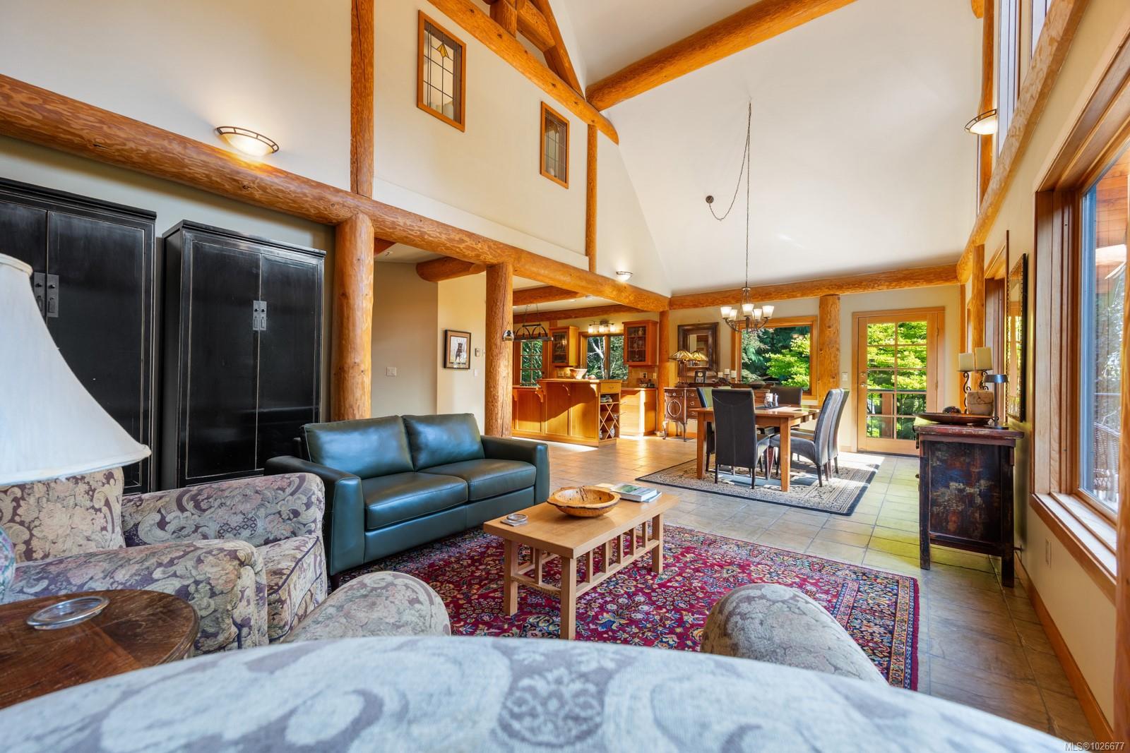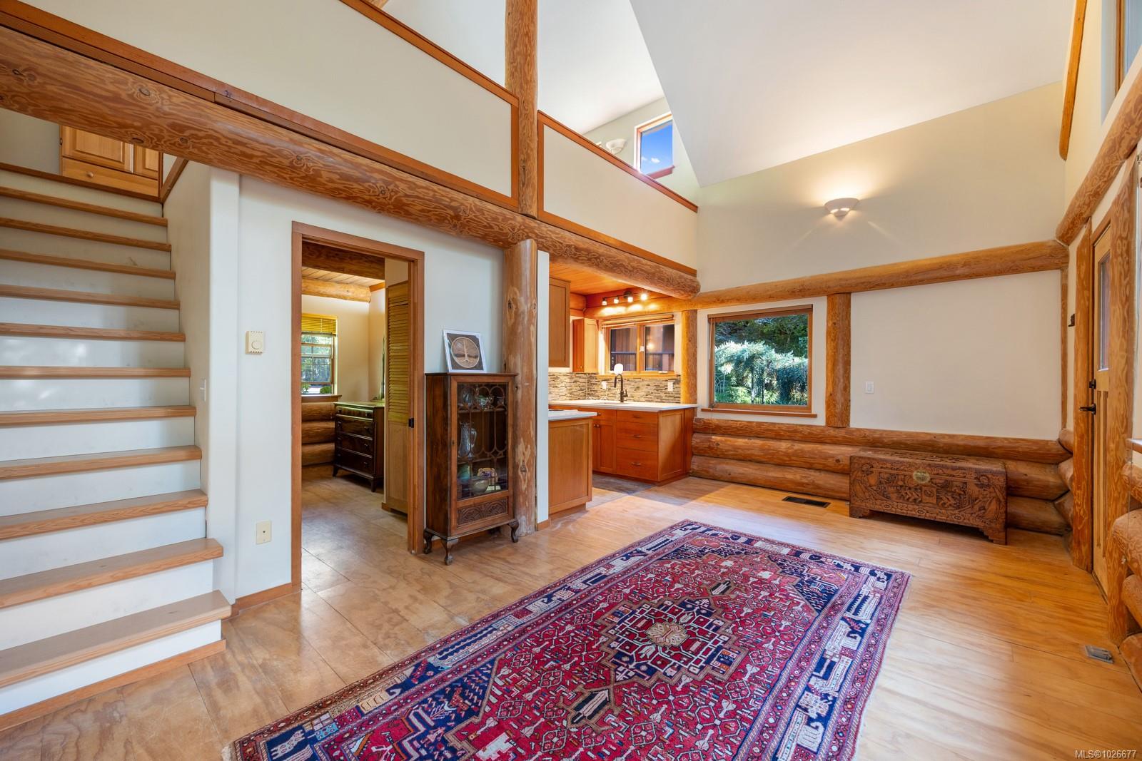 A Timeless West Coast Estate | 900 Spider Lake Rd Set on nearly eight acres of private, park-like grounds, this extraordinary estate captures the essence of refined West Coast living. Perfectly positioned between the Comox Valley and Nanaimo, the property offers an exceptional blend of natural beauty, enduring craftsmanship, and complete privacy — a rare offering for those seeking space, serenity, and timeless design. At the heart of the estate is a one-of-a-kind post-and-beam residence, thoughtfully constructed using old-growth lumber that showcases the artistry and integrity of a bygone era. Exposed beams, custom cabinetry, rich wood trim, and warm flooring create a sense of authenticity and quiet luxury throughout. Vaulted ceilings soar above inviting living spaces, while expansive windows frame tranquil views of the surrounding landscape and let in natural light. Every space feels intentional — welcoming, grounded, and connected to nature. Lovingly maintained by the original owners, the grounds unfold like a private retreat. Mature trees, curated gardens, and open lawns provide year-round beauty, with outdoor spaces designed for both entertaining and peaceful reflection. A striking 20-foot-deep swimming pond becomes the estate’s centrepiece — a magical setting for summer days, family gatherings, and unforgettable moments. Complementing the main residence is a beautifully updated guest cottage of over 600 square feet, offering comfort and flexibility for visiting family, extended stays, or potential income opportunities. A substantial 1,000 square foot three-bay workshop adds practicality and versatility — ideal for hobbies, creative pursuits, storage, or home-based enterprise. An RV service hookup with electrical and waste disposal further enhances the property’s functionality. 900 Spider Lake Rd invites you to slow down, breathe deeper, and experience the true luxury of space, freedom, and connection to the land.