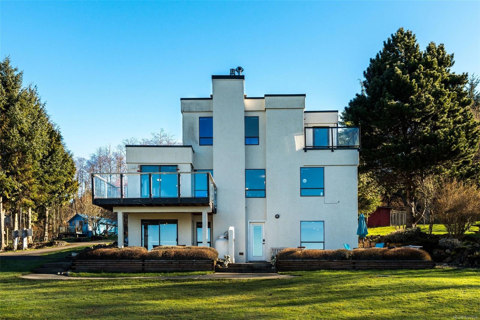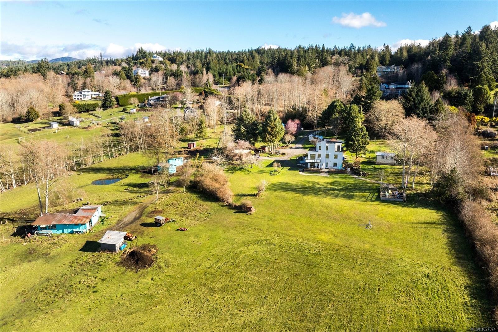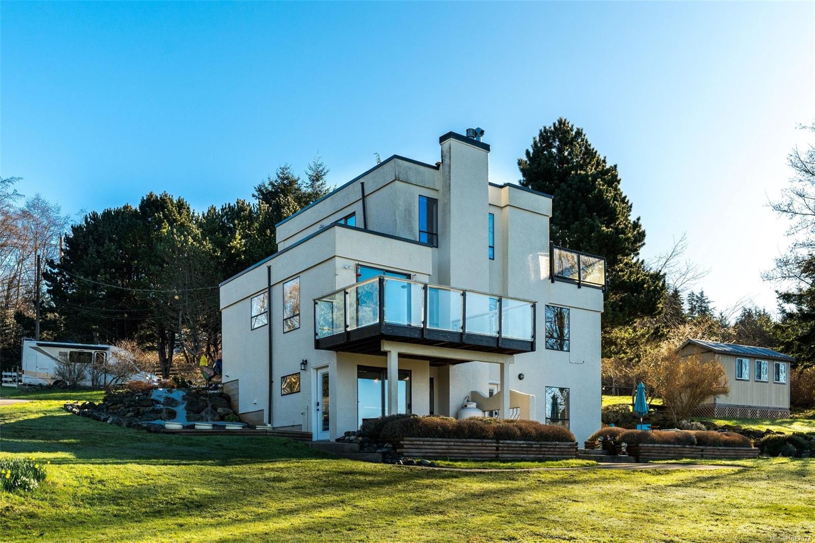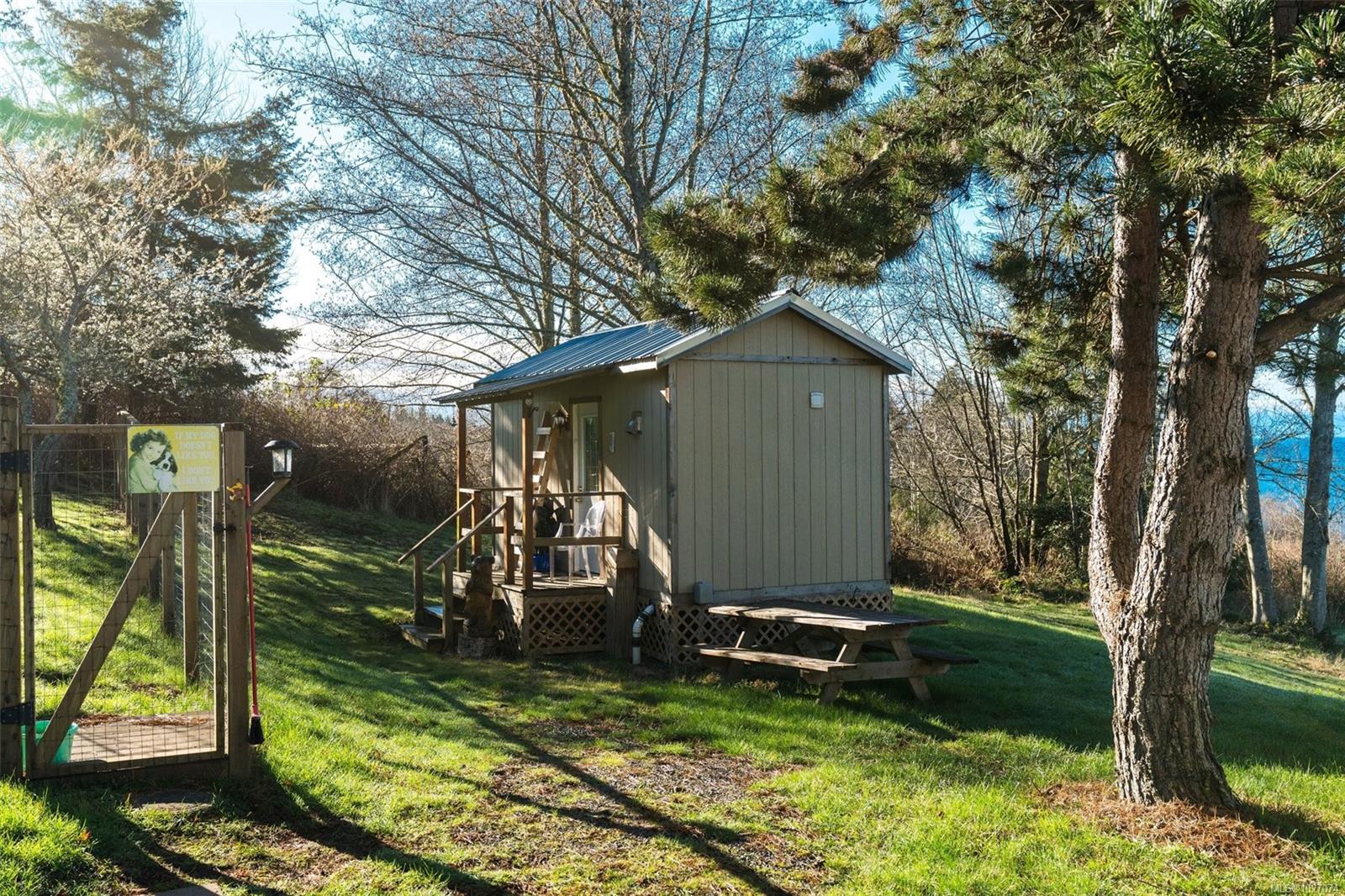 Wide open spaces, ocean views, brilliant sunsets and spectacular starlit nights - 4537 Otter Point has it all. A unique, masterfully crafted property: 10 acres of gently-sloping southwest facing land affords views over Gordon's Beach, the Strait of Juan de Fuca, and the Olympic Mountains. A 1991-built custom art-deco revival home is the centrepiece: 2300 sq ft on three levels: two self-contained vacation units below, two bedrooms on the main, and a stunning master suite upstairs, with rooftop decks, walk in closet, and luxurious ensuite bath, including a door to a private rooftop outdoor shower. A charming century cottage and efficient tiny home offer additional accommodation or revenue potential. Previously operated as a successful B&B and hobby farm, there are also numerous outbuildings: barn, chicken coop, ocean-view fire pit, pump house, and more. Current farm-tax status for lower assessment and taxes. Note re rooms: lower, main, second = house; third = cottage; other=tiny house.