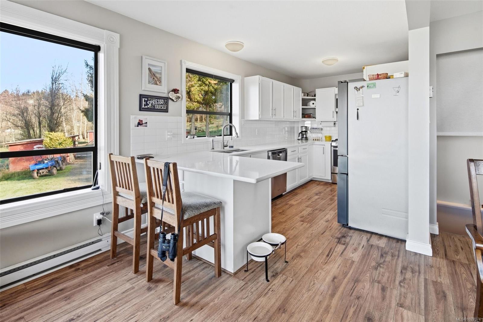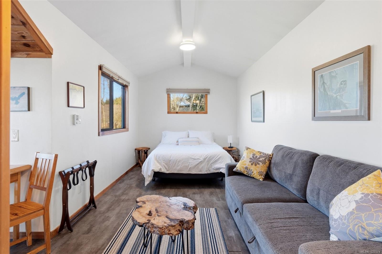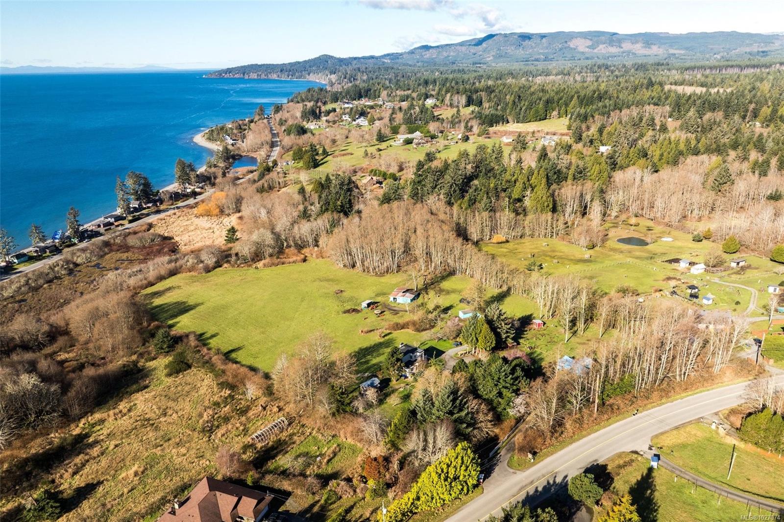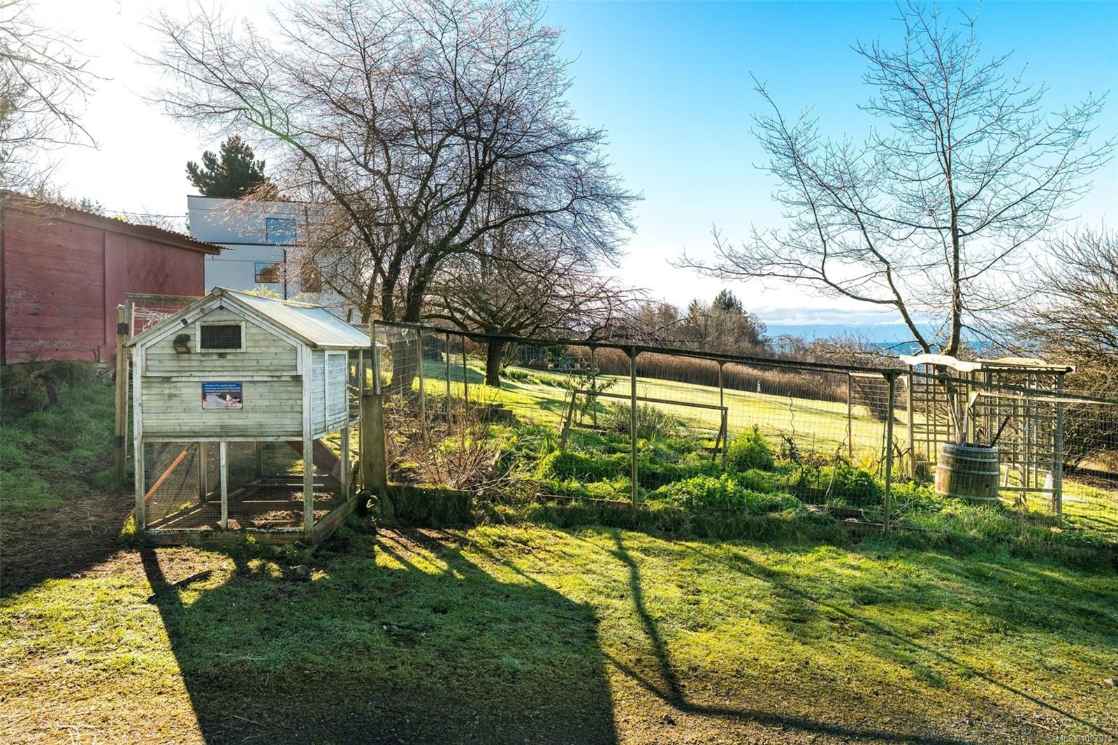 Wide open spaces, ocean views, brilliant sunsets and spectacular starlit nights - 4537 Otter Point has it all. A unique, masterfully crafted property: 10 acres of gently-sloping southwest facing land affords views over Gordon's Beach, the Strait of Juan de Fuca, and the Olympic Mountains. A 1991-built custom art-deco revival home is the centrepiece: 2300 sq ft on three levels: two self-contained vacation units below, two bedrooms on the main, and a stunning master suite upstairs, with rooftop decks, walk in closet, and luxurious ensuite bath, including a door to a private rooftop outdoor shower. A charming century cottage and efficient tiny home offer additional accommodation or revenue potential. Previously operated as a successful B&B and hobby farm, there are also numerous outbuildings: barn, chicken coop, ocean-view fire pit, pump house, and more. Current farm-tax status for lower assessment and taxes. Note re rooms: lower, main, second = house; third = cottage; other=tiny house.