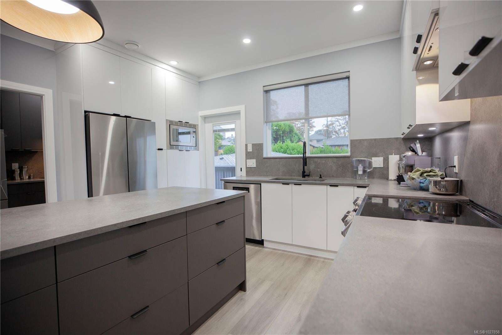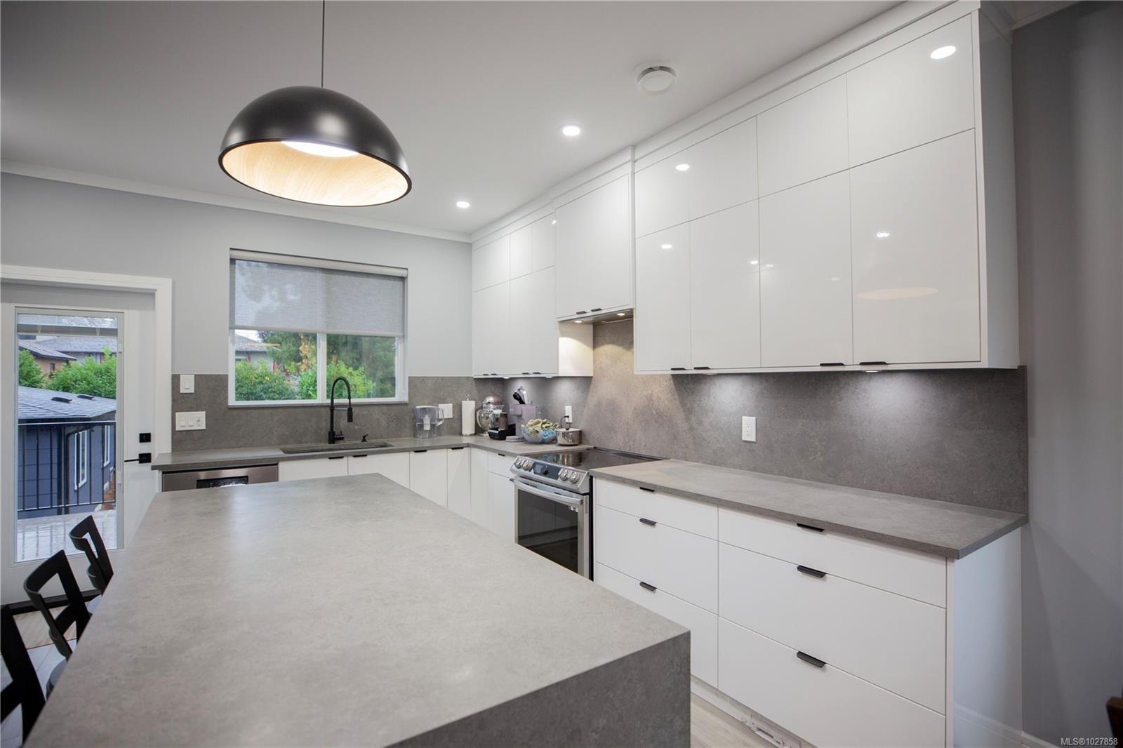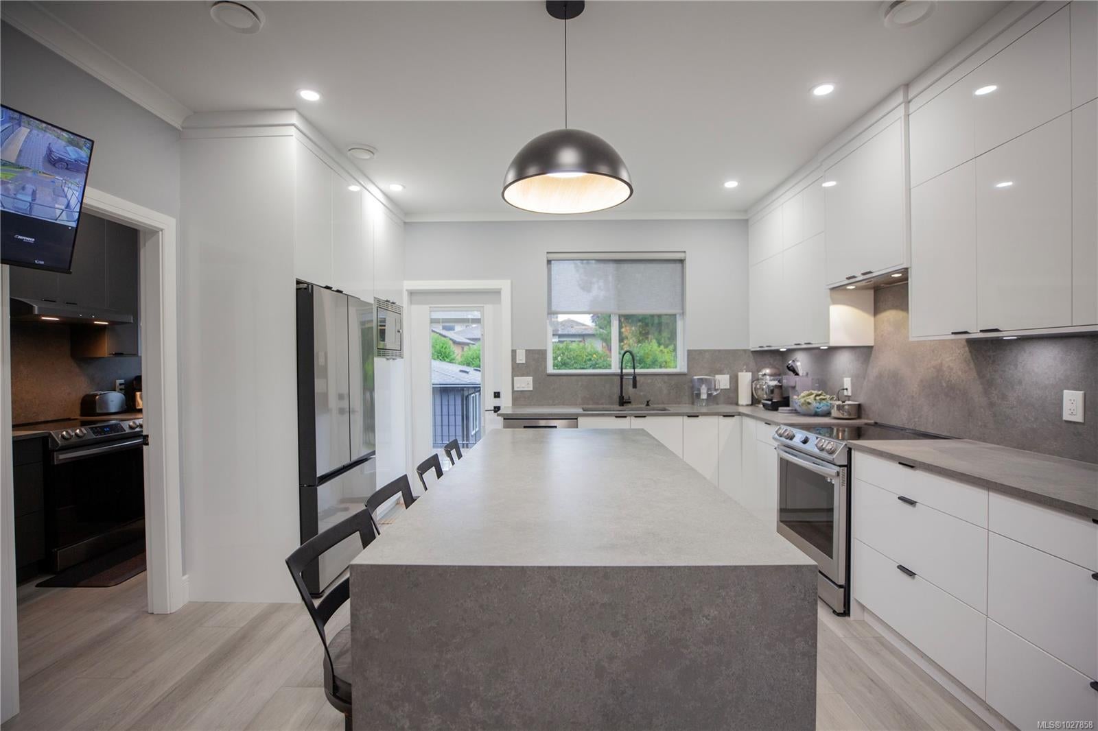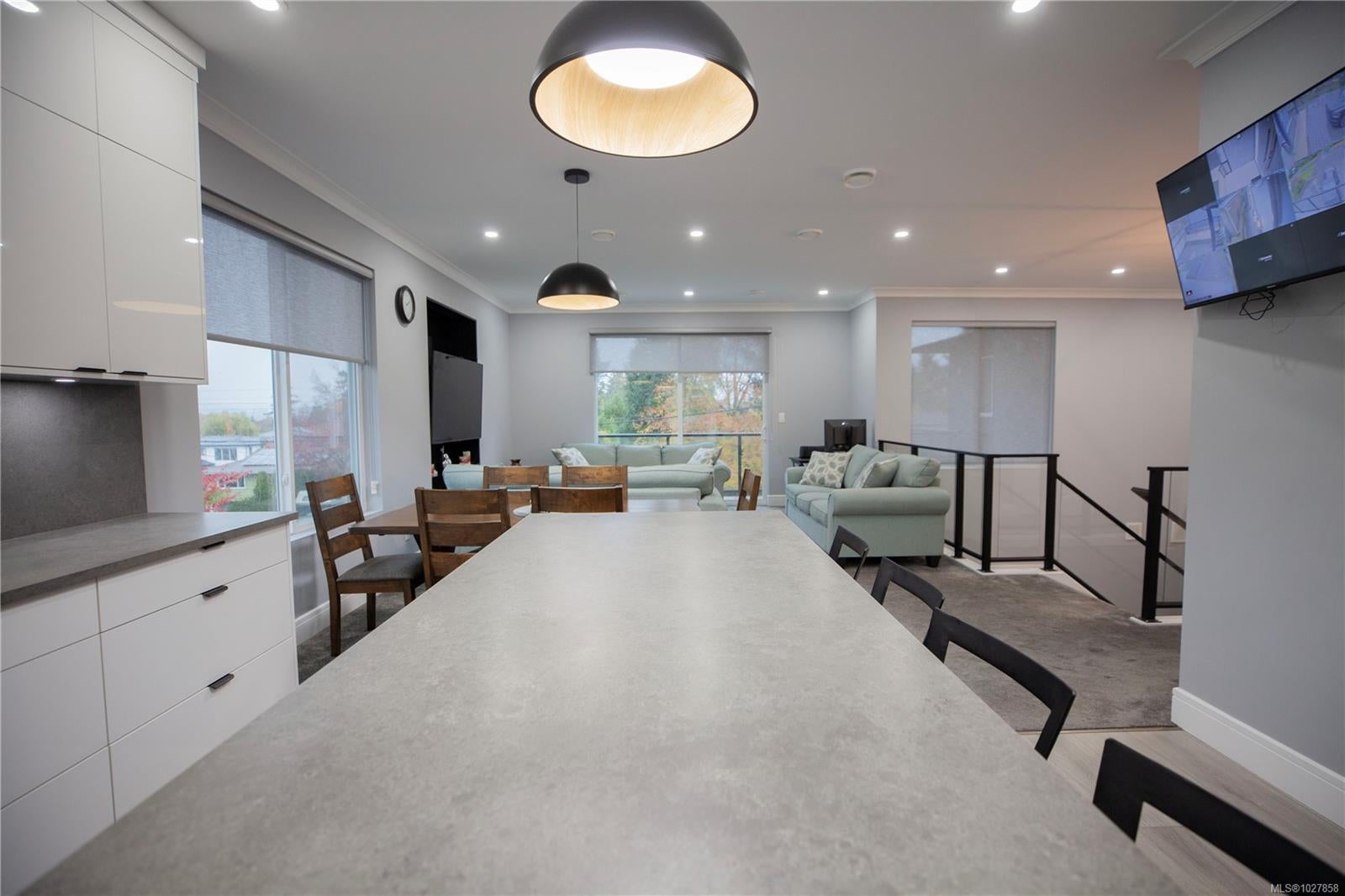 Stunning 2023 custom-built home in Saanich’s desirable Marigold area! This builder’s personal residence showcases quality craftsmanship and versatility throughout. The main home offers 5 beds, 6 baths, two laundry rooms, and a spacious rec/studio room with its own entrance and bathroom—ideal for extra income or home business. There’s also over 700 sqft of unfinished space ready to be converted into a 2nd legal suite (in transit area) or customized as a gym, studio, or media room. Thoughtfully designed with an elevator rough-in, front and rear decks for seamless indoor-outdoor living, and beautiful mountain views. Plus, a bright, level-entry 2-bed, 1-bath legal garden suite with separate laundry. 3 EV chargers installed. Prime location close to Vic General Hospital, schools, parks, and transit—offering luxury, flexibility, and convenience in one exceptional property!