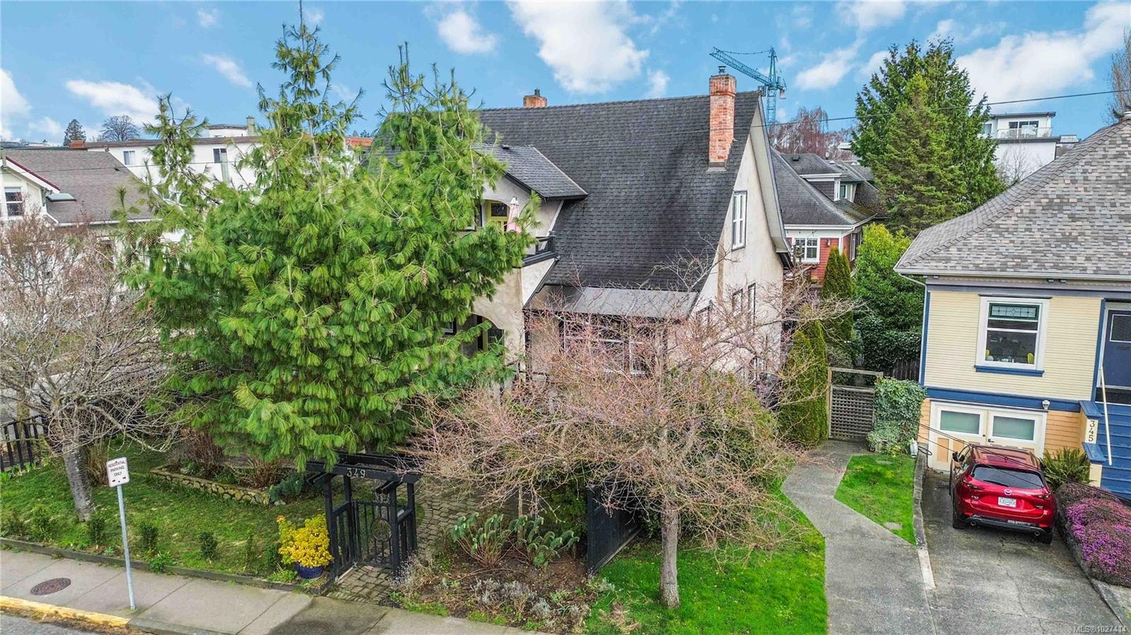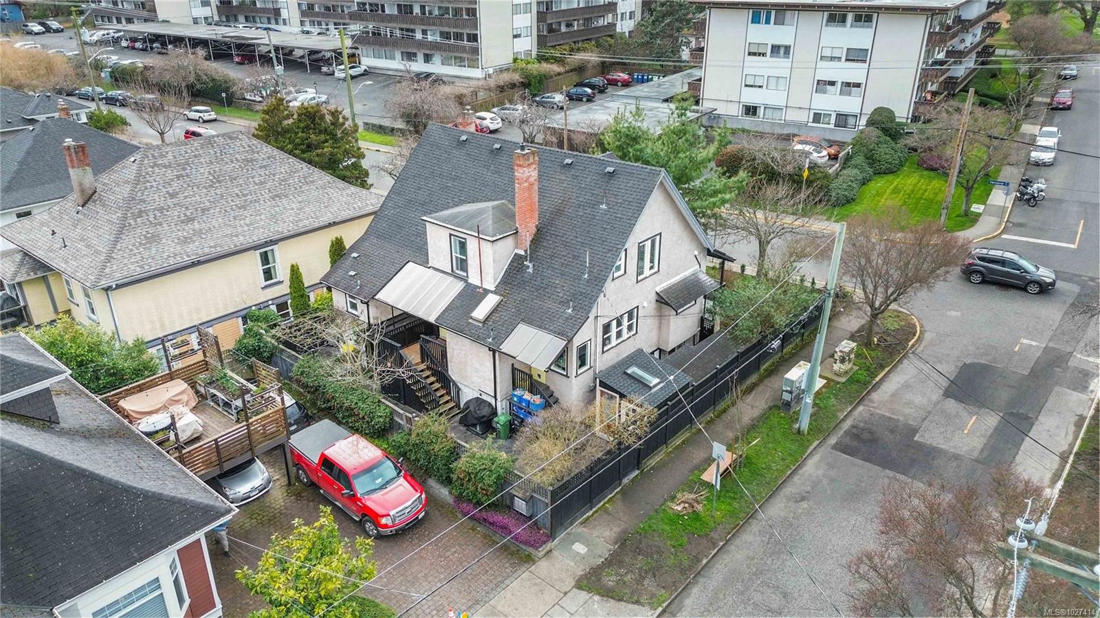 This is a rare opportunity to own a character home in the heart of Cook Street Village, one of Victoria’s most desirable and walkable neighbourhoods. Steps to cafés, restaurants, Beacon Hill Park, Dallas Road and downtown, this location offers an unmatched lifestyle. Currently configured as a four bedroom plus den family home with a bright two bedroom income suite, it provides space to grow with the benefit of mortgage support. The main level features a spacious primary bedroom plus den and two bathrooms, ideal for comfortable one level living. Upstairs offers two additional bedrooms and a kitchen, perfect for family or guests. The lower level includes a generous two bedroom suite with excellent separation. Hot water on demand and a heat pump add comfort and efficiency. There is also future potential to reconfigure into additional suites if desired.