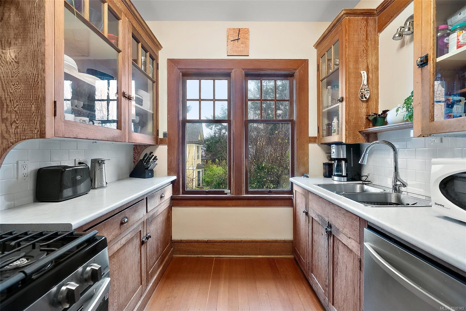 A truly extraordinary residence in the heart of James Bay, this remarkable 1905 heritage masterpiece designed by famed architect Samuel Maclure has been beautifully restored to honour its historic charm while seamlessly incorporating modern comfort and upgrades. This home offers 4,181 sq. ft. of versatile living space, thoughtfully configured as upper and lower Legal duplex residences plus a private attic suite, all with their individual entrances —an exceptional opportunity for multi-generational living, owner-occupiers seeking income, or savvy investors. Inside, you’ll discover five spacious bedrooms, three bathrooms, generous living areas, and abundant storage, complemented by a welcoming wrap-around porch on the main level that captures the timeless elegance of this iconic home. A full-height basement with a sauna presents exciting possibilities for future expansion or customization. Major upgrades—including two separate furnaces, updated electrical systems, and a complete roof replacement—provide peace of mind and create a truly turn-key property. Perfectly positioned on a quiet street in one of Victoria’s most sought-after neighbourhoods, you’re just steps from beaches, parks, the Inner Harbour, and the vibrant amenities of James Bay Village. Rarely does a home of this pedigree, scale, and flexibility come to market—offering not only an incredible lifestyle, but enduring value for years to come.