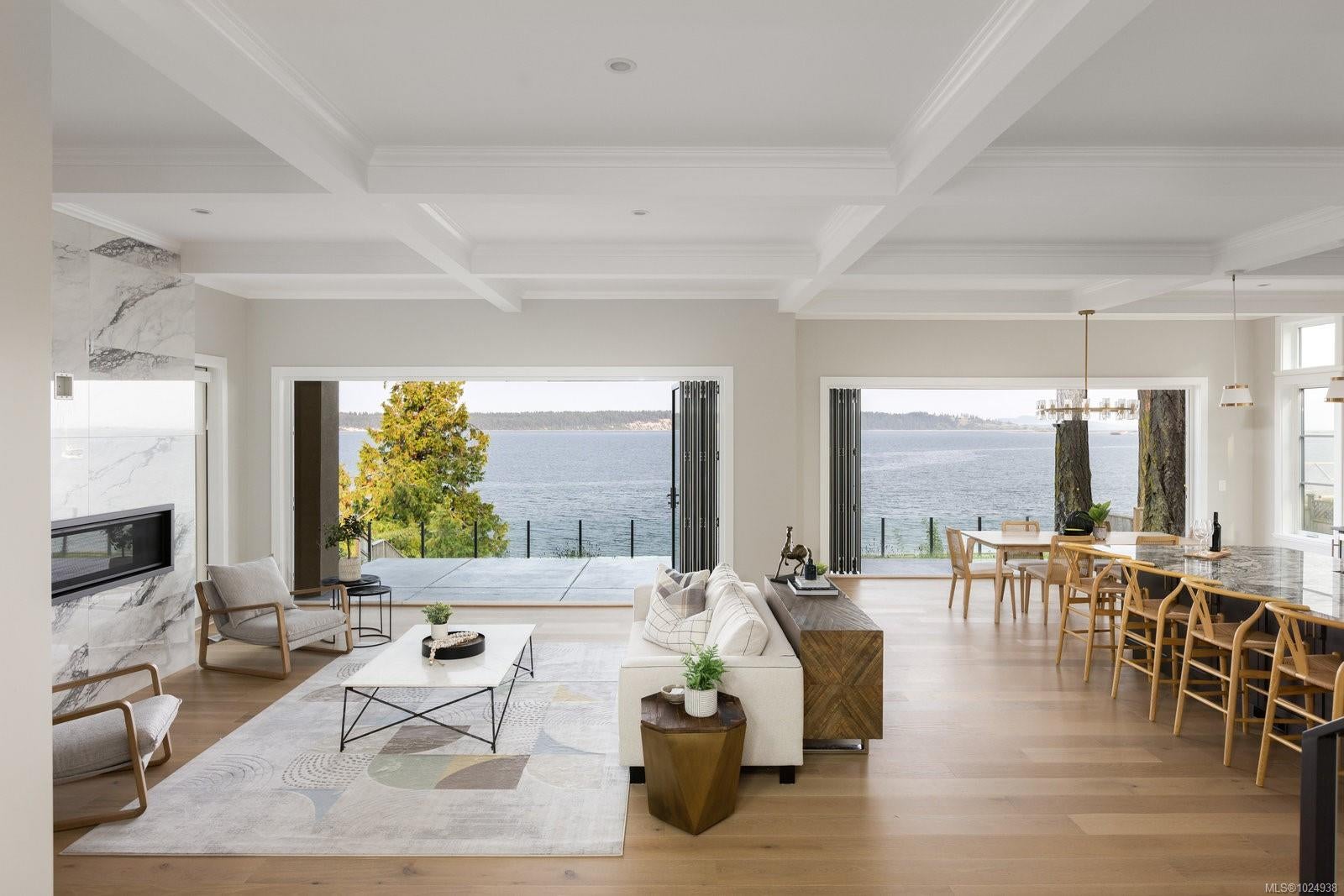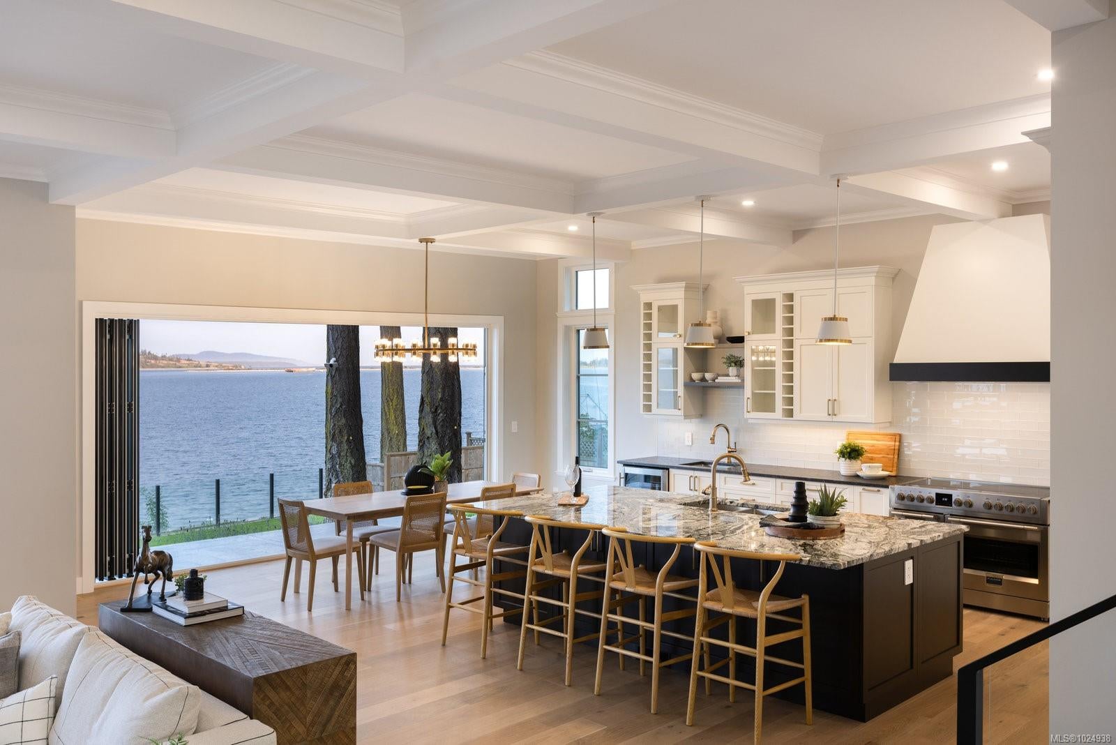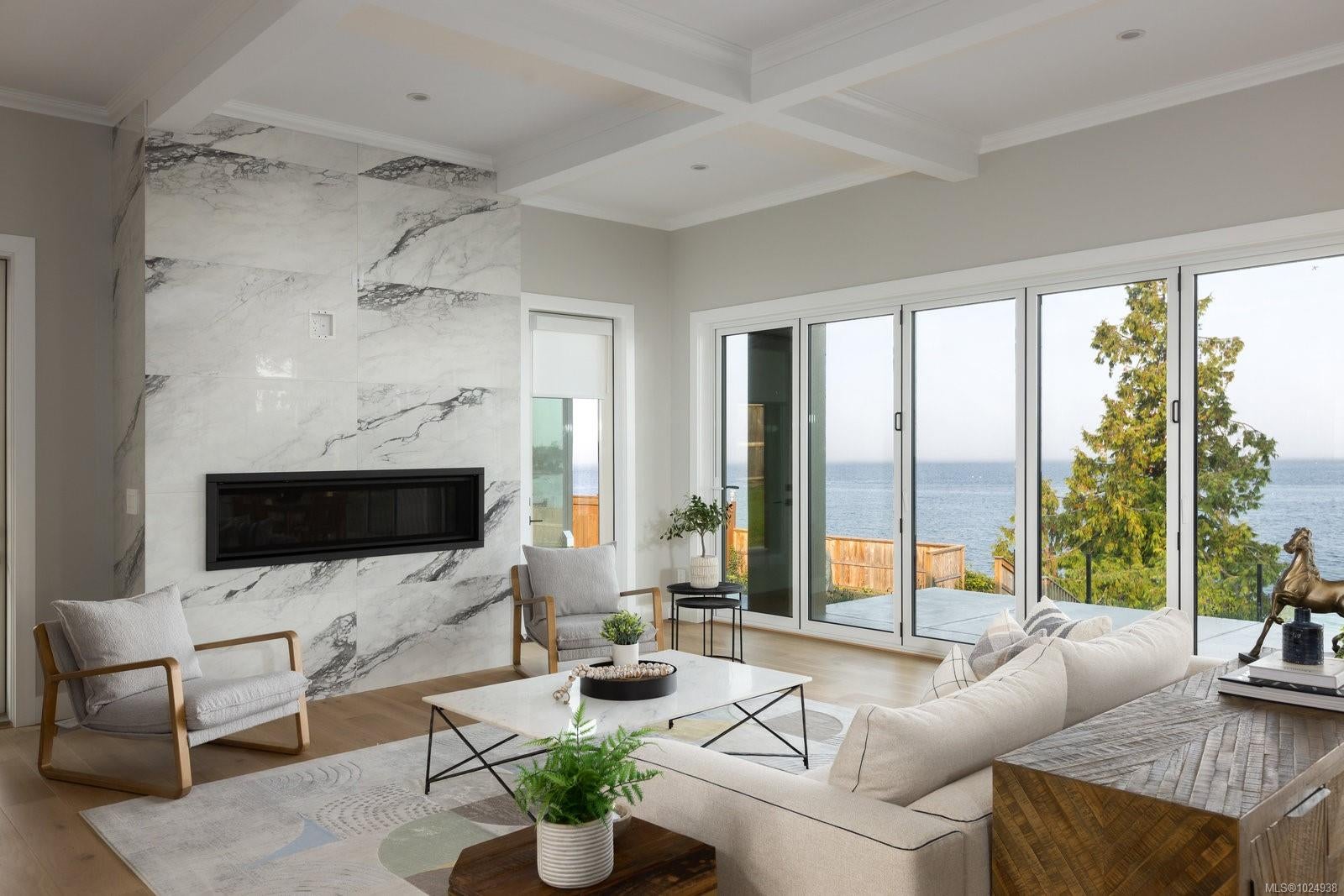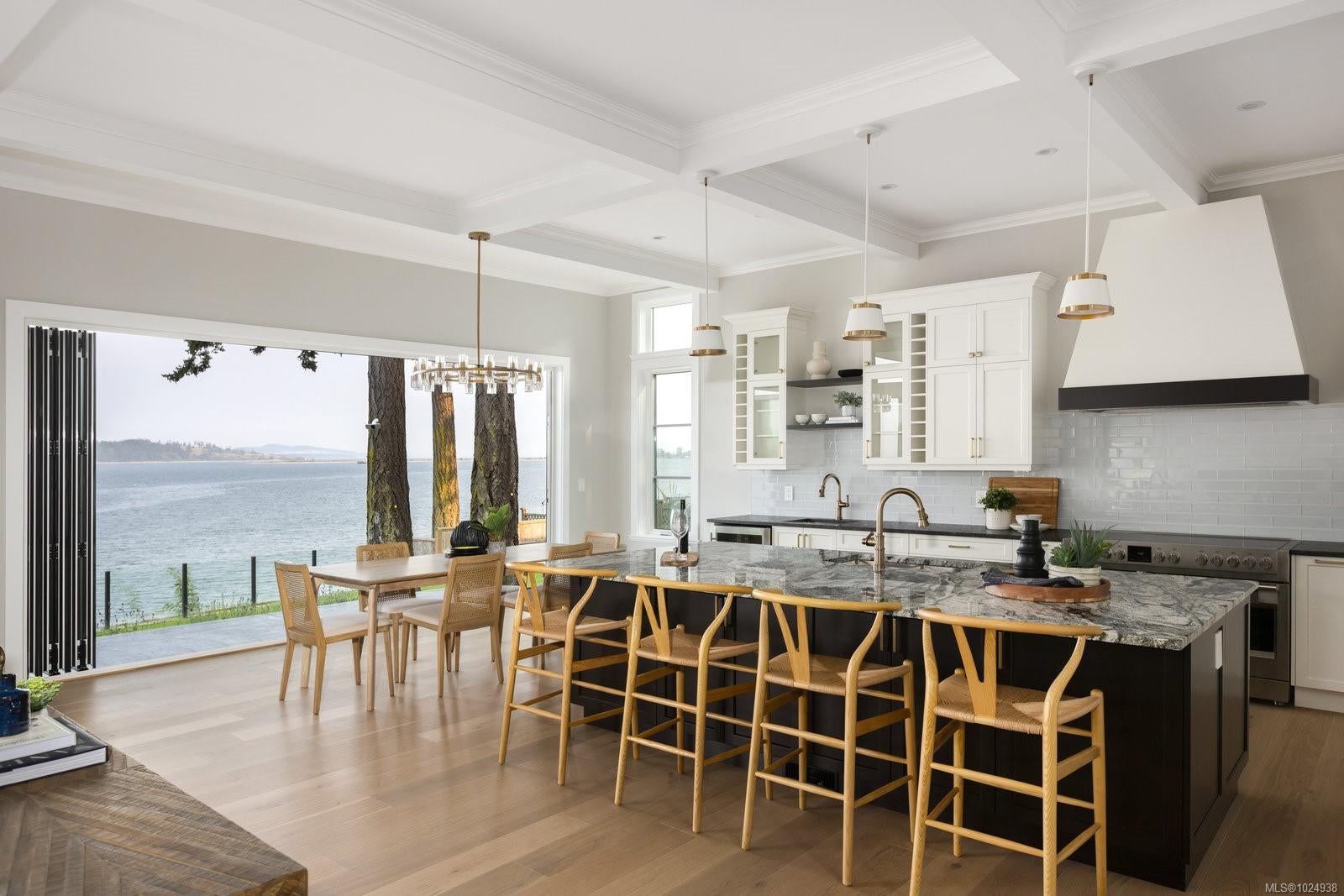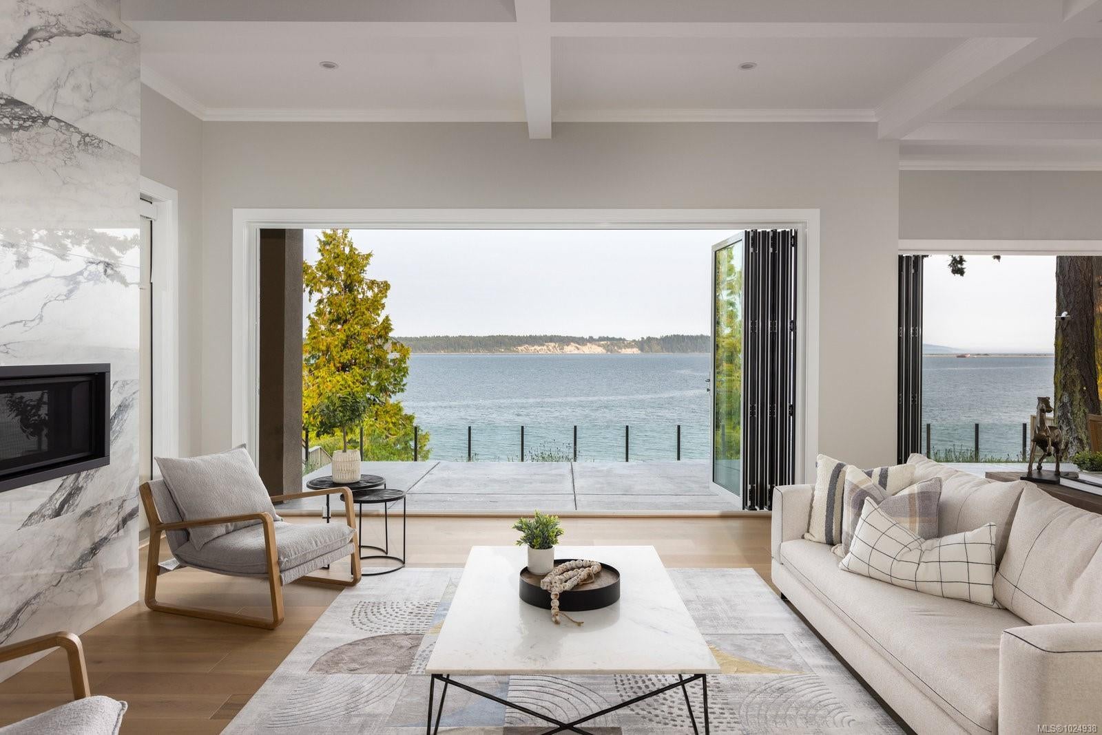 This waterfront estate embodies exceptional craftsmanship & timeless elegance, offering sweeping ocean vistas. Set on a private half-acre with 100 ft of pristine, low-bank waterfront, the home provides direct beach access from the professionally landscaped backyard. Each of the 4 bedrooms boasts stunning ocean views, w/ every room thoughtfully appointed with ensuite & WIC. The open-concept living, dining & kitchen areas are graced w/ soaring 11-ft coffered ceilings & dual nano doors, allowing for a seamless indoor-outdoor flow. The gourmet kitchen is a true centrepiece, featuring custom cabinetry, elegant stone countertops, top-of-the-line Fisher & Paykel appliances & well-appointed butler's pantry. This home also features a media room w/ a wet bar & covered patio perfect for alfresco dining. Additional highlights include a 3-car garage w/ showroom-quality epoxy flooring, extra-high ceilings & an automatic gate for enhanced privacy & security.