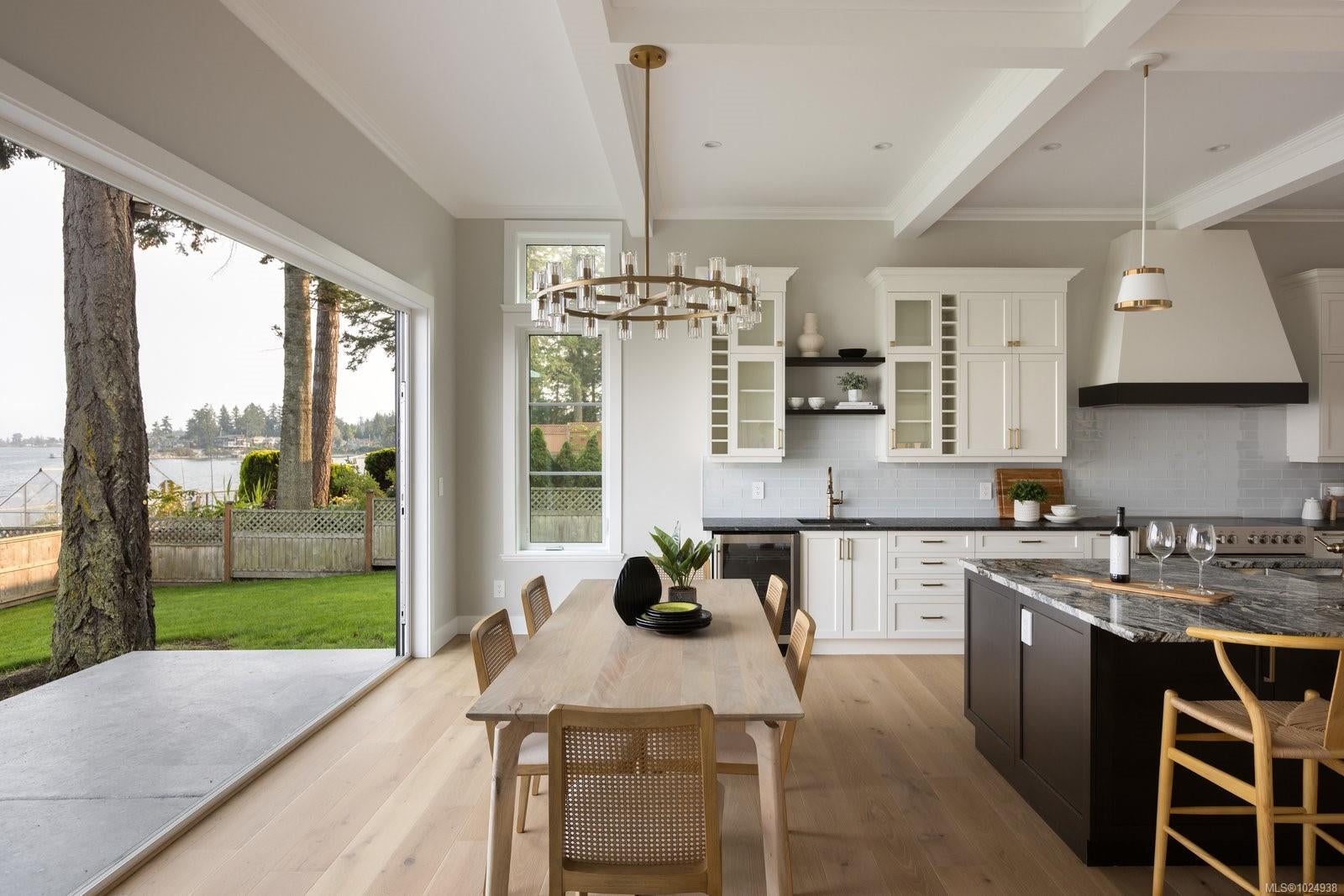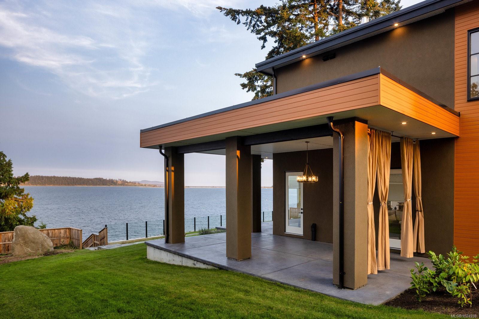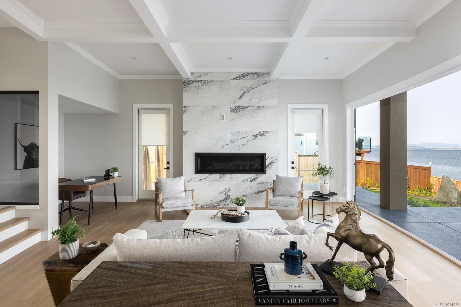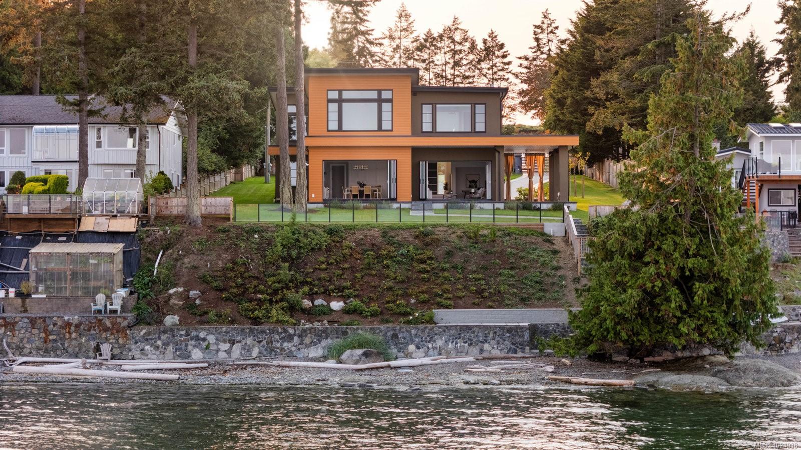 This waterfront estate embodies exceptional craftsmanship & timeless elegance, offering sweeping ocean vistas. Set on a private half-acre with 100 ft of pristine, low-bank waterfront, the home provides direct beach access from the professionally landscaped backyard. Each of the 4 bedrooms boasts stunning ocean views, w/ every room thoughtfully appointed with ensuite & WIC. The open-concept living, dining & kitchen areas are graced w/ soaring 11-ft coffered ceilings & dual nano doors, allowing for a seamless indoor-outdoor flow. The gourmet kitchen is a true centrepiece, featuring custom cabinetry, elegant stone countertops, top-of-the-line Fisher & Paykel appliances & well-appointed butler's pantry. This home also features a media room w/ a wet bar & covered patio perfect for alfresco dining. Additional highlights include a 3-car garage w/ showroom-quality epoxy flooring, extra-high ceilings & an automatic gate for enhanced privacy & security.