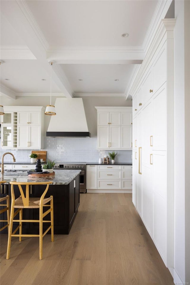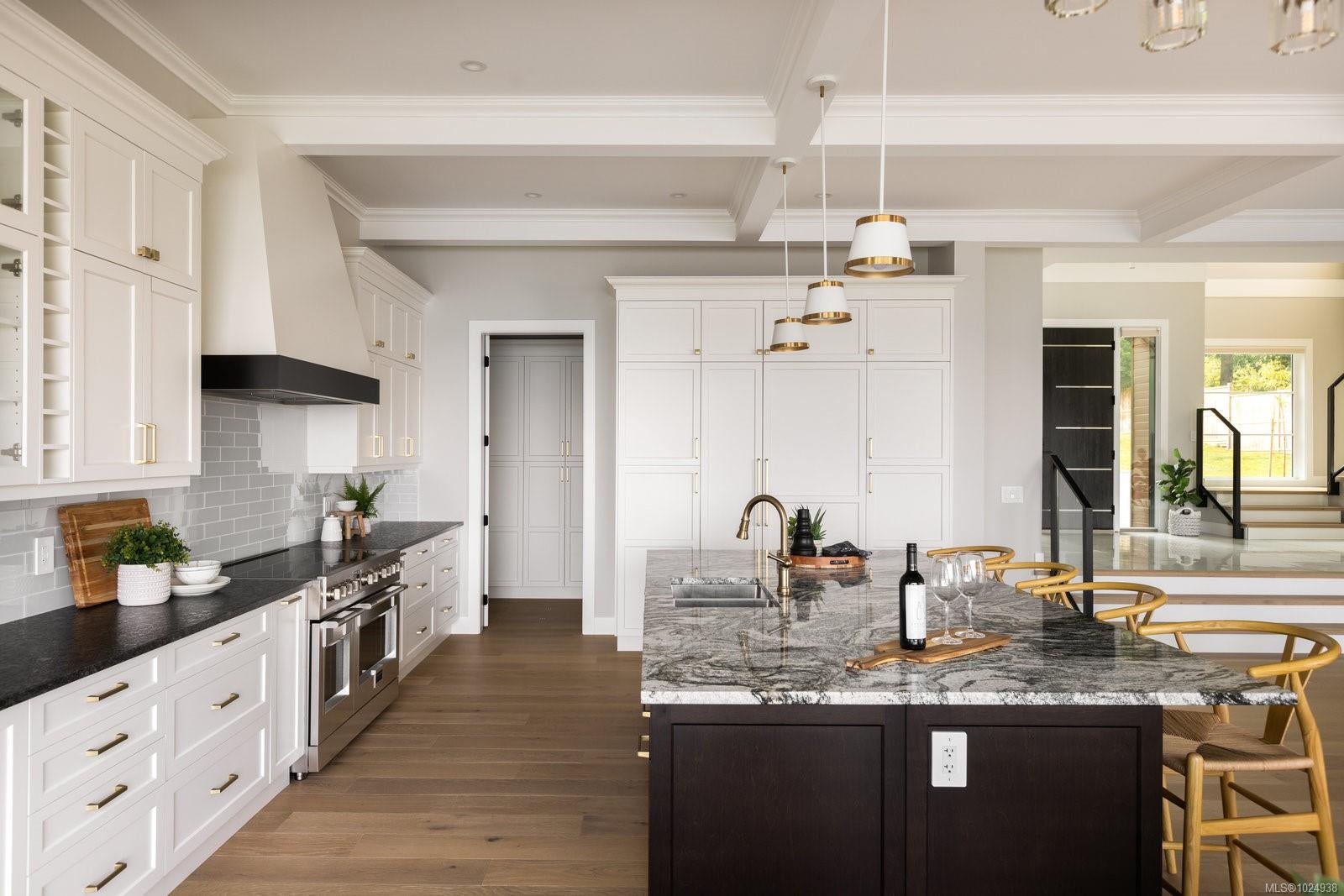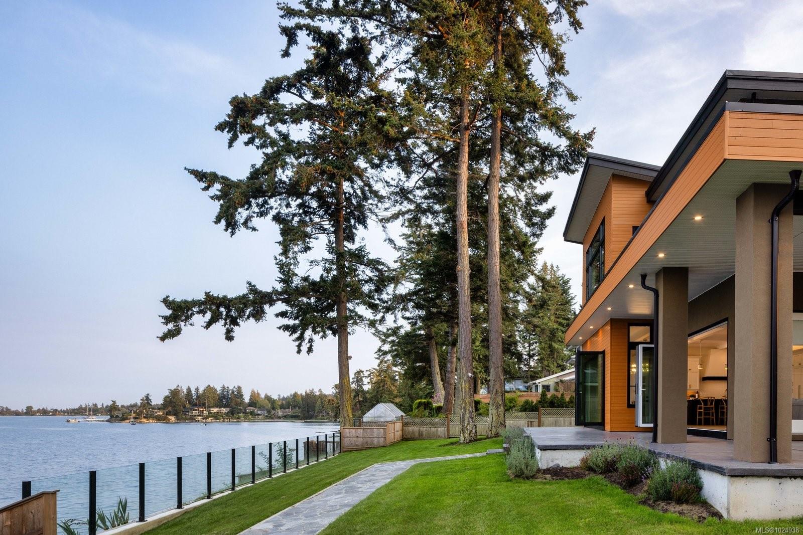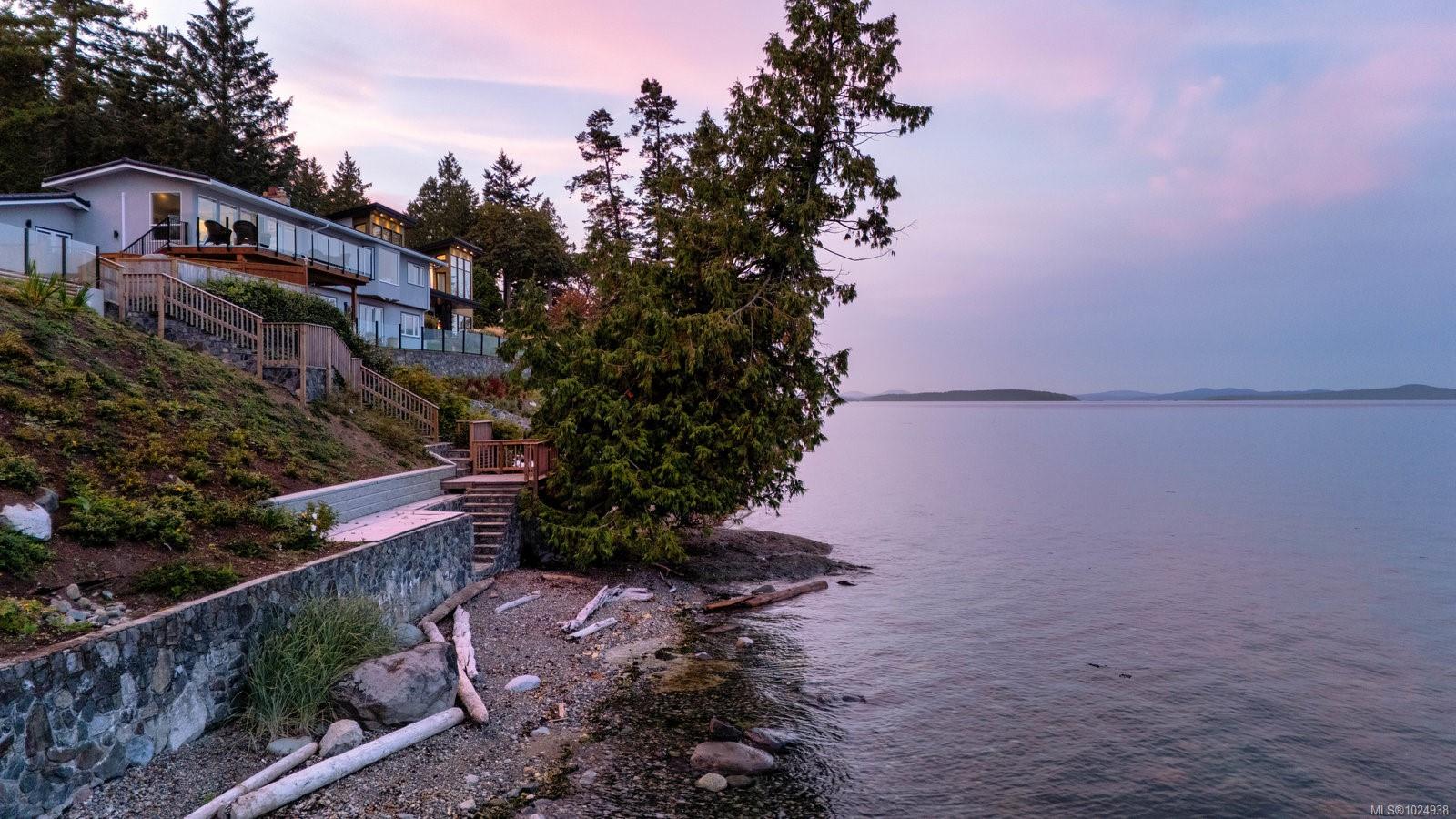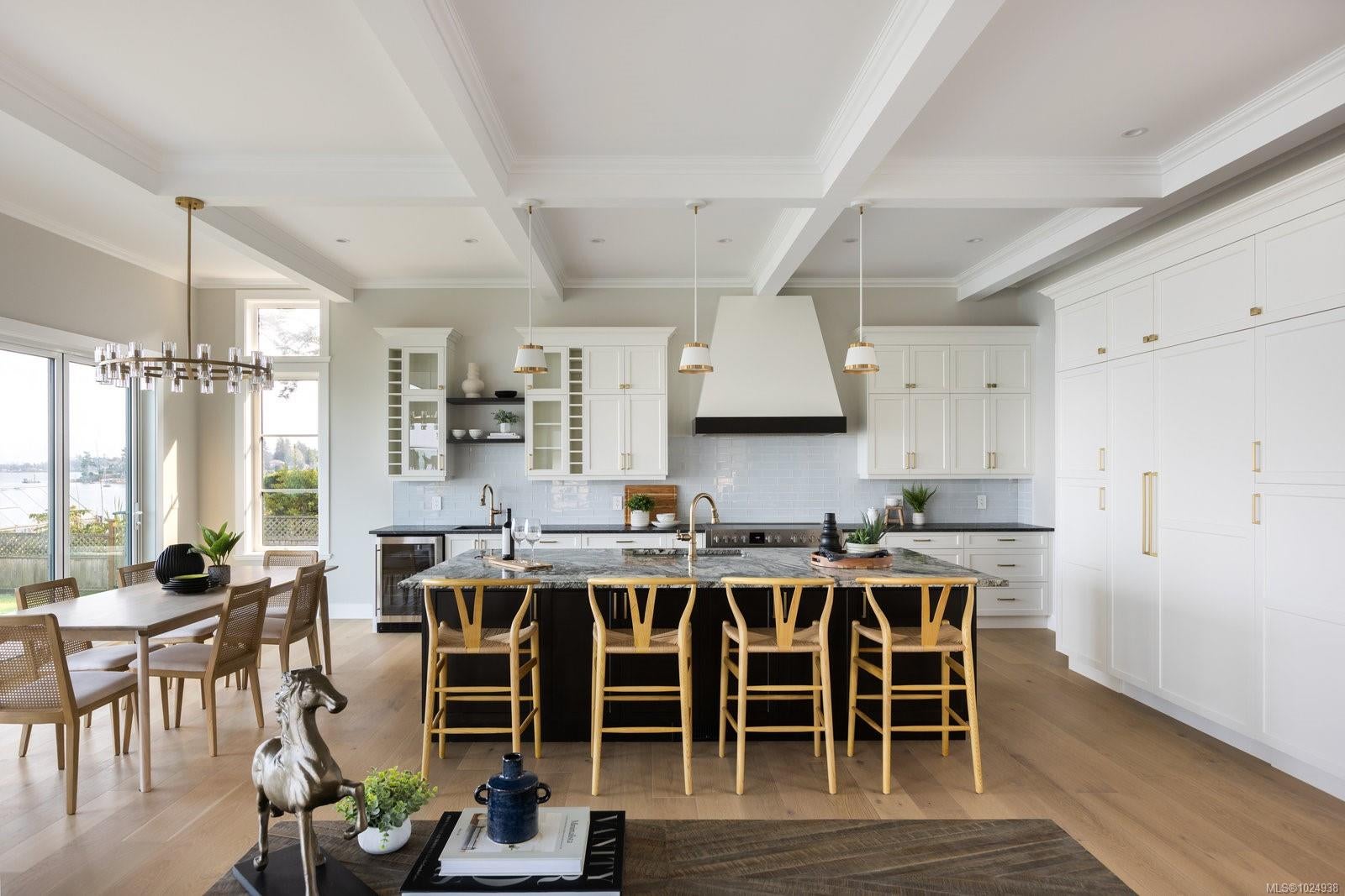 This waterfront estate embodies exceptional craftsmanship & timeless elegance, offering sweeping ocean vistas. Set on a private half-acre with 100 ft of pristine, low-bank waterfront, the home provides direct beach access from the professionally landscaped backyard. Each of the 4 bedrooms boasts stunning ocean views, w/ every room thoughtfully appointed with ensuite & WIC. The open-concept living, dining & kitchen areas are graced w/ soaring 11-ft coffered ceilings & dual nano doors, allowing for a seamless indoor-outdoor flow. The gourmet kitchen is a true centrepiece, featuring custom cabinetry, elegant stone countertops, top-of-the-line Fisher & Paykel appliances & well-appointed butler's pantry. This home also features a media room w/ a wet bar & covered patio perfect for alfresco dining. Additional highlights include a 3-car garage w/ showroom-quality epoxy flooring, extra-high ceilings & an automatic gate for enhanced privacy & security.