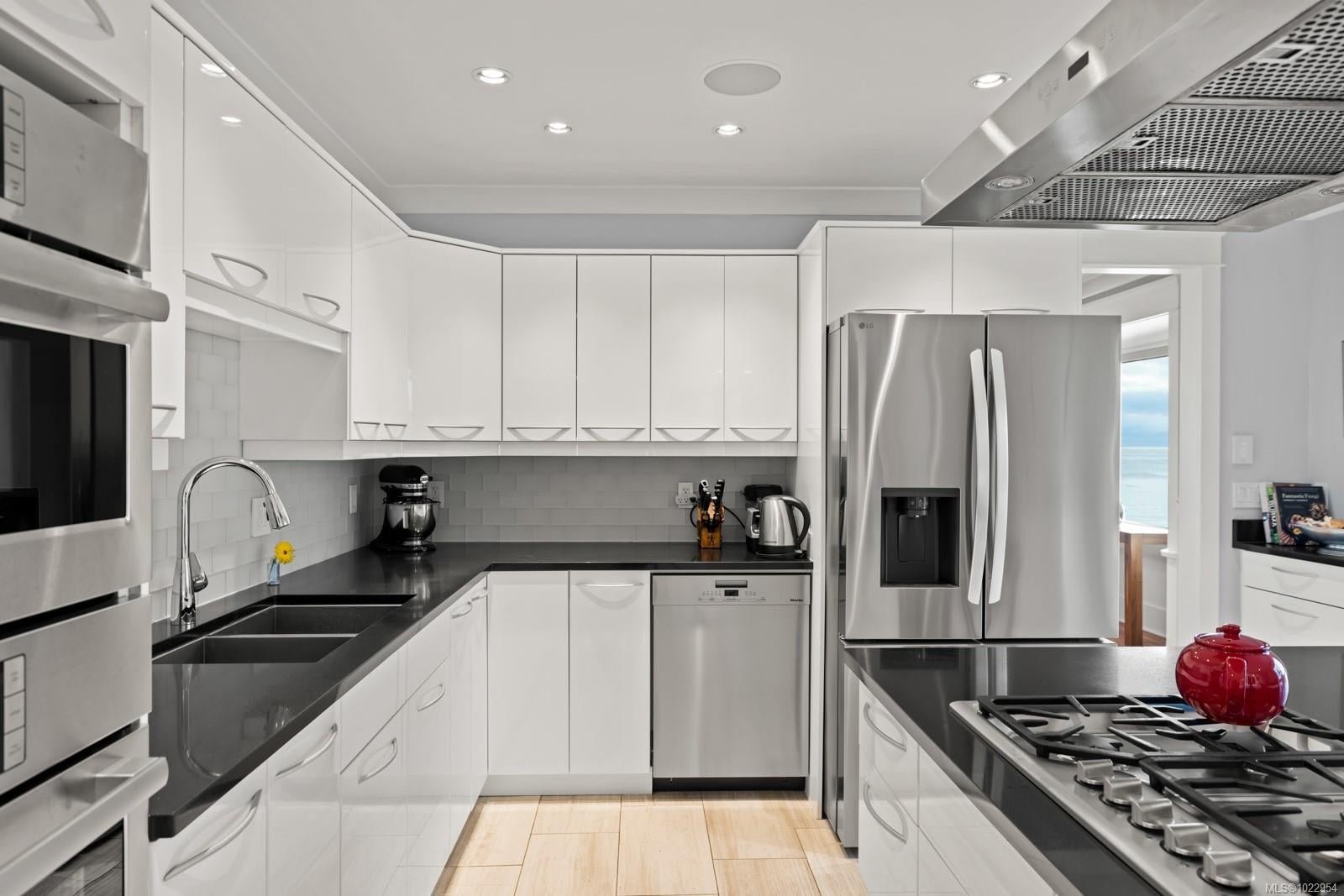 Welcome to ocean front living at ORCA House where you can see birds, seals and of course, orcas! Come and enjoy the expansive ocean views from this gorgeous 1925 character home, which has been fully restored from the roof top to the basement. This beautiful home has a lovely fenced garden with one car garage. To the left of the heated tile entryway is a large bedroom with 3 piece bathroom and a mud room. To the right is a formal dining room with gorgeous fir floors with decorative inlays and wainscotting and on the back, west-facing ocean front is a fully updated kitchen with heated tile floors and original sideboard as well as all new appliances opening up to a west-facing deck plus a large living room with fireplace, original fir floors, and picture windows of the ocean. Upstairs is the large primary with walk-in closet, sumptuous ensuite bath and private deck as well as a second full bathroom, two ocean-view bedrooms, plus laundry. Downstairs is a large self contained 1 bed suite, with private deck and views, and basement storage