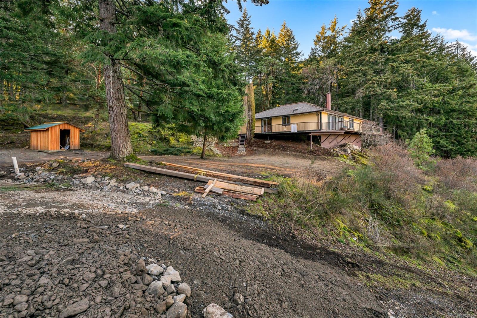 Beautiful and spacious 5-acre oceanfront property offering breathtaking views over Finlayson Arm and rare waterfront access. This is West Coast living at its finest—private, peaceful, and surrounded by nature—yet only minutes to Langford, Costco, and everyday conveniences. The single-level home is designed for comfort and accessibility, featuring 4 bedrooms including a generous primary suite with ensuite, a main bath, and an open-concept layout ideal for family living and entertaining. Expansive windows and spacious living areas are perfectly positioned to capture the stunning ocean views. Outdoor living truly shines here. The large steel-and-concrete wraparound deck provides incredible space for entertaining or simply soaking in the panoramic scenery. An inviting interior courtyard creates a sheltered retreat for year-round enjoyment. Deep-water access with mooring anchor makes this an exceptional opportunity for boating and fishing enthusiasts. A large attached garage offers excellent workshop or storage space, while flexible zoning allows for secondary accommodation or a cottage suite—adding versatility and long-term value. Recent appraisal confirms exceptional value at the new price. Now priced to sell! With strong interest and a recent price adjustment, this remarkable oceanfront estate stands out as one of the best values on the market today. Properties like this rarely remain available—come experience the privacy, views, and quality for yourself before it’s gone. The wait is over. Flexible possession available for the right buyer.