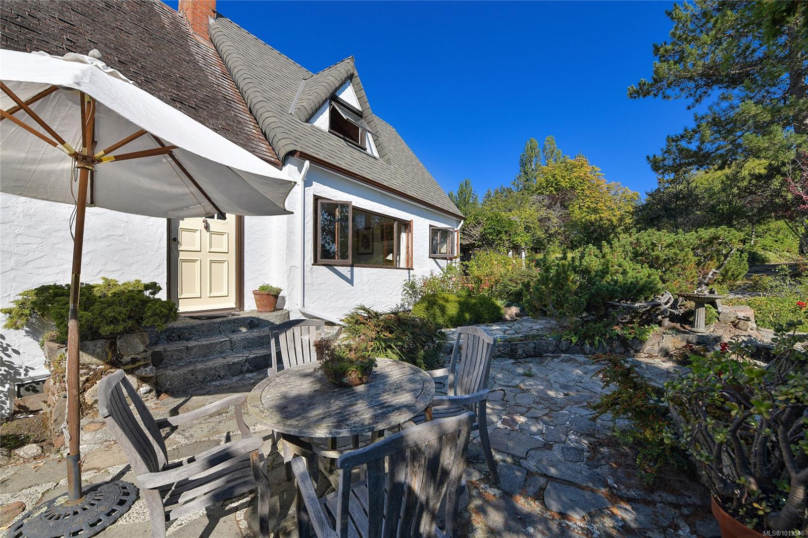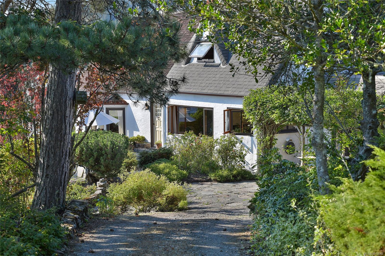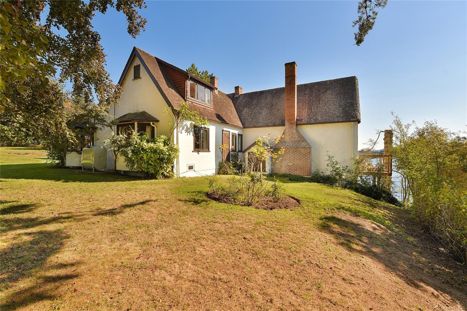 Two acre unique waterfront with a character home, private dock, orchard, stable, workshop and cottage. Rich in history and brimming with potential, this property offers many opportunities, including subdivision possibilities or simply enjoying the private sanctuary. In the same family for over 50 years, this historic gem captures your heart the moment you arrive. Originally built in 1934 for Esther Tryon,the home is perfectly situated on the lot for views and sunshine! The view along with the local sandstone rock garden and perennial borders, set the stage for the main house.This 1930s period home, designed by renowned architect Hubert Savage features distinctive cedar curved eaves reminiscent of thatched roofs and is perched on a promontory overlooking the bay with south-facing views. From the dock, your waterfront adventures to Tsehum Harbour & the Gulf Islands await. The house is beautifully integrated into the lush landscape, offering a skylit breakfast room, a charming 1930s kitchen, and a living room with sweeping views of the bay. A spacious music room, perfect for social gatherings, opens to a balcony for enjoying evening sun. The primary area includes a deco-style study with custom joinery, a private bathroom,and a cozy built-in day bed, all adjoining the main bedroom with views of the rose garden, personal bathroom, and a private library space. Upstairs, you'll find three sunny, country-style bedrooms and a bathroom centred around a shared living area.This is a rare opportunity to acquire a delightful period home, ready for you to expand your life and pursue your passions.Outbuildings, currently set up as pottery and weaving studios, could easily be converted back to hobby farm use or reimagined to suit your needs. The cottage, a quaint clapperboard house, is perfect for guests, relatives, or caretakers. Nestled among heritage apple, plum, and quince trees, this property invites you to create your own legacy in a truly magical setting.
