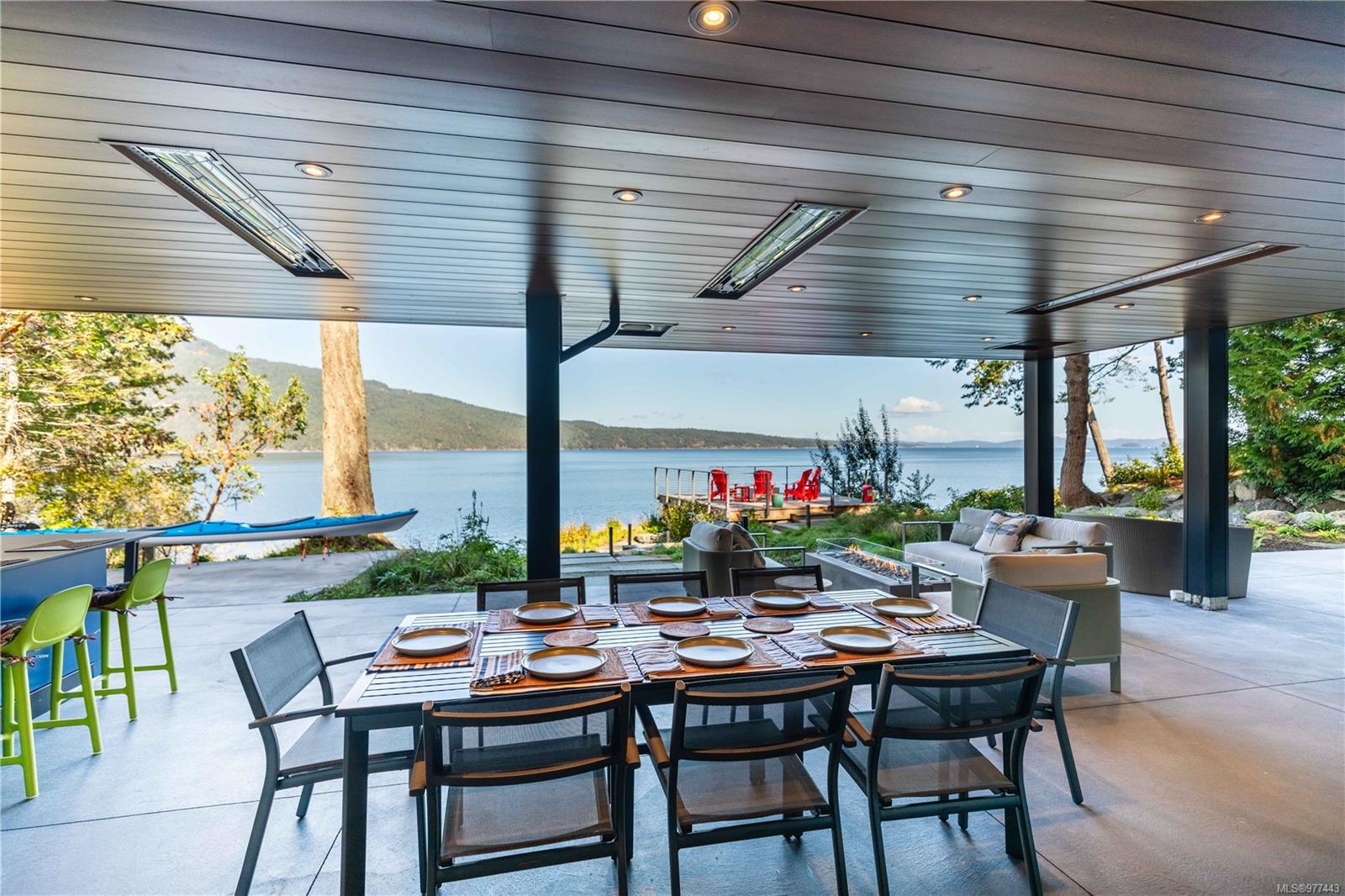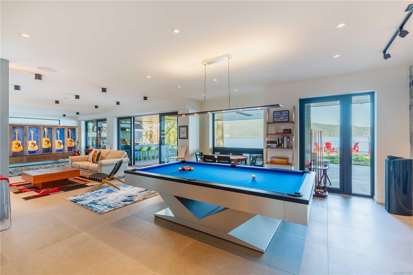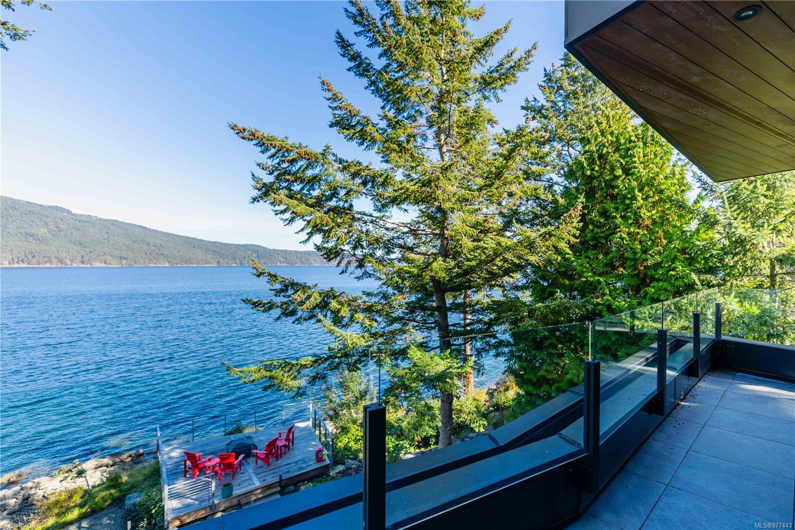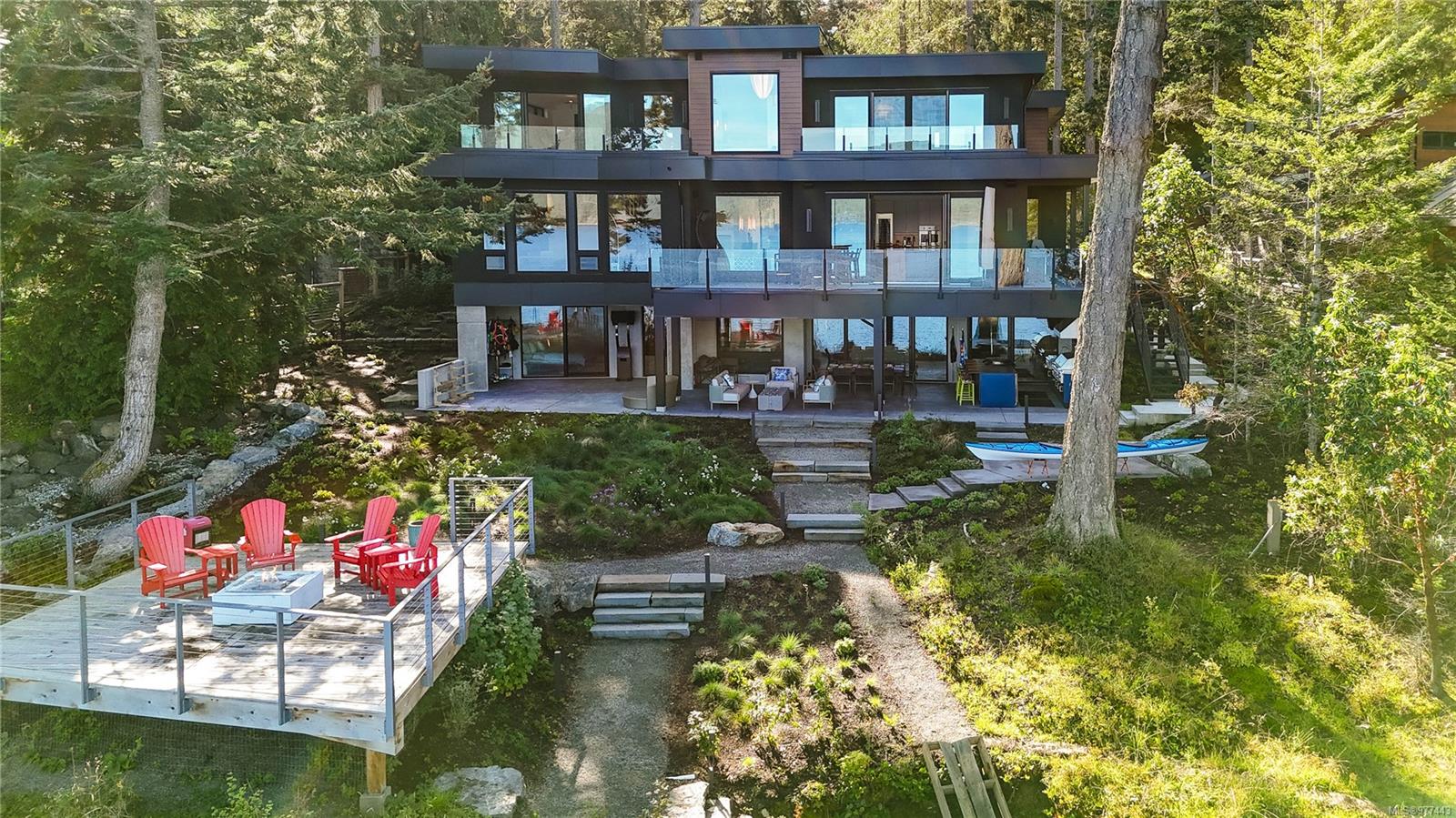 Welcome to this 2024 constructed luxury modern waterfront estate in North Saanich, Vancouver Island. Set on 1.02 acres of superb low-bank oceanfront, this luxurious property offers privacy and stunning views across the Satellite Channel to Salt Spring Island's Mount Tuam Ecological Reserve. Voted best Kitchen (over $150k) & Bathroom (over $75k) at the VI Building Industry Awards, the main residence spans 7,000 sqft, featuring four bedrooms, seven bathrooms, and a double attached garage. A zen garden with a water bowl and Japanese maple surrounds the entrance. Inside, floor-to-ceiling windows flood the main floor's open kitchen, dining, and living areas with natural light, leading to an outdoor patio. The kitchen is equipped with high-end Viking appliances, a Sub-Zero wine cooler, custom lighting and cabinetry, and a prep/pantry area for convenience. The upper level offers two primary suites with ocean-view balconies, walk-in closets, and luxe ensuites; one suite includes a private office. An exercise room, private bathroom, and laundry complete this floor. On the lower level, entertainment abounds with a home theatre, wet bar, indoor and outdoor kitchens, a guest bedroom, laundry, a heated patio, and access to a 350-sqft oceanfront deck. The 990-sqft guest house, located behind the main home, includes its own kitchen, two bedrooms, two bathrooms, laundry, and an expansive ocean view deck. A detached three-bay garage with a workshop and mezzanine provides ample storage and workspace. Equipped with Crestron Integrated Smart Home technology, a Step 5 energy-efficient rating, advanced heating and cooling systems, and comprehensive soundproofing, this home is both intuitive and eco-friendly. Minutes from BC Ferries Swartz Bay Terminal, Victoria International Airport, marinas, parks, and golf courses, this estate offers private, opulent waterfront living with easy access to recreation and amenities. Get in touch with us for an info package today!