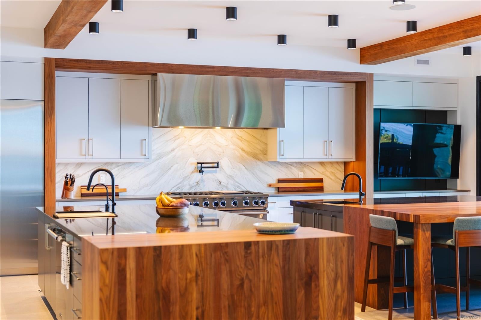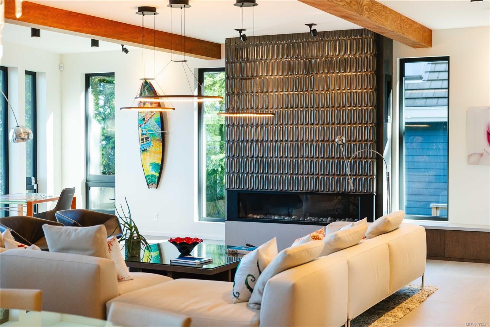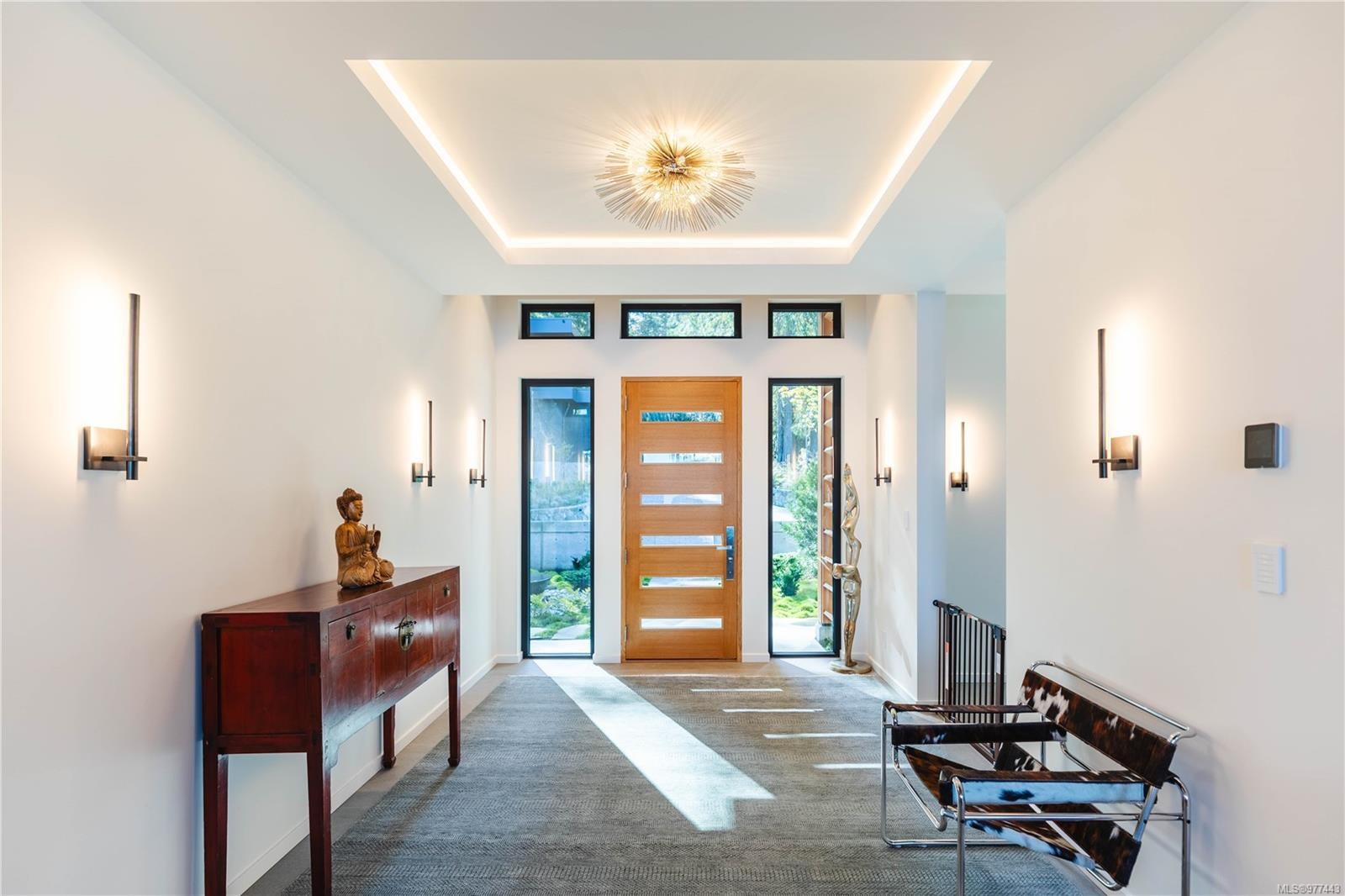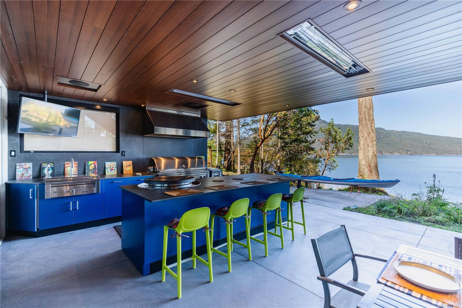 Welcome to this 2024 constructed luxury modern waterfront estate in North Saanich, Vancouver Island. Set on 1.02 acres of superb low-bank oceanfront, this luxurious property offers privacy and stunning views across the Satellite Channel to Salt Spring Island's Mount Tuam Ecological Reserve. Voted best Kitchen (over $150k) & Bathroom (over $75k) at the VI Building Industry Awards, the main residence spans 7,000 sqft, featuring four bedrooms, seven bathrooms, and a double attached garage. A zen garden with a water bowl and Japanese maple surrounds the entrance. Inside, floor-to-ceiling windows flood the main floor's open kitchen, dining, and living areas with natural light, leading to an outdoor patio. The kitchen is equipped with high-end Viking appliances, a Sub-Zero wine cooler, custom lighting and cabinetry, and a prep/pantry area for convenience. The upper level offers two primary suites with ocean-view balconies, walk-in closets, and luxe ensuites; one suite includes a private office. An exercise room, private bathroom, and laundry complete this floor. On the lower level, entertainment abounds with a home theatre, wet bar, indoor and outdoor kitchens, a guest bedroom, laundry, a heated patio, and access to a 350-sqft oceanfront deck. The 990-sqft guest house, located behind the main home, includes its own kitchen, two bedrooms, two bathrooms, laundry, and an expansive ocean view deck. A detached three-bay garage with a workshop and mezzanine provides ample storage and workspace. Equipped with Crestron Integrated Smart Home technology, a Step 5 energy-efficient rating, advanced heating and cooling systems, and comprehensive soundproofing, this home is both intuitive and eco-friendly. Minutes from BC Ferries Swartz Bay Terminal, Victoria International Airport, marinas, parks, and golf courses, this estate offers private, opulent waterfront living with easy access to recreation and amenities. Get in touch with us for an info package today!