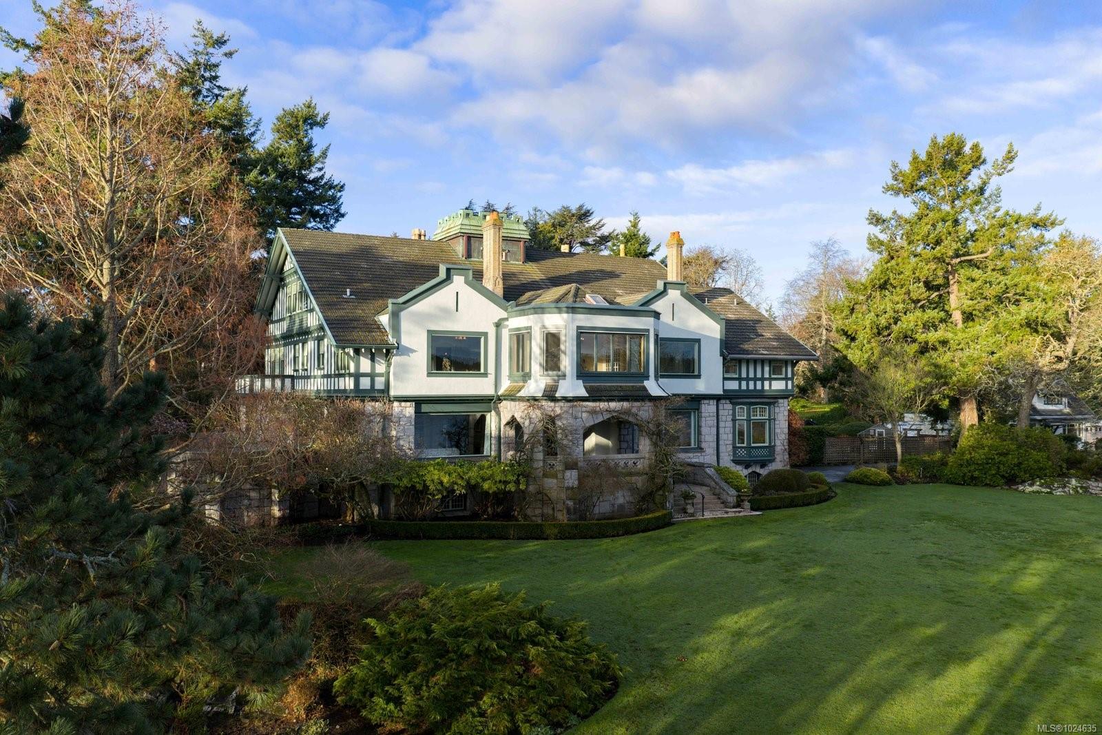 A landmark waterfront estate in the heart of the Uplands, 3175 Beach Drive, known as Riffington, is a rare offering of architectural and cultural significance. Designed in 1913 by architect Philip A. Jullien in the Tudor Revival style, Riffington was the original show home for the Uplands development. Thoughtfully positioned to frame picturesque ocean vistas and carefully aligned views toward Mount Baker, the home sits on park-like grounds shaped by the Olmsted vision. Riffington has been featured in Western Living Magazine, visited by the British Royal Family on multiple occasions, and housed the U.S. Consul from 1928–1942, underscoring its historic prominence. The four-level main residence spans approximately 12,400 sq ft, offering 9 bedrooms, 7 bathrooms, and 10 fireplaces, with grand principal rooms, a dramatic two-storey reception hall, libraries, sunrooms, ocean-facing patios, and a distinguished music room executed in the French Renaissance style. The estate includes a two-level carriage house, seaside cottage, and waterfront pavilion, a private dock and a large-boat mooring, as well as a productive vegetable garden. Just minutes from the Royal Victoria Yacht Club, Riffington is an irreplaceable coastal legacy in one of Canada’s most prestigious enclaves.