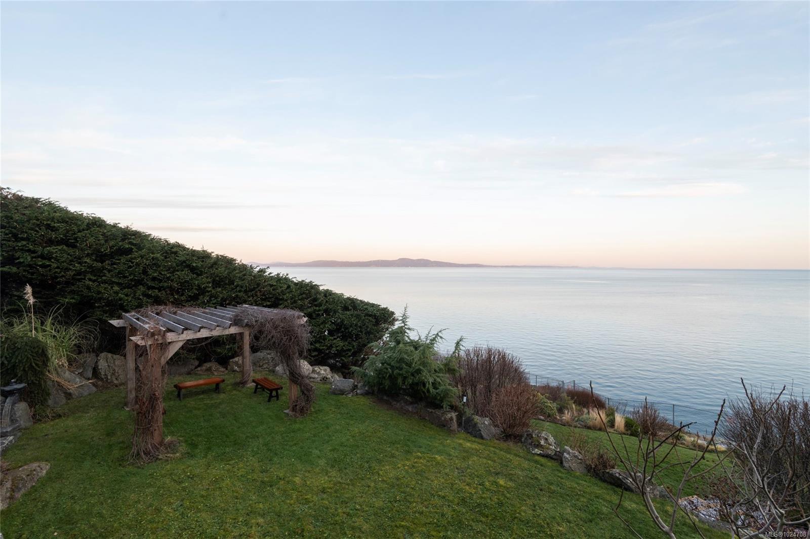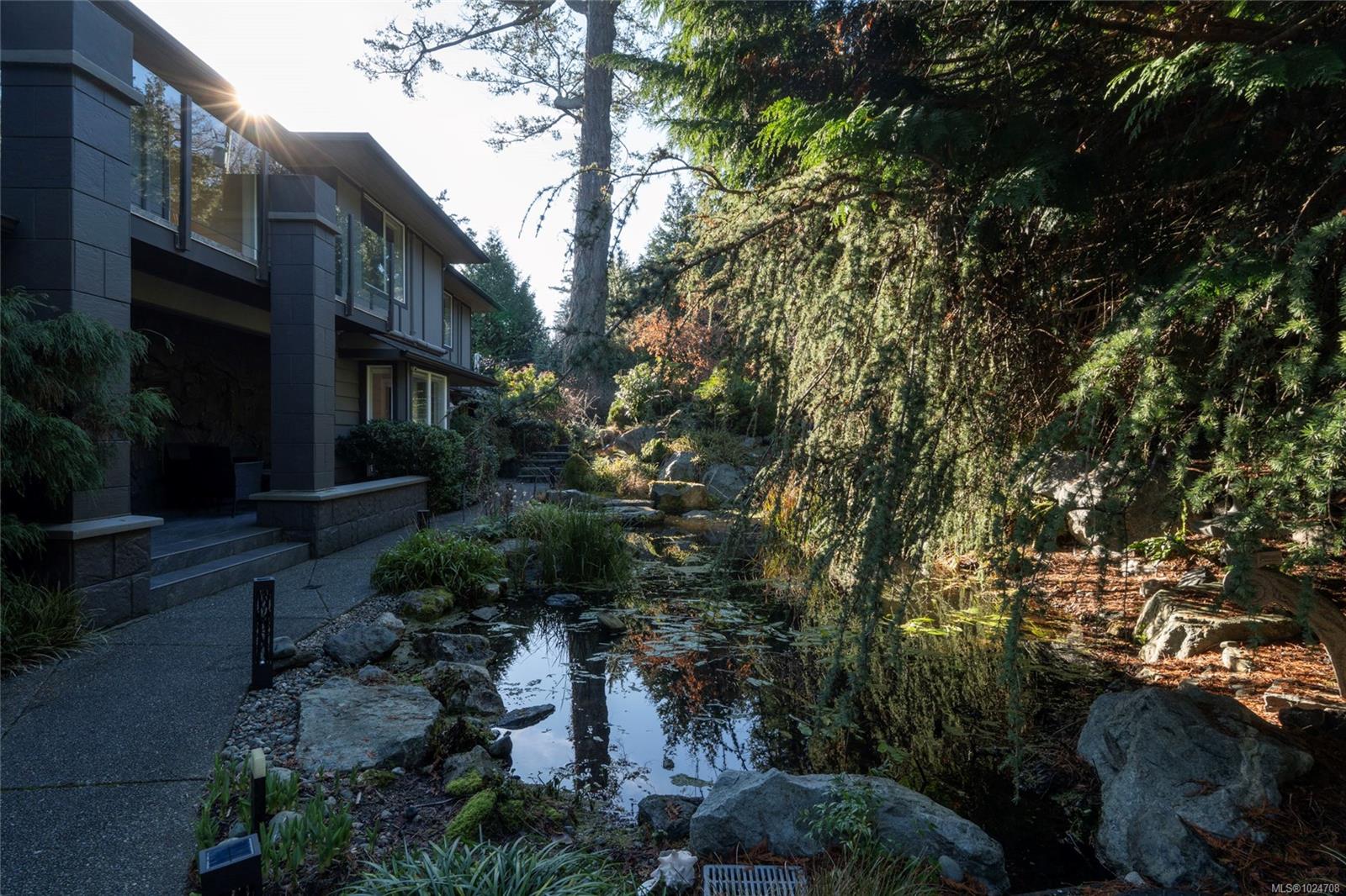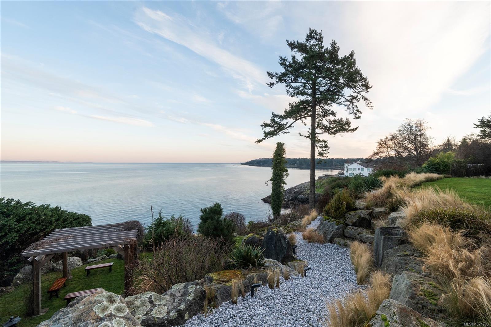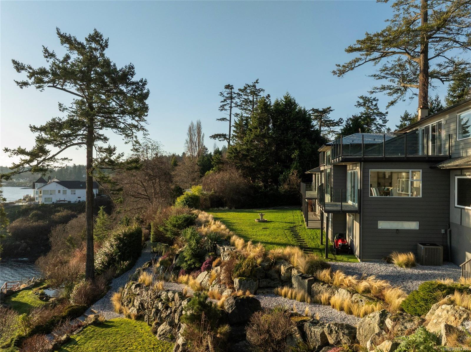 Set on 1.15 acres of private, low-bank oceanfront, this gated Saanich estate offers an extraordinary combination of scale, privacy, and immersive coastal living. A secure entrance welcomes you with manicured landscaping and a cascading waterfall, creating a serene arrival and tranquil soundscape throughout the home. Inside, the residence is filled with natural light, featuring floor-to-ceiling windows that frame sweeping ocean views from nearly every principal room. The home offers eight bedrooms and seven bathrooms, including a spacious primary suite with large windows overlooking the water and a spa-inspired ensuite complete with a jetted tub. The thoughtfully designed kitchen features quartz countertops, modern appliances, a built-in pantry, and multiple gathering spaces, including a breakfast bar with ocean views and a breakfast nook set beside the waterfall. A formal dining area also overlooks the water, ideal for entertaining. The main level includes a nanny or guest suite with separate entrance, while the lower level offers a media area, sauna, and indoor hot tub. Multiple balconies and outdoor sitting areas are positioned throughout the property to take in the views, including a unique oceanfront landing pad and patio perched above the water—perfect for whale watching. Private stairs lead directly to the shoreline, offering easy access for kayaking, paddleboarding, or enjoying the oceanfront lifestyle. The grounds are beautifully landscaped with mature plantings, pathways, and a gazebo, creating a peaceful, park-like setting. A rare offering where privacy, nature, and refined coastal living come together in one of Saanich’s most desirable waterfront locations.