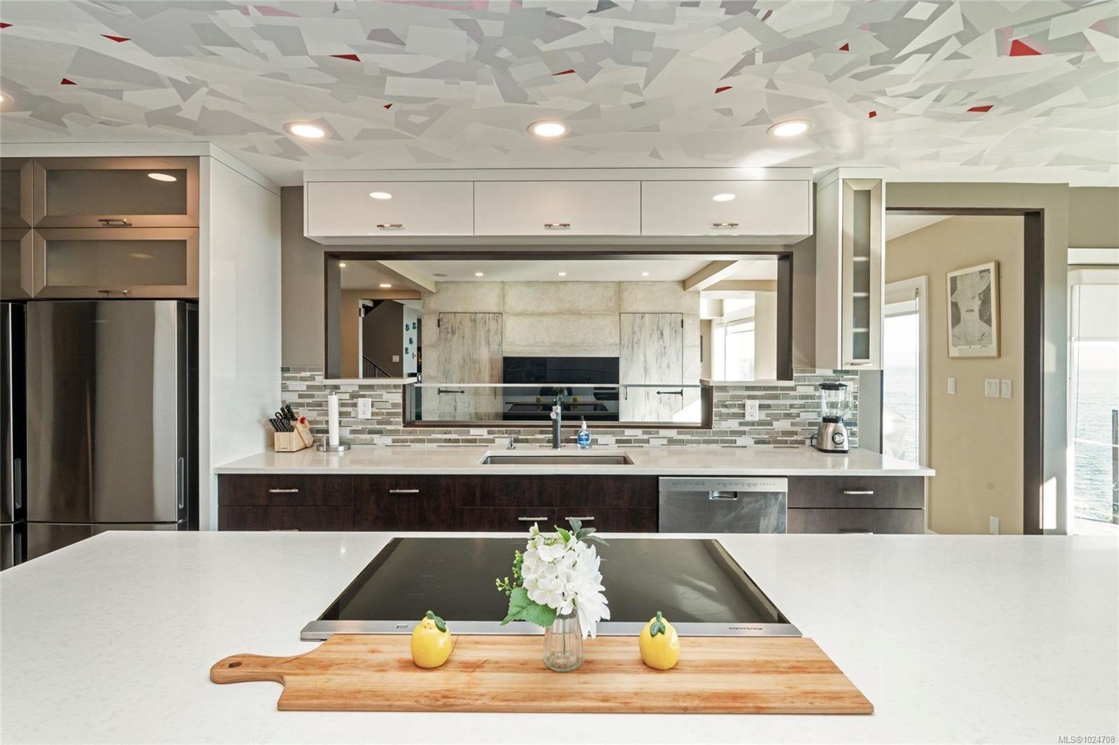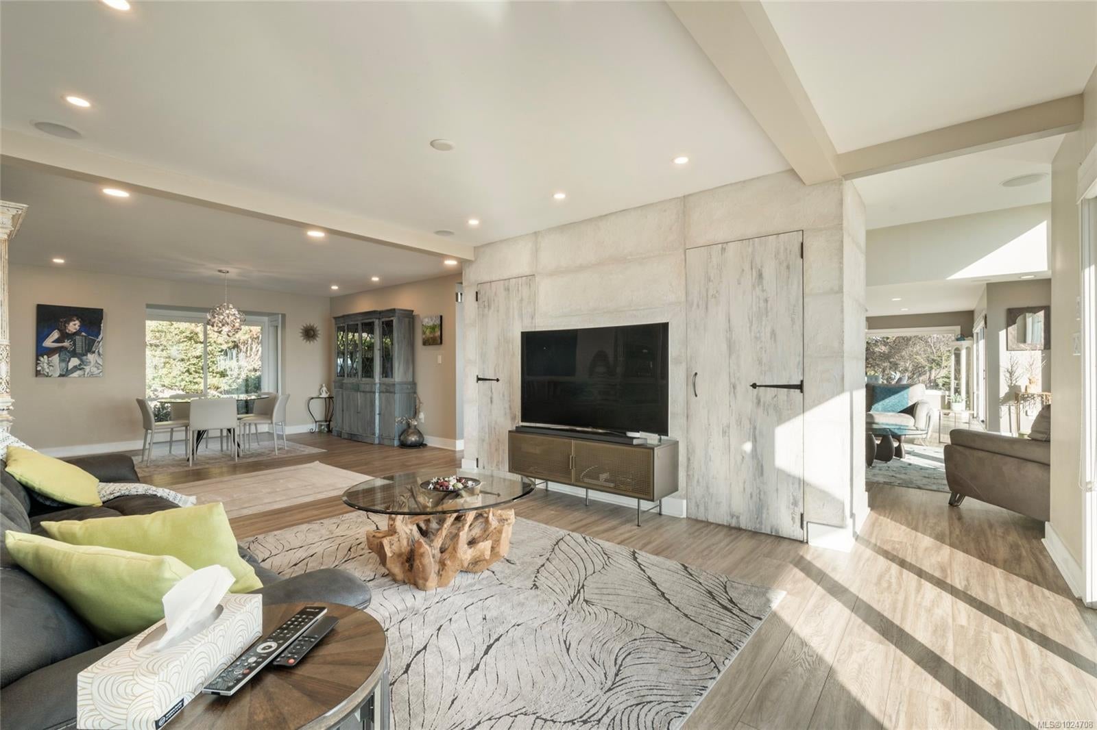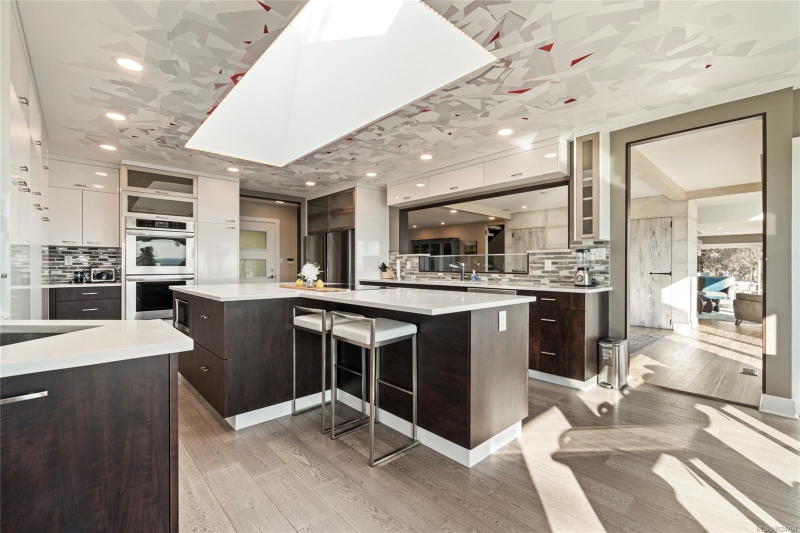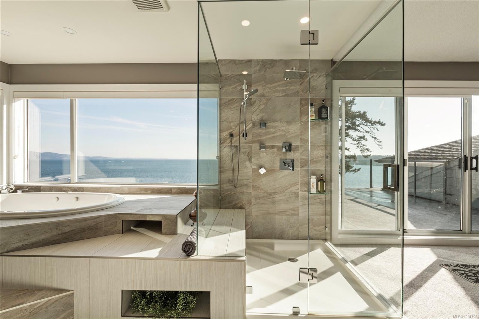 Set on 1.15 acres of private, low-bank oceanfront, this gated Saanich estate offers an extraordinary combination of scale, privacy, and immersive coastal living. A secure entrance welcomes you with manicured landscaping and a cascading waterfall, creating a serene arrival and tranquil soundscape throughout the home. Inside, the residence is filled with natural light, featuring floor-to-ceiling windows that frame sweeping ocean views from nearly every principal room. The home offers eight bedrooms and seven bathrooms, including a spacious primary suite with large windows overlooking the water and a spa-inspired ensuite complete with a jetted tub. The thoughtfully designed kitchen features quartz countertops, modern appliances, a built-in pantry, and multiple gathering spaces, including a breakfast bar with ocean views and a breakfast nook set beside the waterfall. A formal dining area also overlooks the water, ideal for entertaining. The main level includes a nanny or guest suite with separate entrance, while the lower level offers a media area, sauna, and indoor hot tub. Multiple balconies and outdoor sitting areas are positioned throughout the property to take in the views, including a unique oceanfront landing pad and patio perched above the water—perfect for whale watching. Private stairs lead directly to the shoreline, offering easy access for kayaking, paddleboarding, or enjoying the oceanfront lifestyle. The grounds are beautifully landscaped with mature plantings, pathways, and a gazebo, creating a peaceful, park-like setting. A rare offering where privacy, nature, and refined coastal living come together in one of Saanich’s most desirable waterfront locations.
