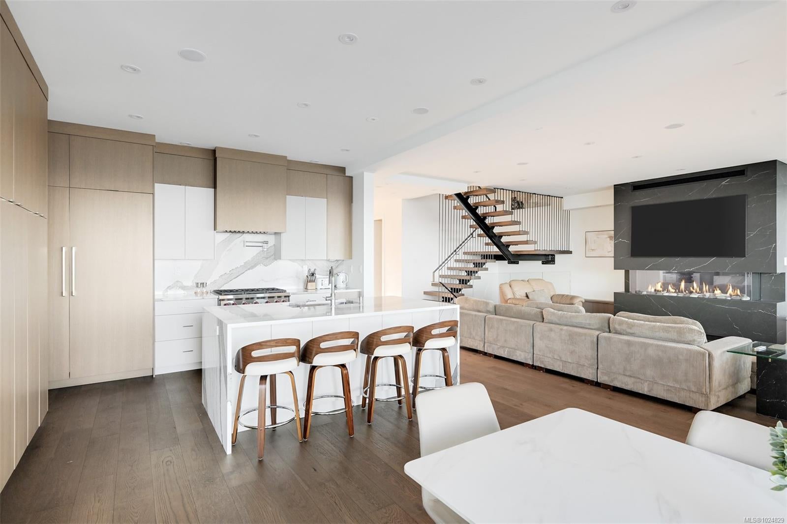 Protected oceanfront living in the heart of Cordova Bay. This custom-built coastal residence offers panoramic views, exceptional privacy, and a layout thoughtfully designed for multi-generational living. The ocean-facing main level features a stunning open-concept kitchen with quartz countertops and premium appliances by Sub-Zero and Wolf, flowing seamlessly into expansive living and dining areas framed by large-format windows and doors that capture the ever-changing shoreline. Designed for comfort in every season, the home includes radiant in-floor heating, a heat pump, triple-pane windows, and smart home features throughout. A dedicated media room, private guest space, and fully self-contained secondary suite provide flexibility for extended family, visitors, or independent living. Multiple patios create effortless indoor-outdoor connection, ideal for entertaining or quiet mornings by the water. The property also offers a two-car garage, ample additional parking, irrigated landscaping, and integrated security. Built to an exceptional standard and positioned on protected waterfront, this is a rare opportunity to secure a legacy-quality home in one of Victoria’s most sought-after seaside communities.