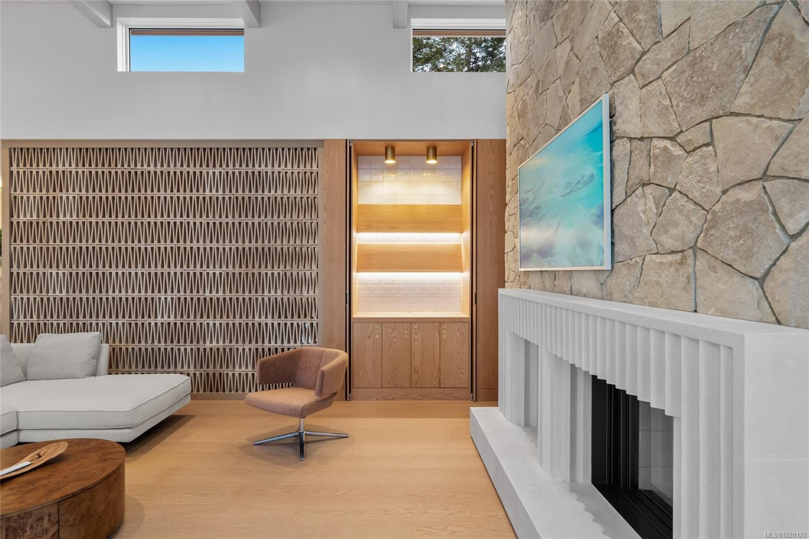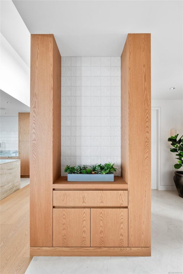 Welcome to Celosia. A sophisticated oceanfront home built by GT Mann from a Ryan Hoyt design. Jenny Martin Design rounds out the award-winning team to create a living experience worthy of its breathtaking oceanfront setting. Timeless Mid-Century Modern elements blend seamlessly with comfortable elegance & a hint of Italian flair. At the heart of the home lies a stunning kitchen featuring custom oak cabinetry, Taj Mahal quartzite counters & island with Palladiana marble flooring made onsite from a local quarry—truly one of a kind. Premium Wolf, Sub-Zero & Dacor appliances elevate the culinary experience. The living room is bathed in light from clerestory windows & anchored by a striking stone fireplace with custom surround. Hidden behind bespoke millwork is a charming record niche—one of many thoughtful details. Two primary suites capture sweeping ocean views, each a private retreat with warm oak flooring, imported Japanese wallpaper & spa-inspired ensuites. A guest wing with two additional bedrooms & a 5-piece bathroom offers the same comfort & luxury. The lower level is designed for wellness & play, featuring a gym area, workspace & games area. An elevator serves all levels, ensuring accessibility. Perhaps the most impressive feature is the four-season patio, wrapped in a Lumon glass system with frameless, retractable floor-to-ceiling panels. Flagstone floors, a gas fire table, radiant ceiling heat & a concealed hood fan make this the perfect year-round gathering space. Step outside to beautifully landscaped grounds & take in panoramic ocean vistas—a front-row seat to nature’s rhythm, framed by the home’s coastal serenity. Located near UVic, schools & shopping, this oceanfront residence is one of Victoria’s truly exceptional properties, offering a lifestyle & setting that are simply unmatched. Celosia is more than a home; it is a work of art—meticulously built for those who value design integrity, luxury materials & timeless architecture.