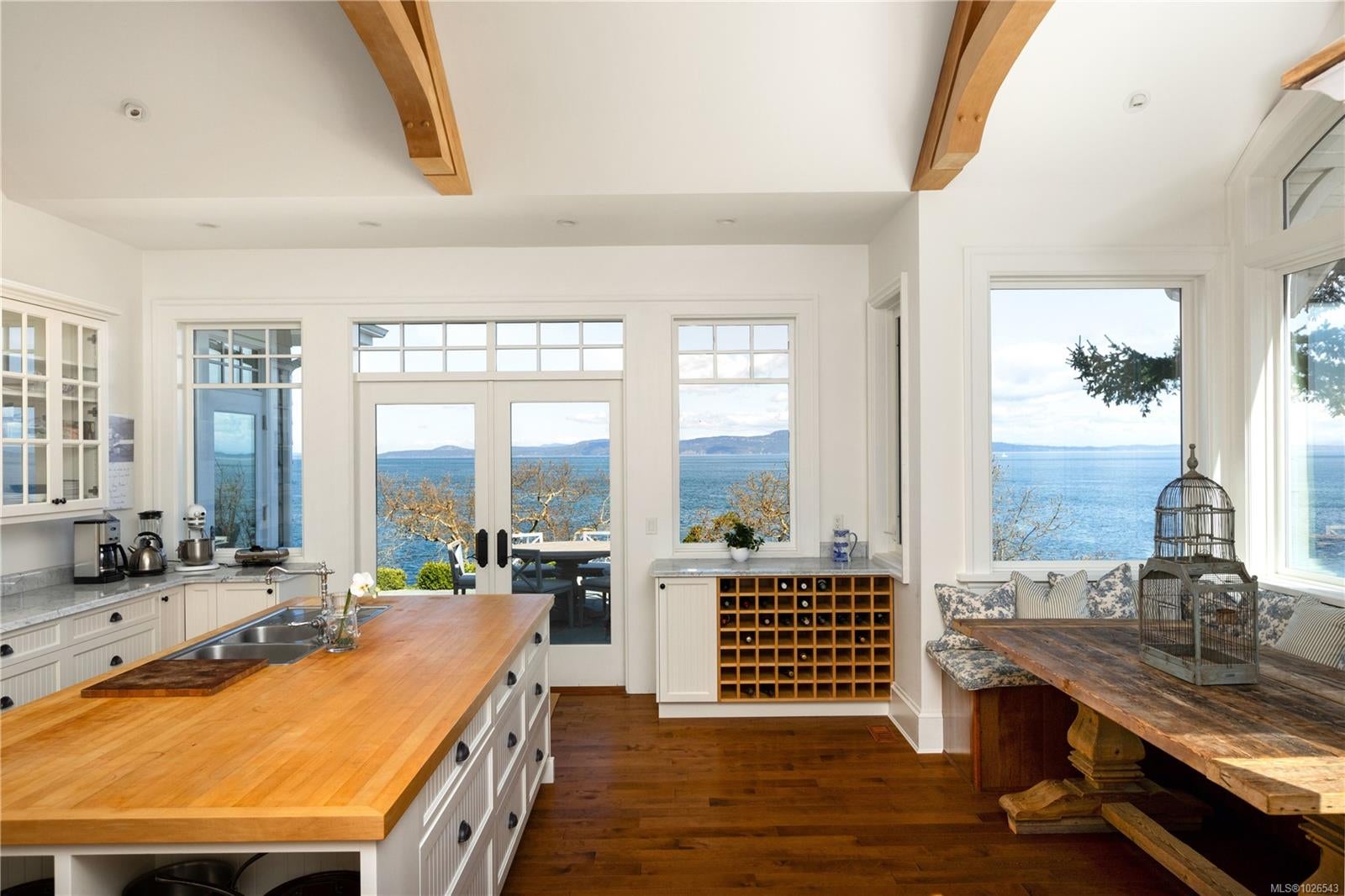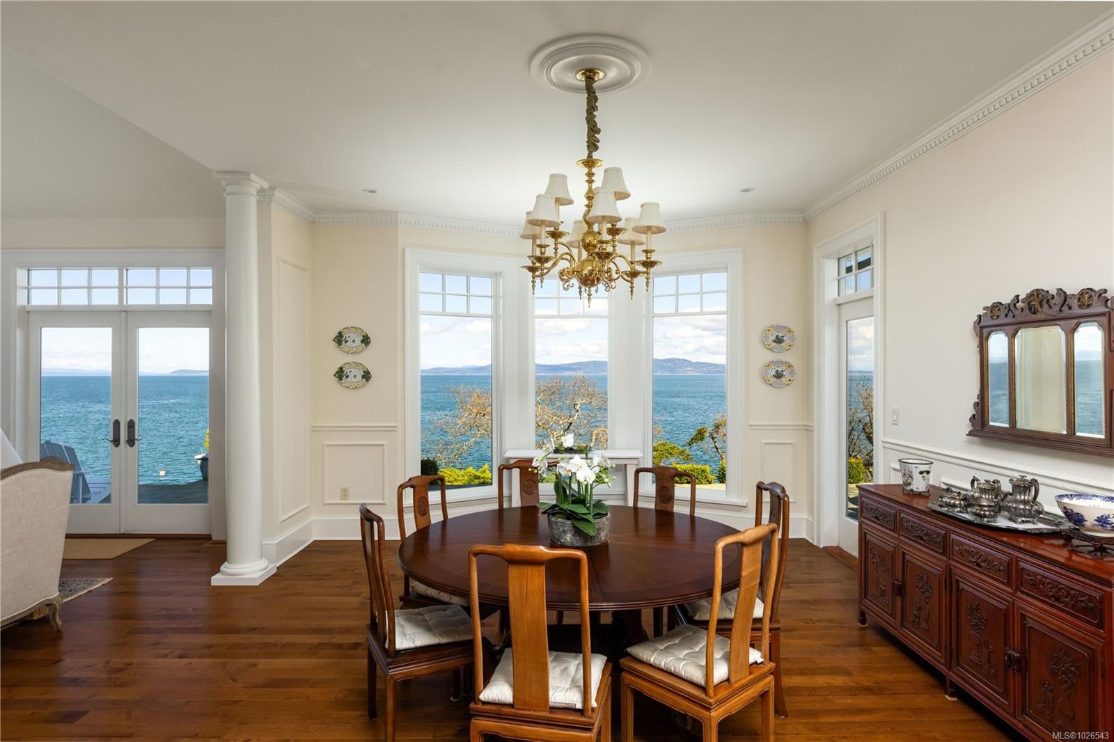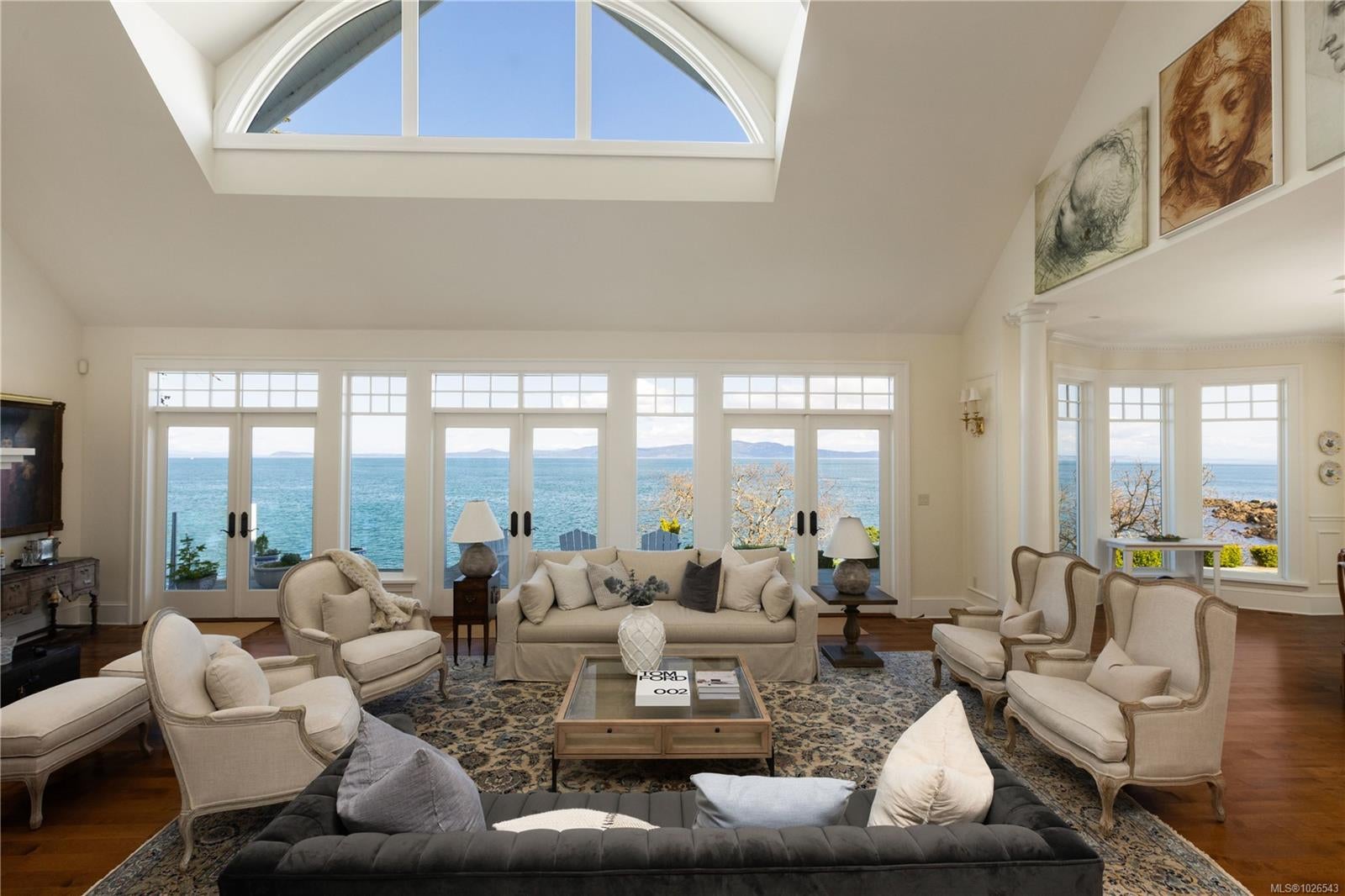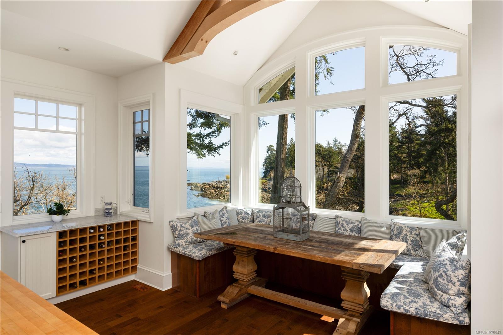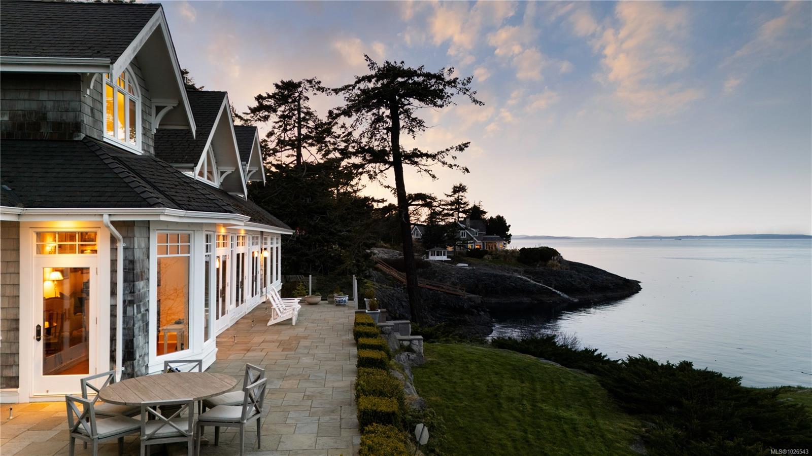 Welcome to 2600 Queenswood Drive, an extraordinary oceanfront retreat nestled on nearly 2.8 acres in one of Vancouver Island’s most prestigious enclaves. Gated and private, with the potential to subdivide, this timeless estate offers panoramic views of the Haro Strait, Gulf Islands, and Mt. Baker. The Hamptons-style residence blends classic East Coast charm with West Coast ease, featuring more than 6,000 sqft of beautifully curated living space. Soaring ceilings, expansive windows, and a seamless connection to the outdoors define the main level, which includes a sophisticated living room, elegant dining area, a hand built Walnut library/media room, and a chef’s kitchen designed for both function and flair. The main floor primary suite is a true sanctuary, while the upper level offers 3 additional bedrooms, 2 with ensuite. A walkout lower level includes a flexible studio or guest quarters. Lush landscaping, stone pathways, a private launch point for kayaking, and a detached 3-car heated garage with gardener’s toilet complete this rare seaside setting—just minutes to Cadboro Bay Village and UVic.